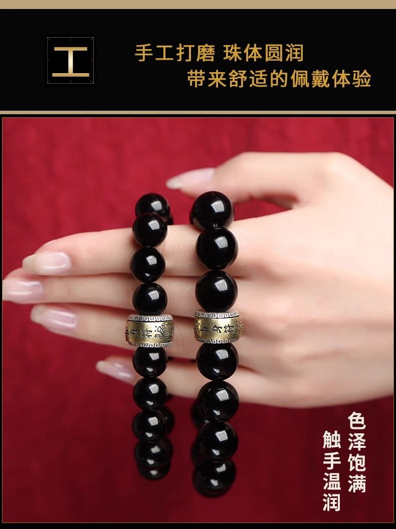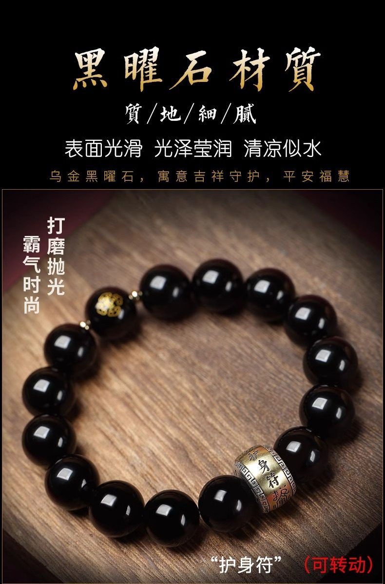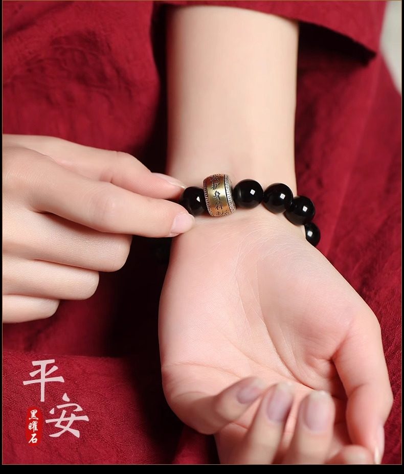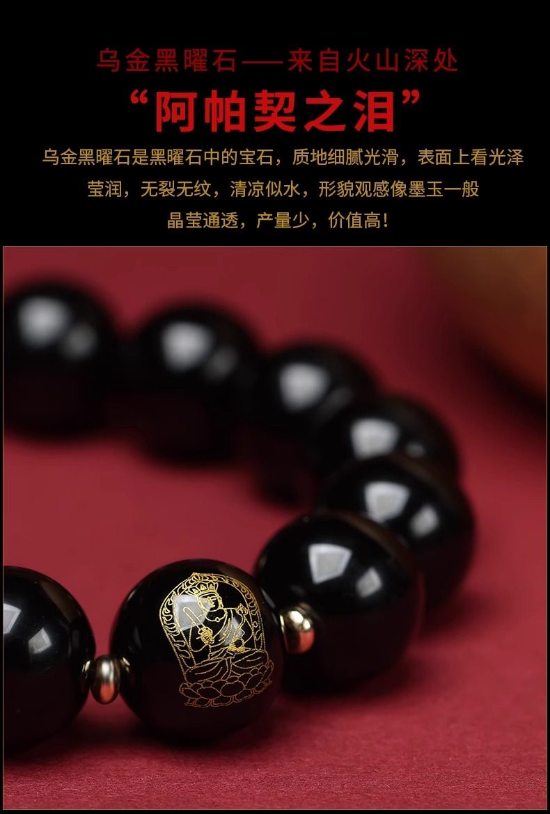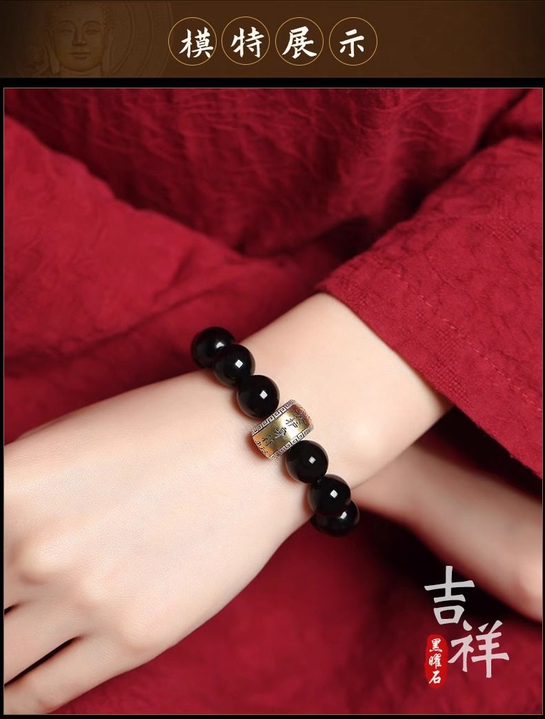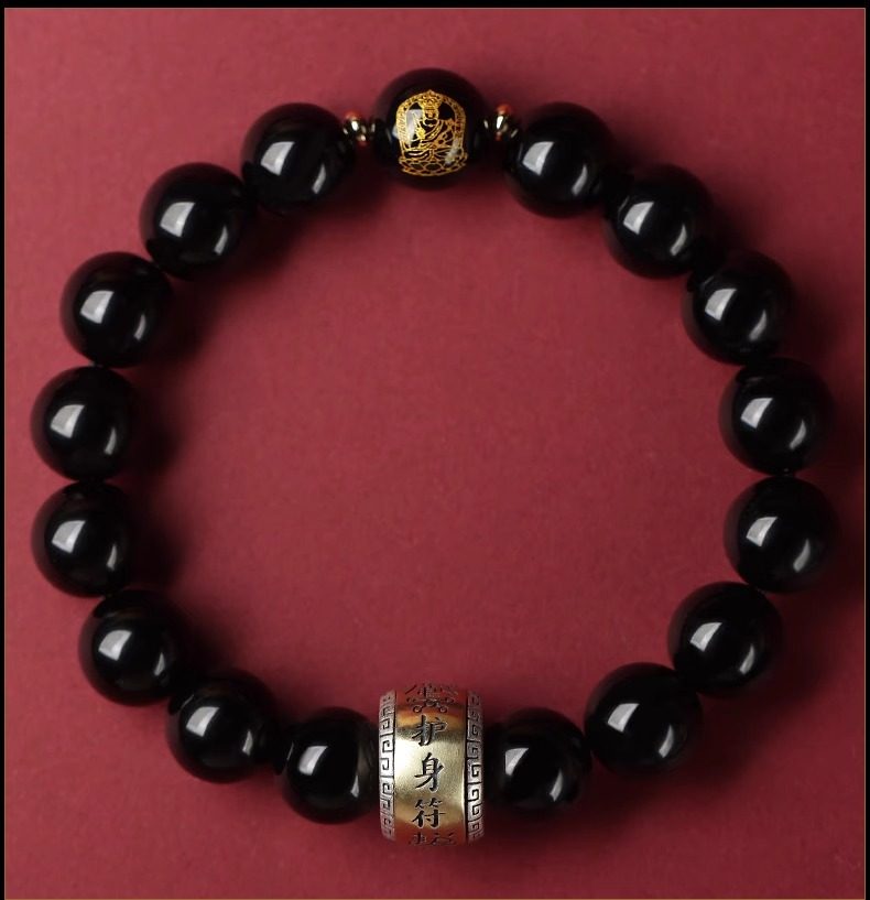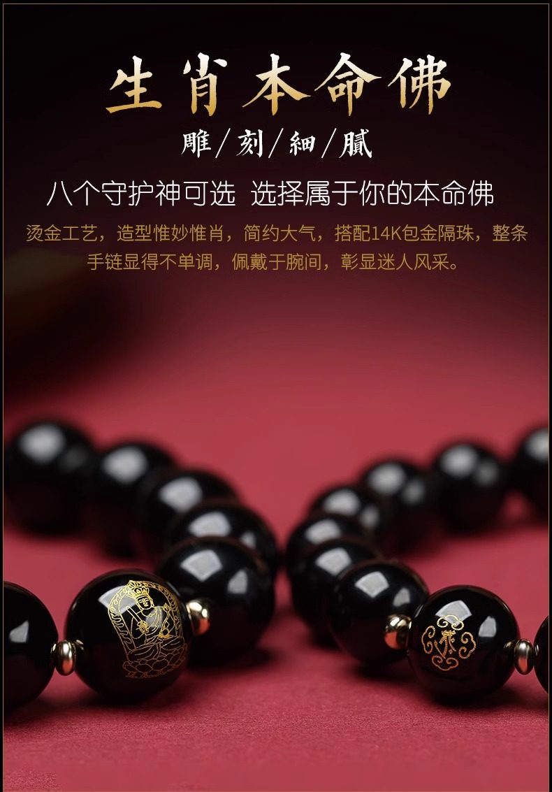Putuo Mountain Natural Obsidian Bracelet with the Twelve Zodiac Signs for Men and Women, Guardian Deity Bracelet for Couples, Buddhist Beads