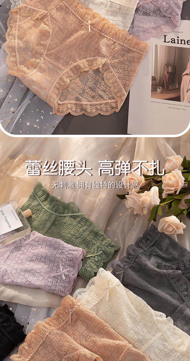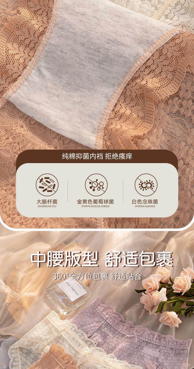 Summer Lace Panties, Feminine Mid-Waist, New Summer Style, Seamless Women's Panties, Personalized Antibacterial Cotton Crotch Triangle Panties for Women