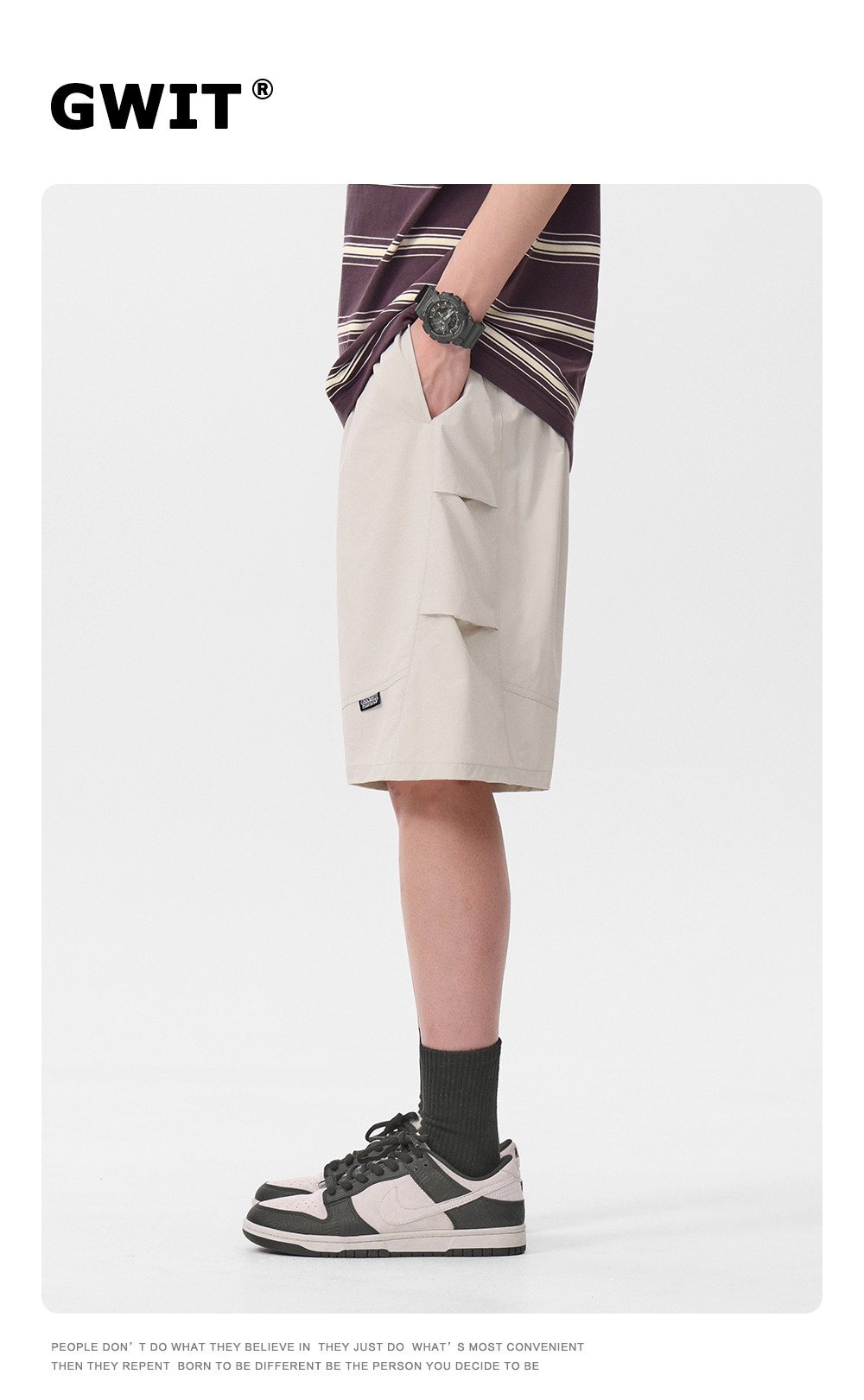 Gwit American High Street Style Summer Lightweight Ice Silk Breathable Cool Casual Mid-Length Shorts Thin Five-Point Cargo Shorts for Men