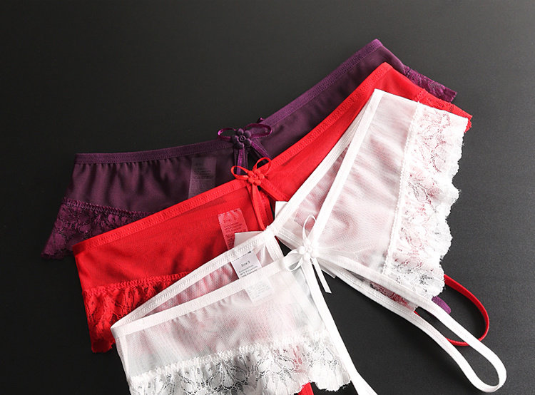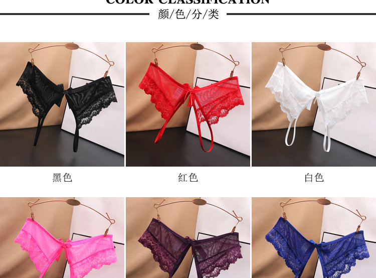New Sexy Open-Crotch Panties for Women, Low-Waist Lace Hollow-Out Transparent Pure Desire Seamless Large Size No Need to Take Off Thong