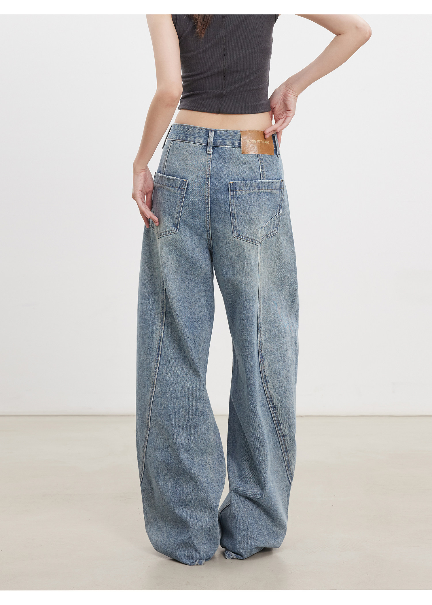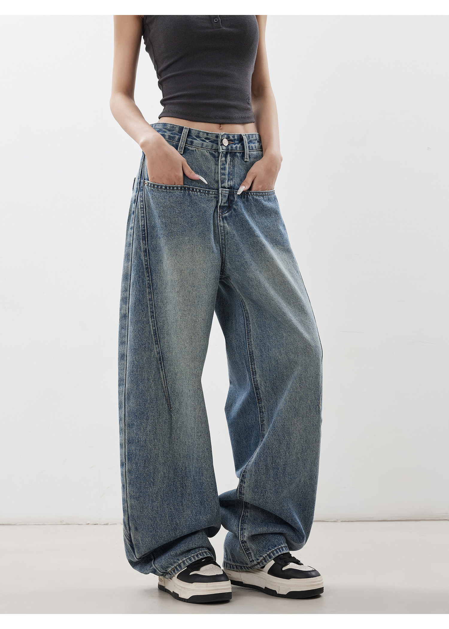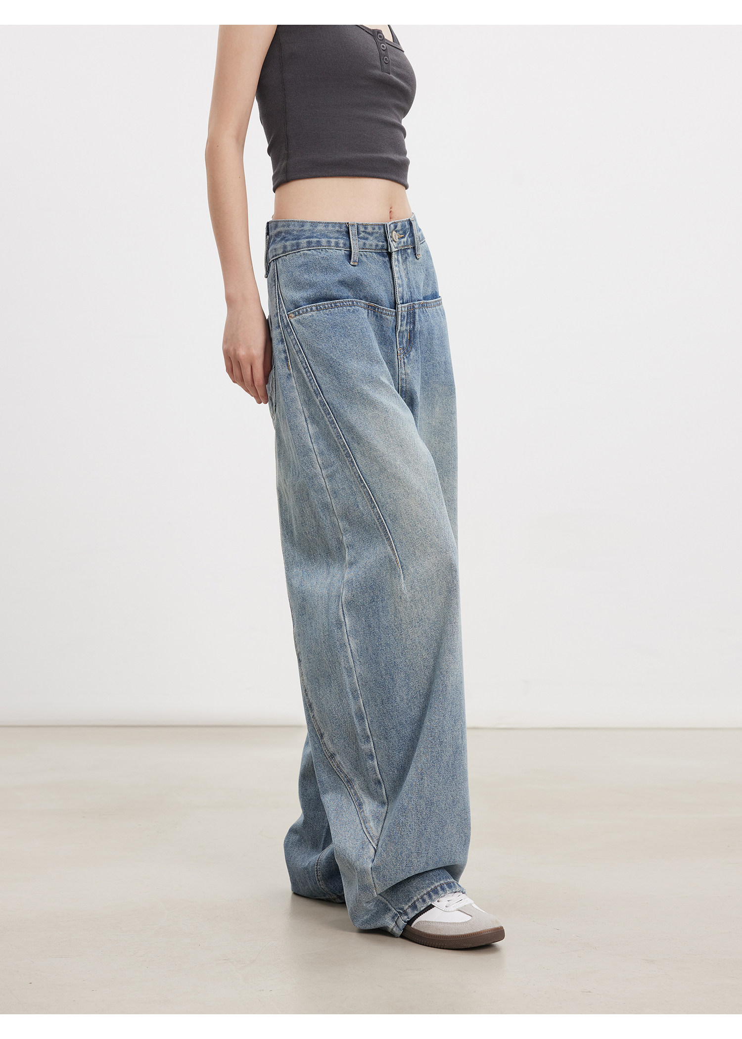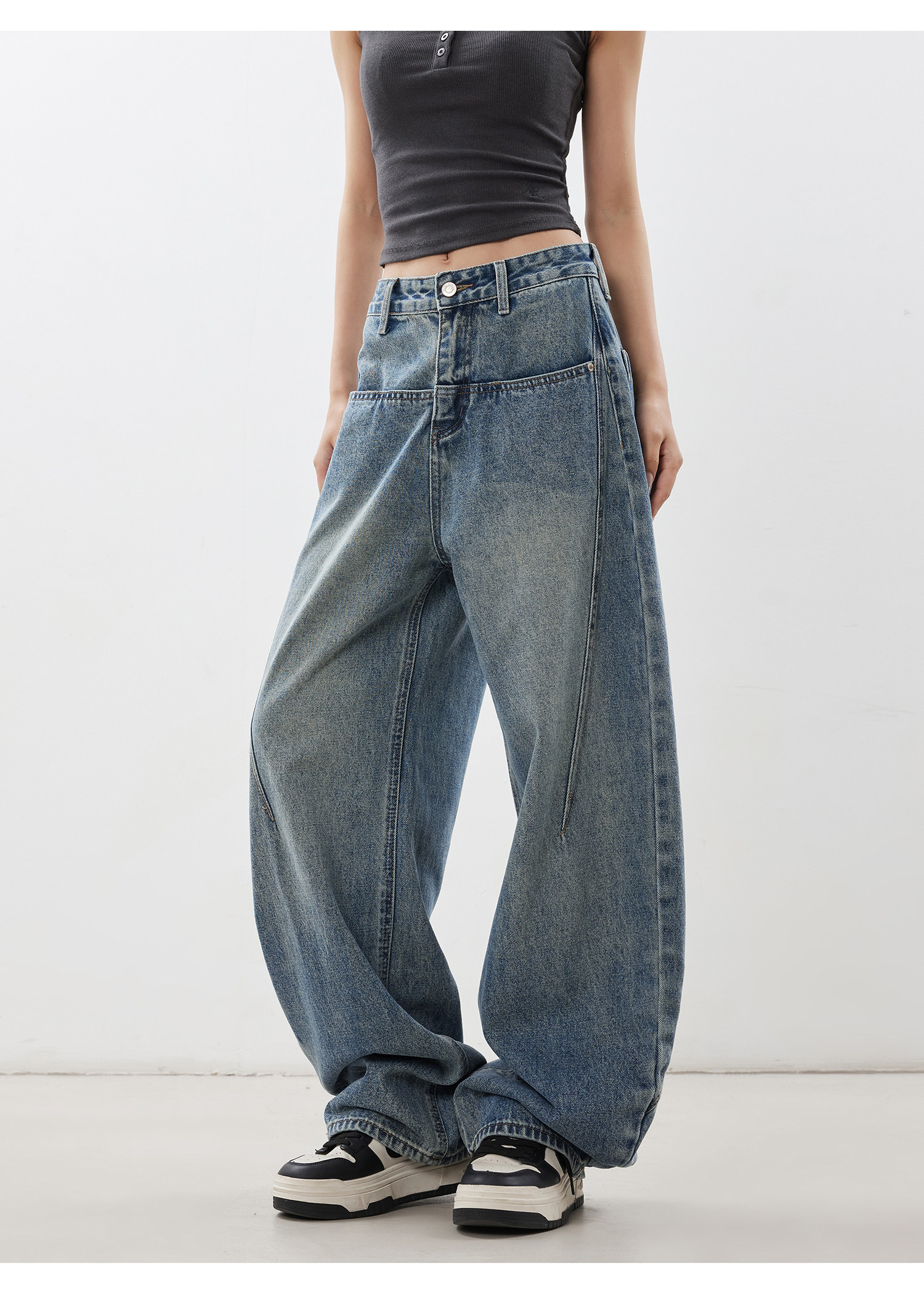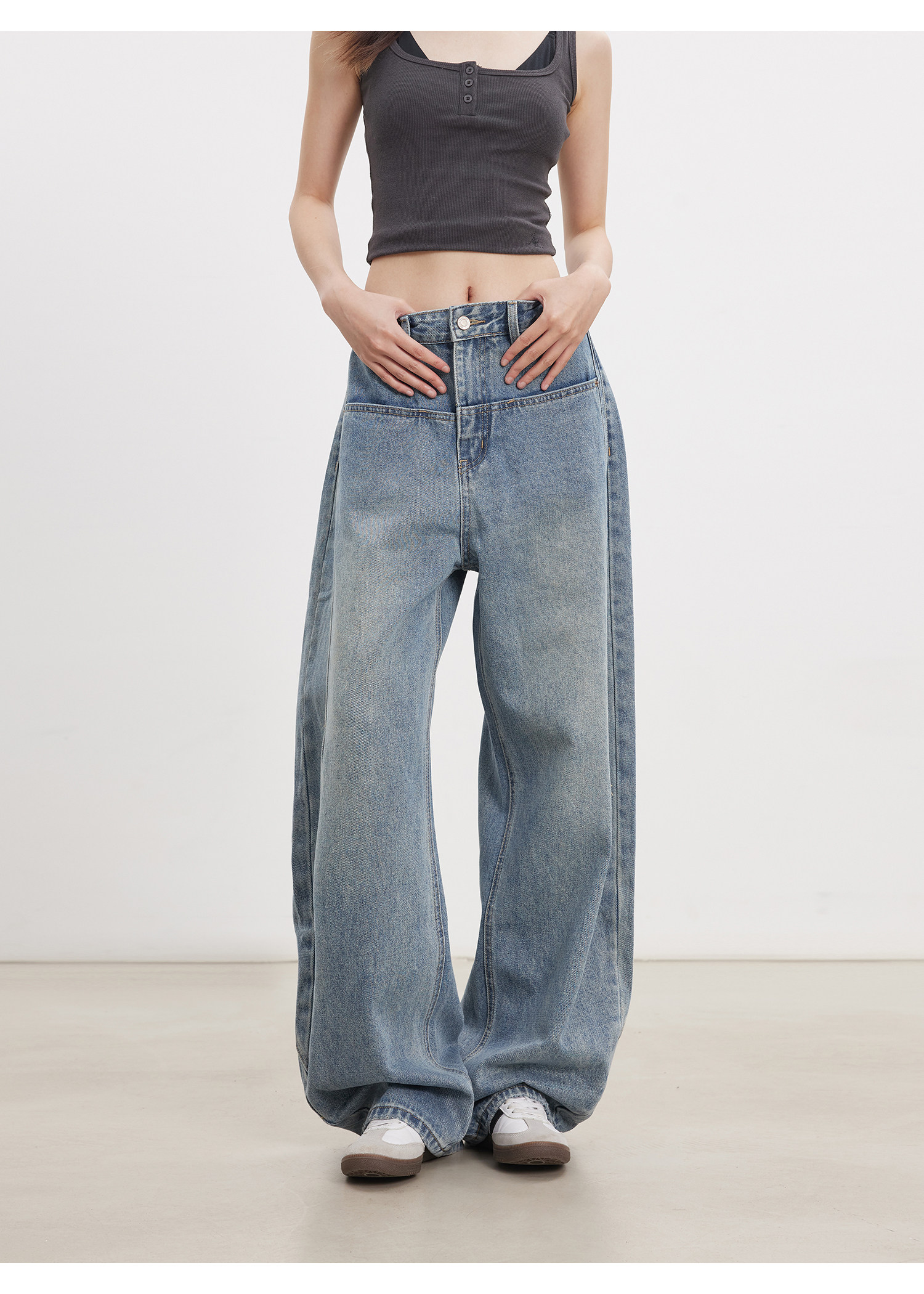 American-Style Blue Scimitar Jeans for Women 2025 Autumn and Winter Loose Wide-Leg Pants with a Sense of Design High-Waisted Fleece-Lined Pants New Style