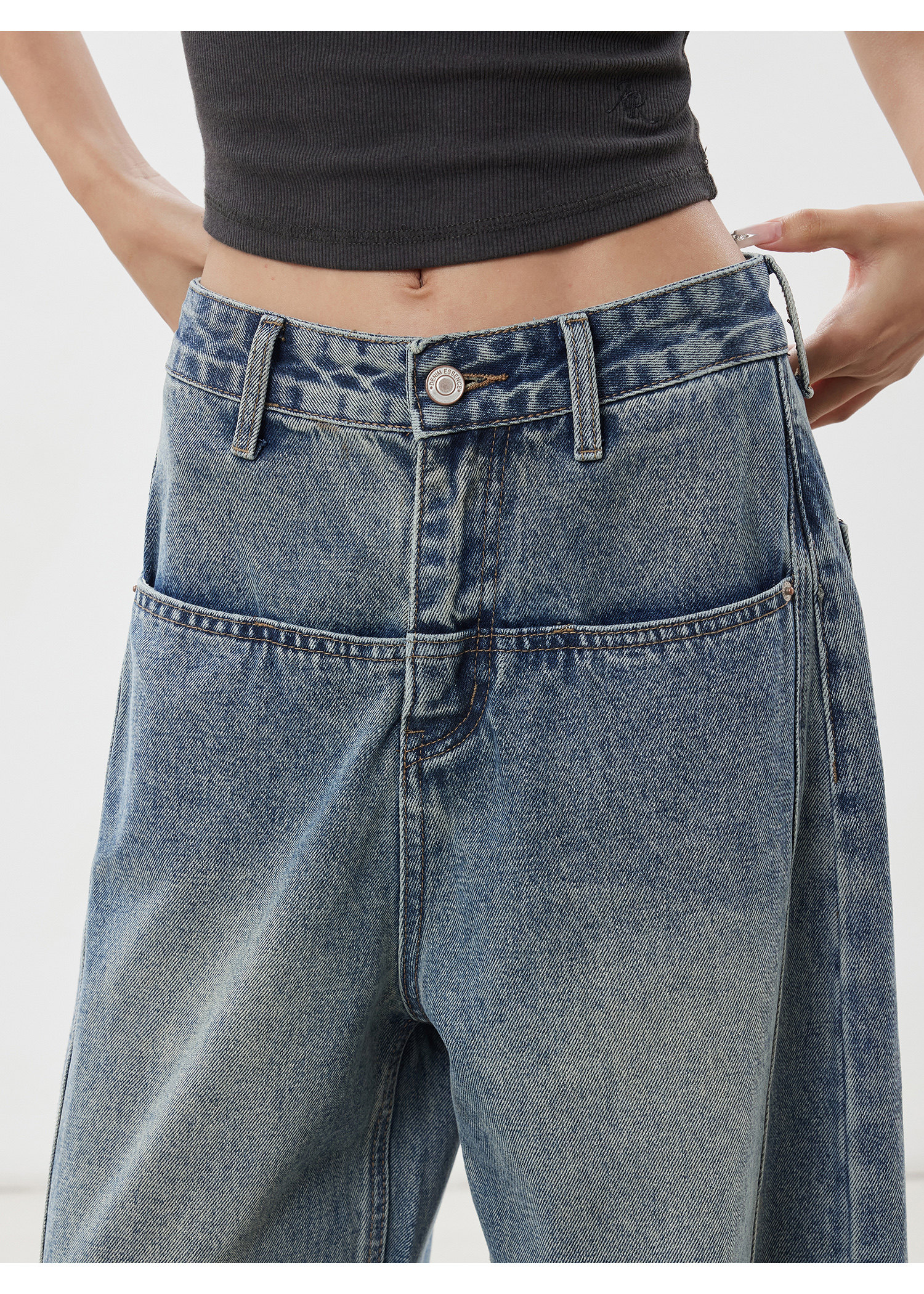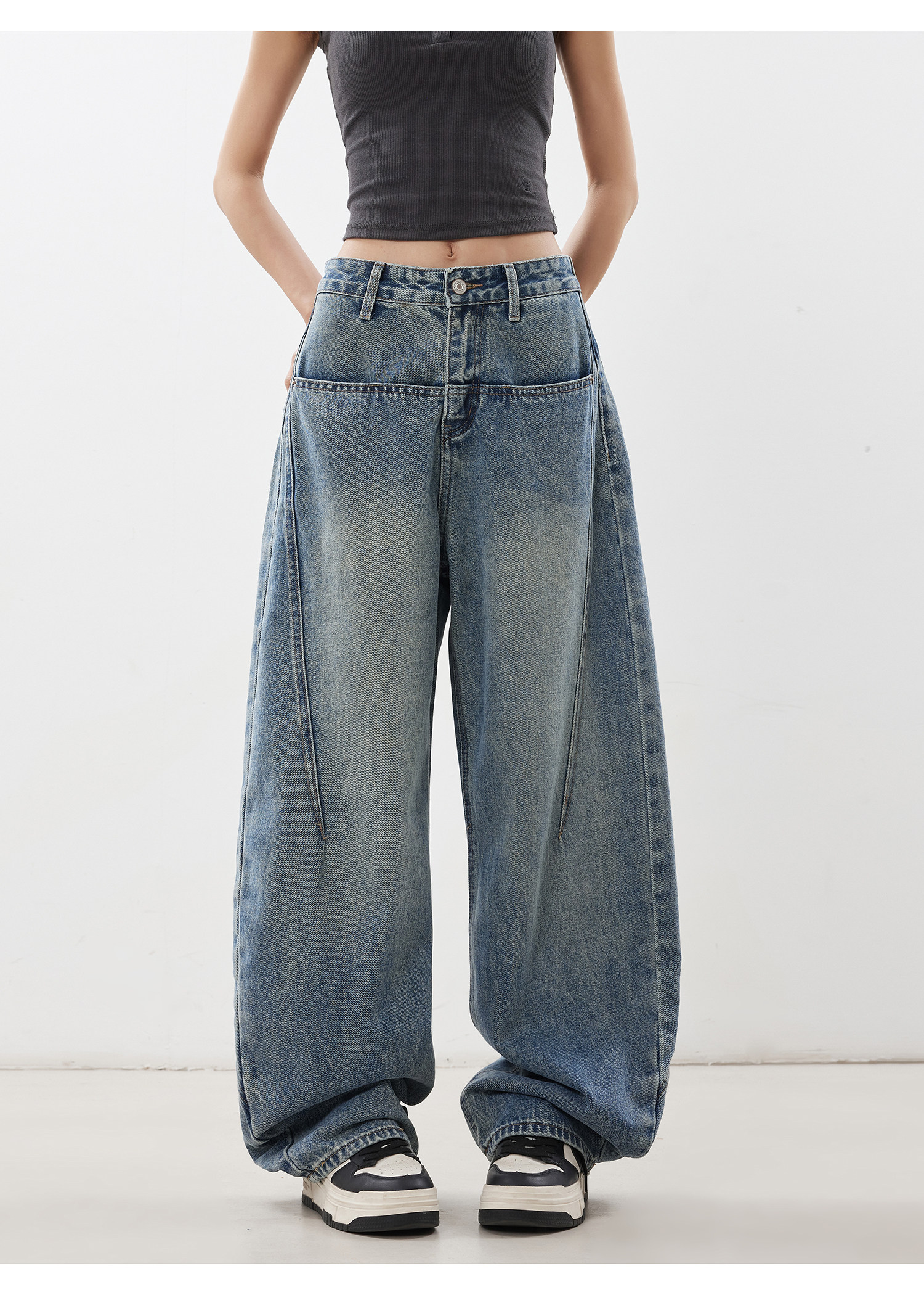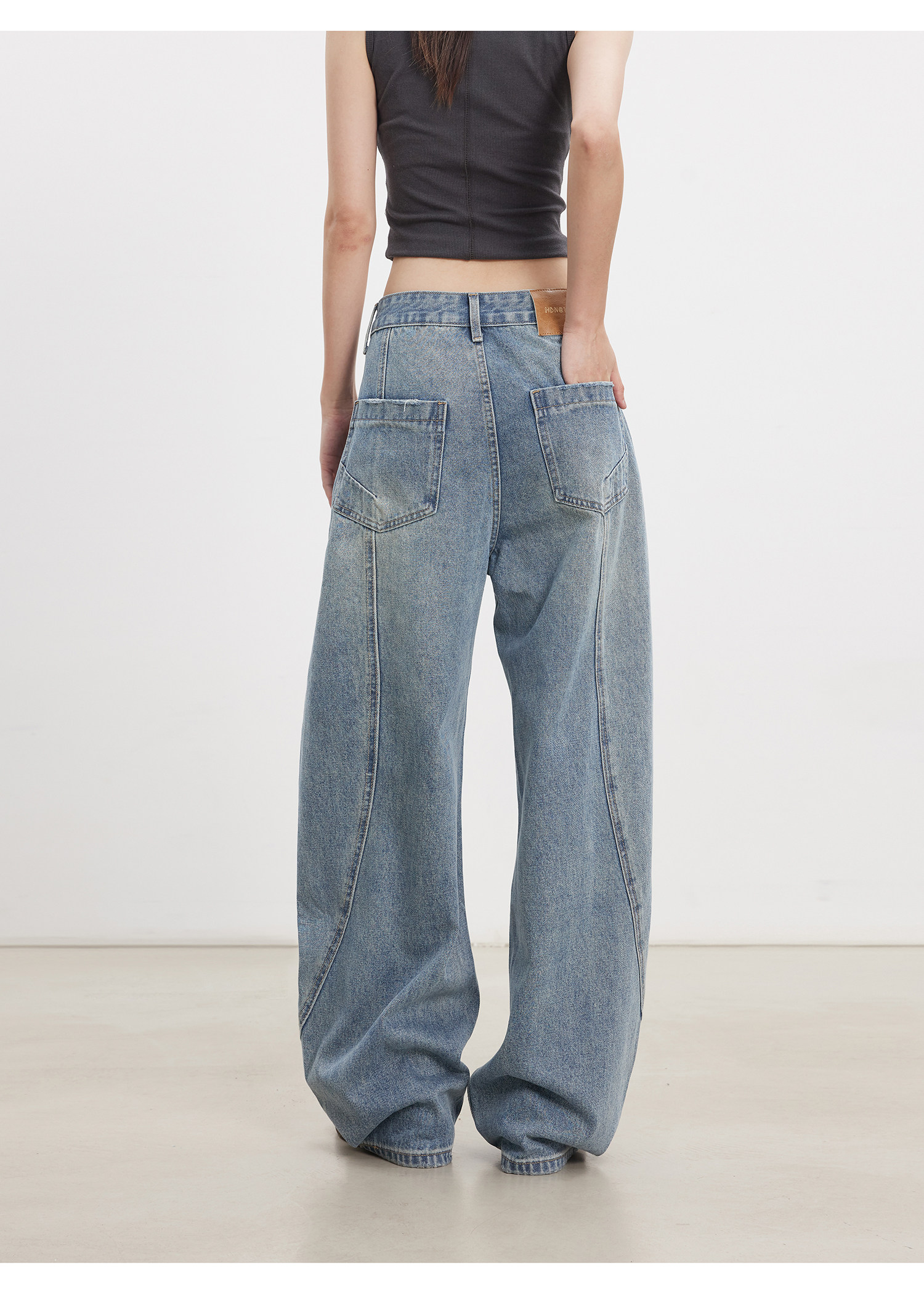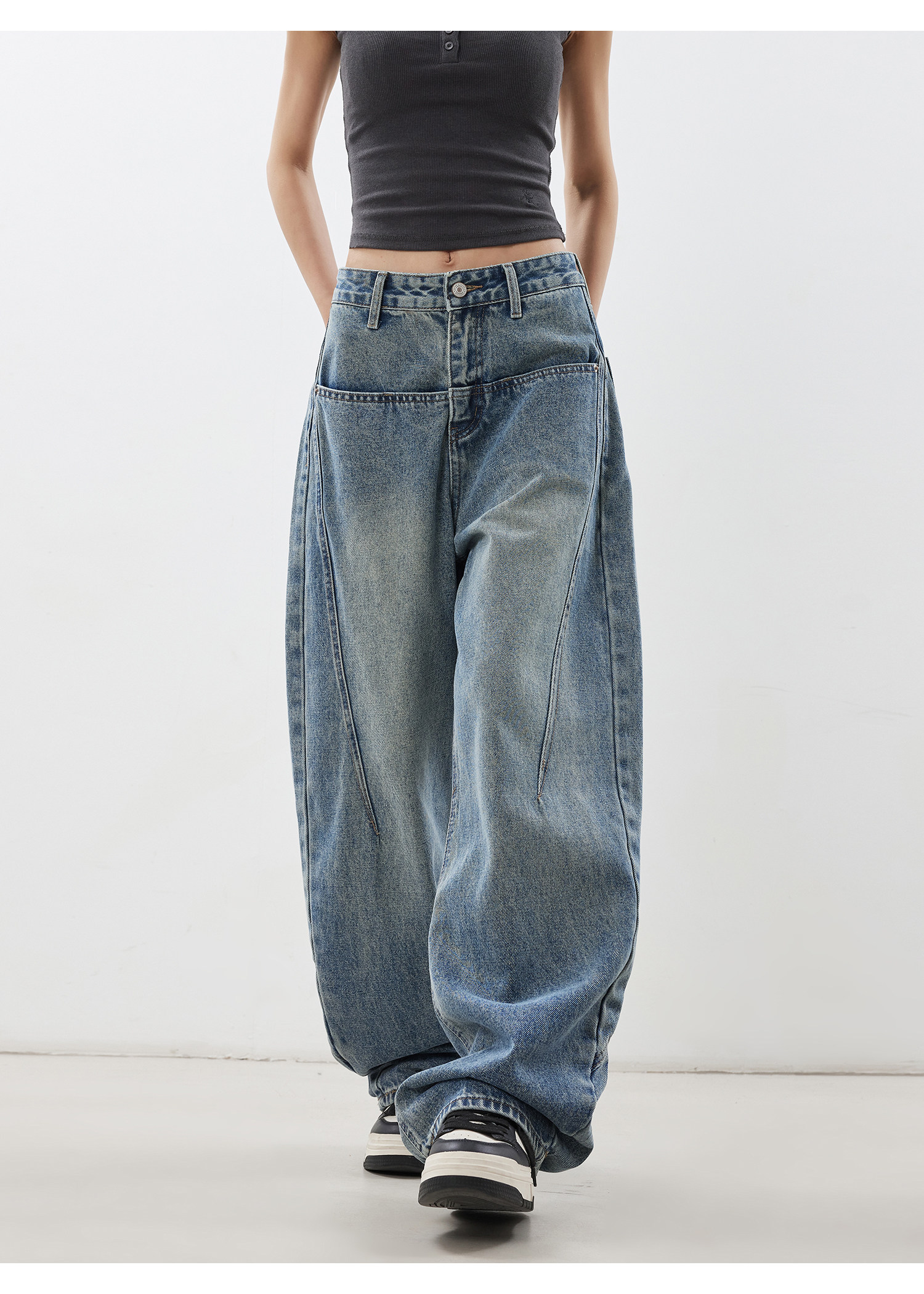American-Style Blue Scimitar Jeans for Women 2025 Autumn and Winter Loose Wide-Leg Pants with a Sense of Design High-Waisted Fleece-Lined Pants New Style