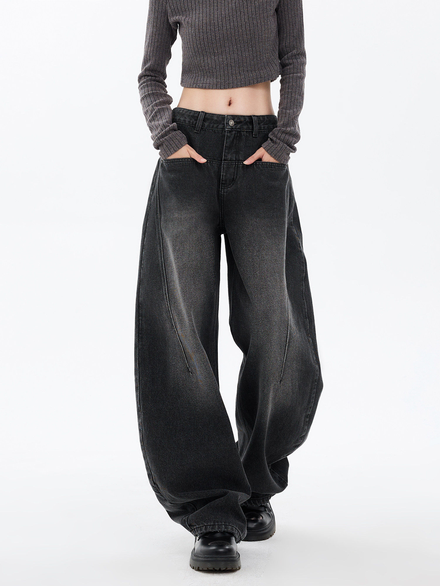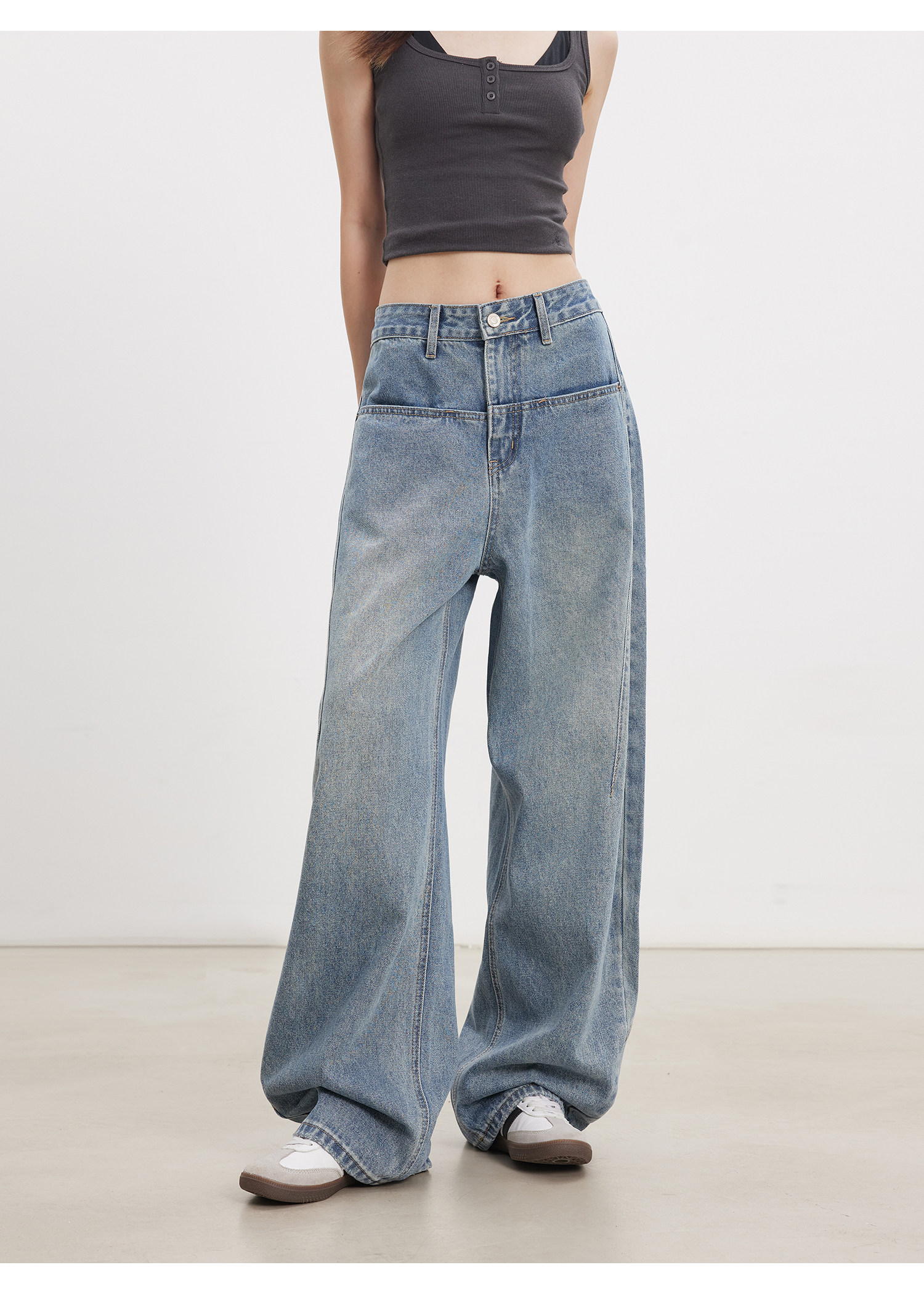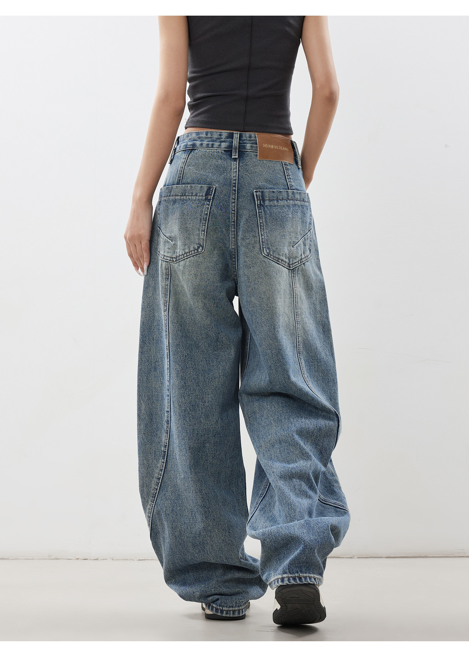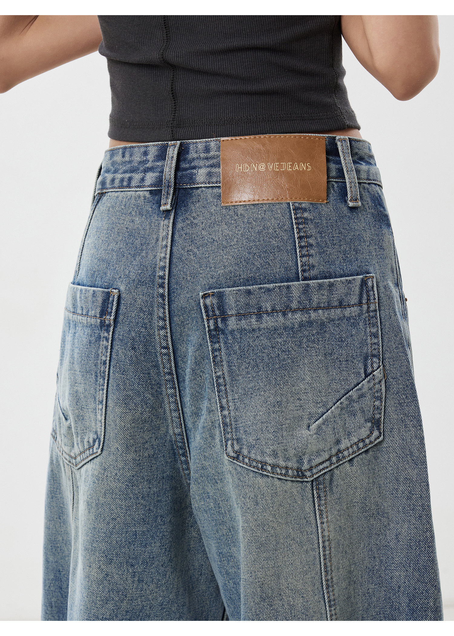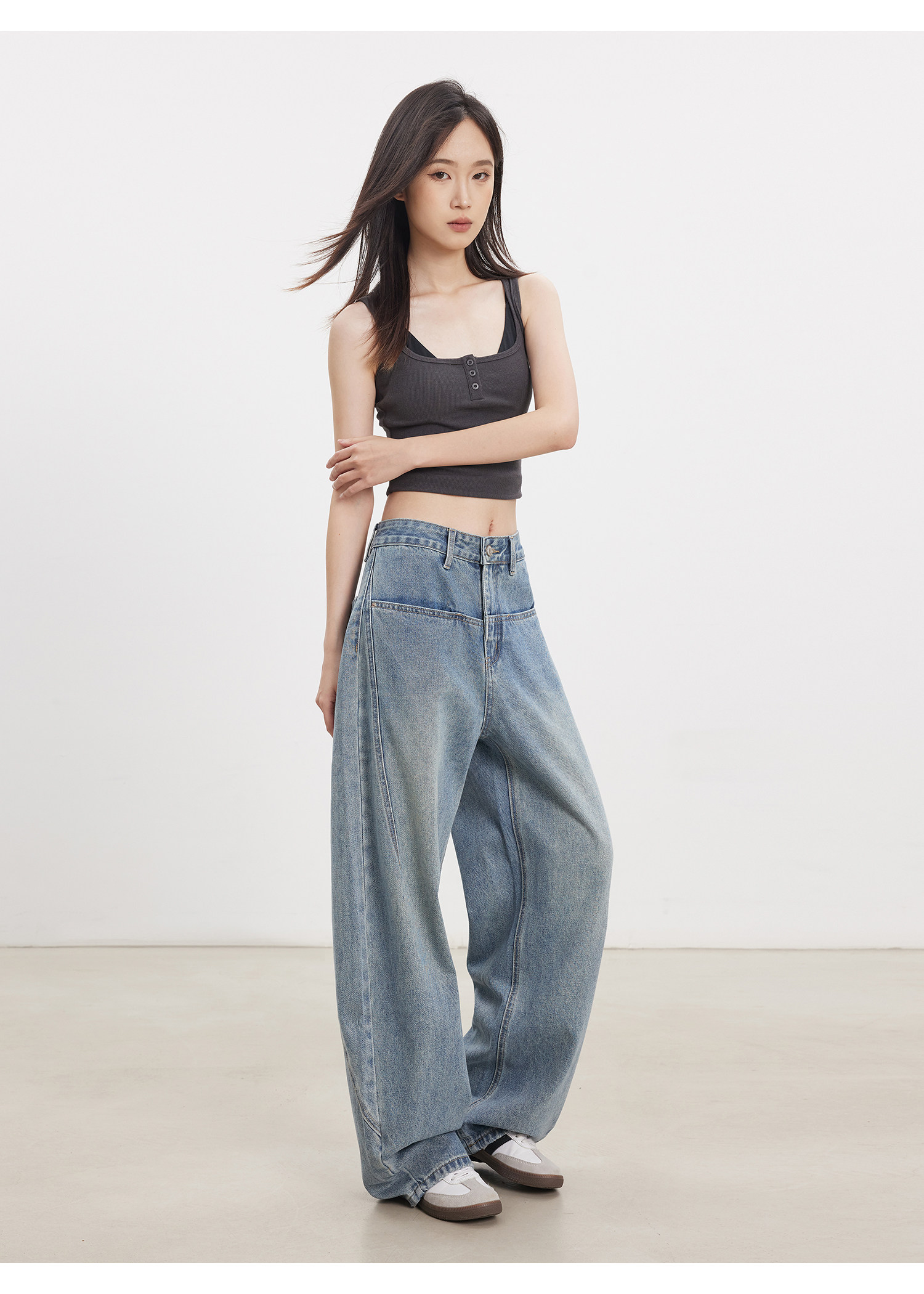 American-Style Blue Scimitar Jeans for Women 2025 Autumn and Winter Loose Wide-Leg Pants with a Sense of Design High-Waisted Fleece-Lined Pants New Style