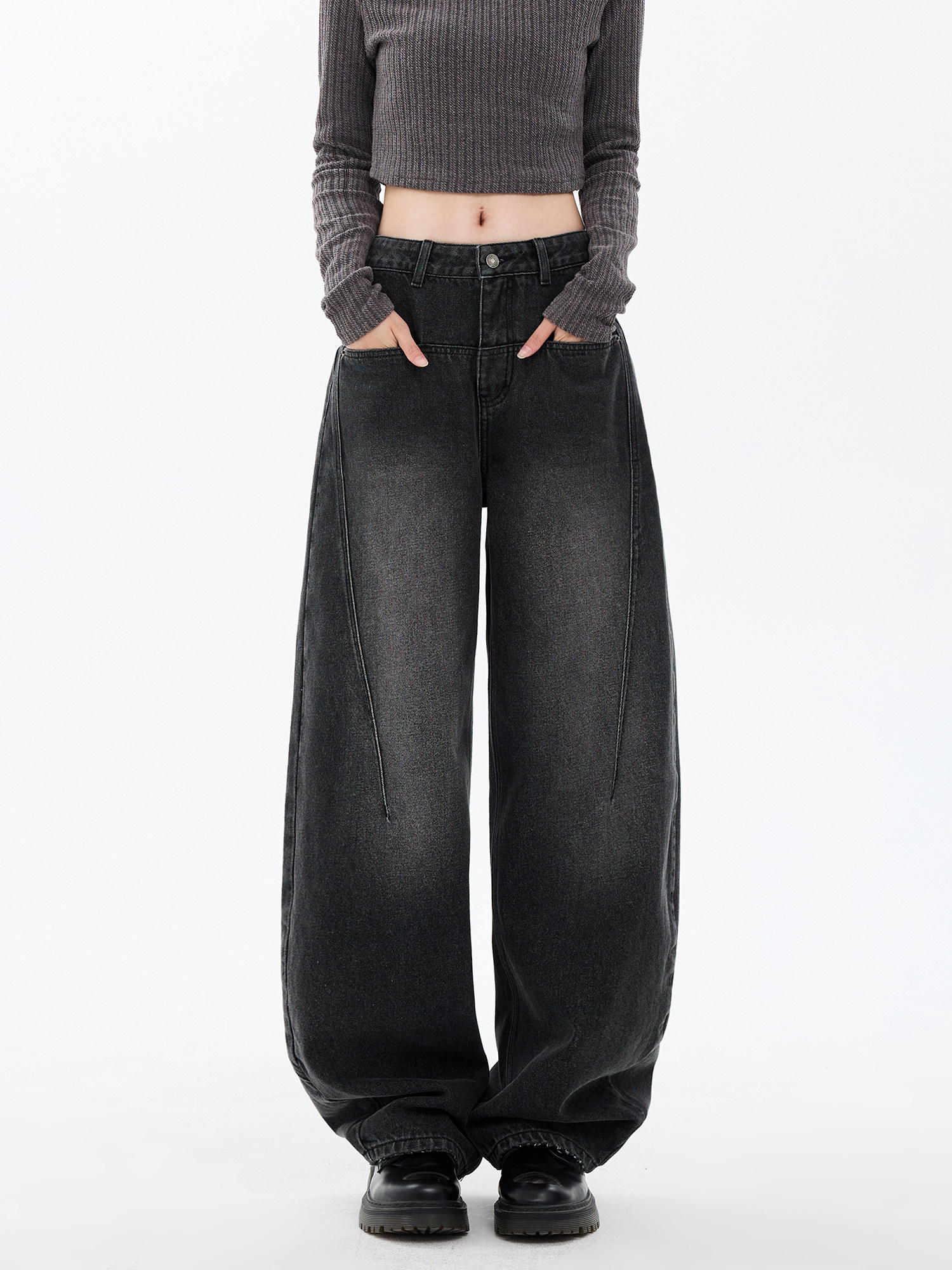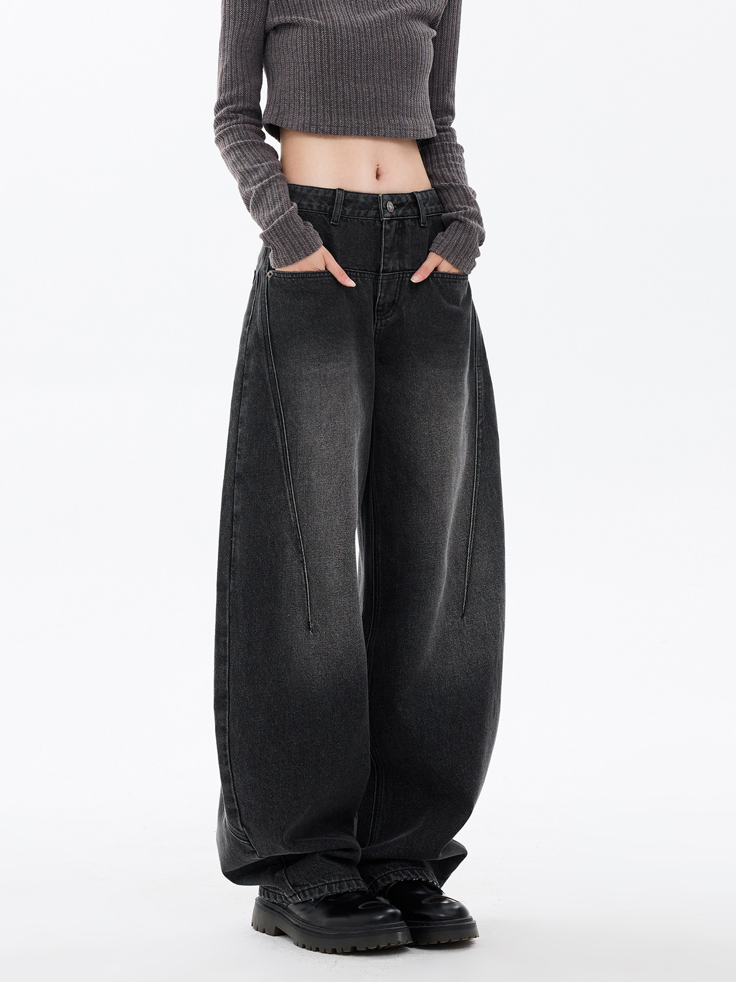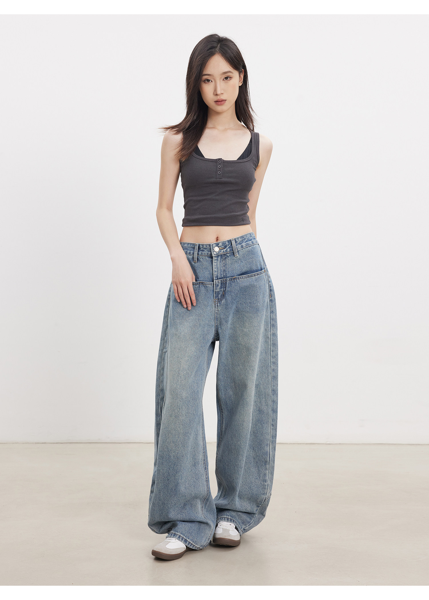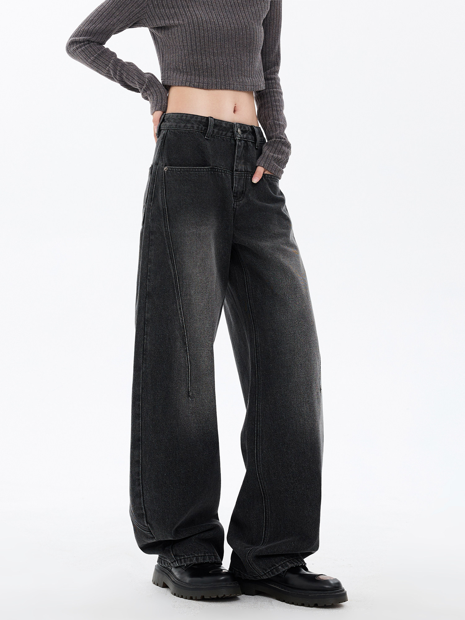 American-Style Blue Scimitar Jeans for Women 2025 Autumn and Winter Loose Wide-Leg Pants with a Sense of Design High-Waisted Fleece-Lined Pants New Style