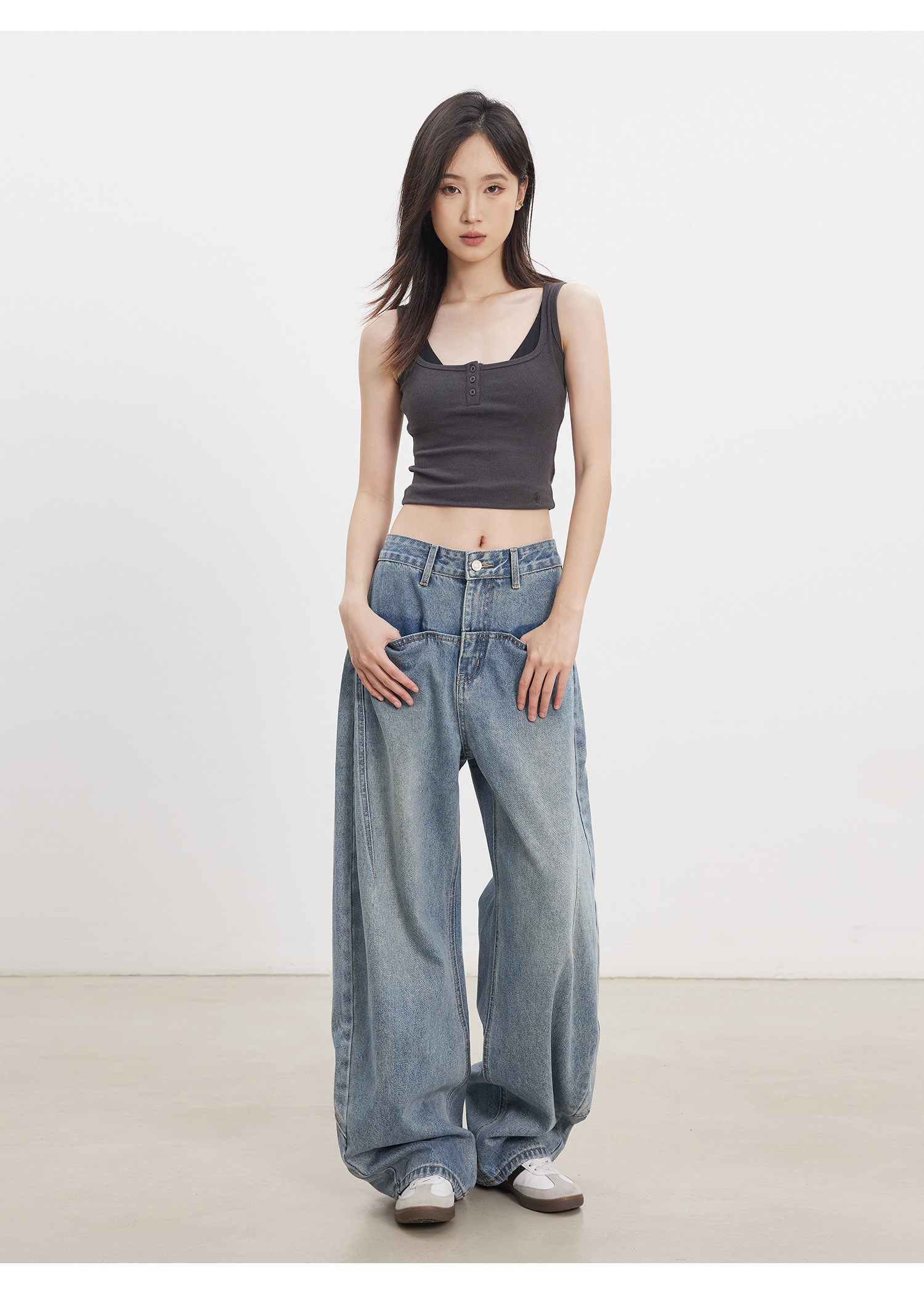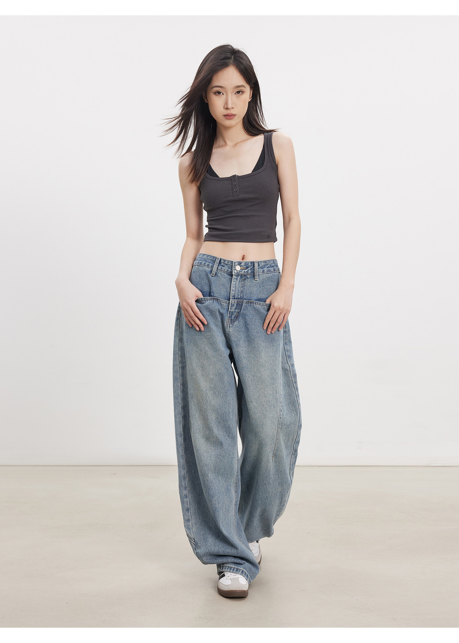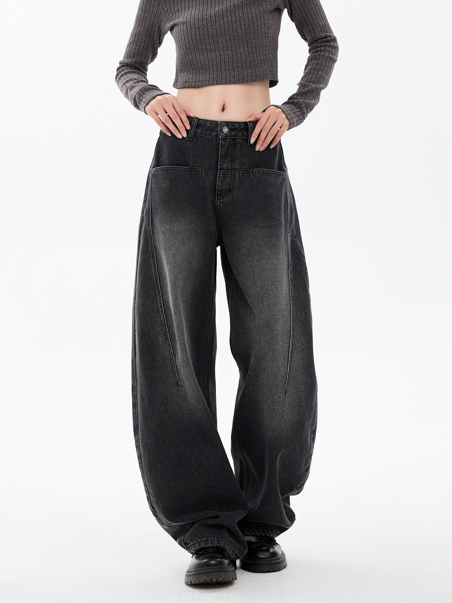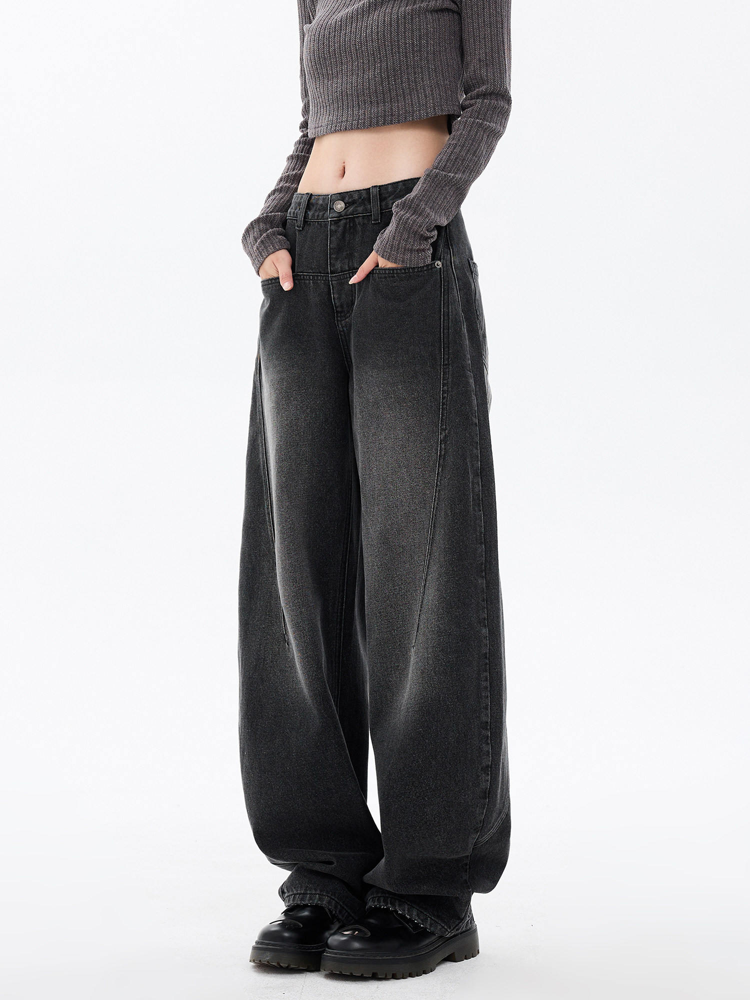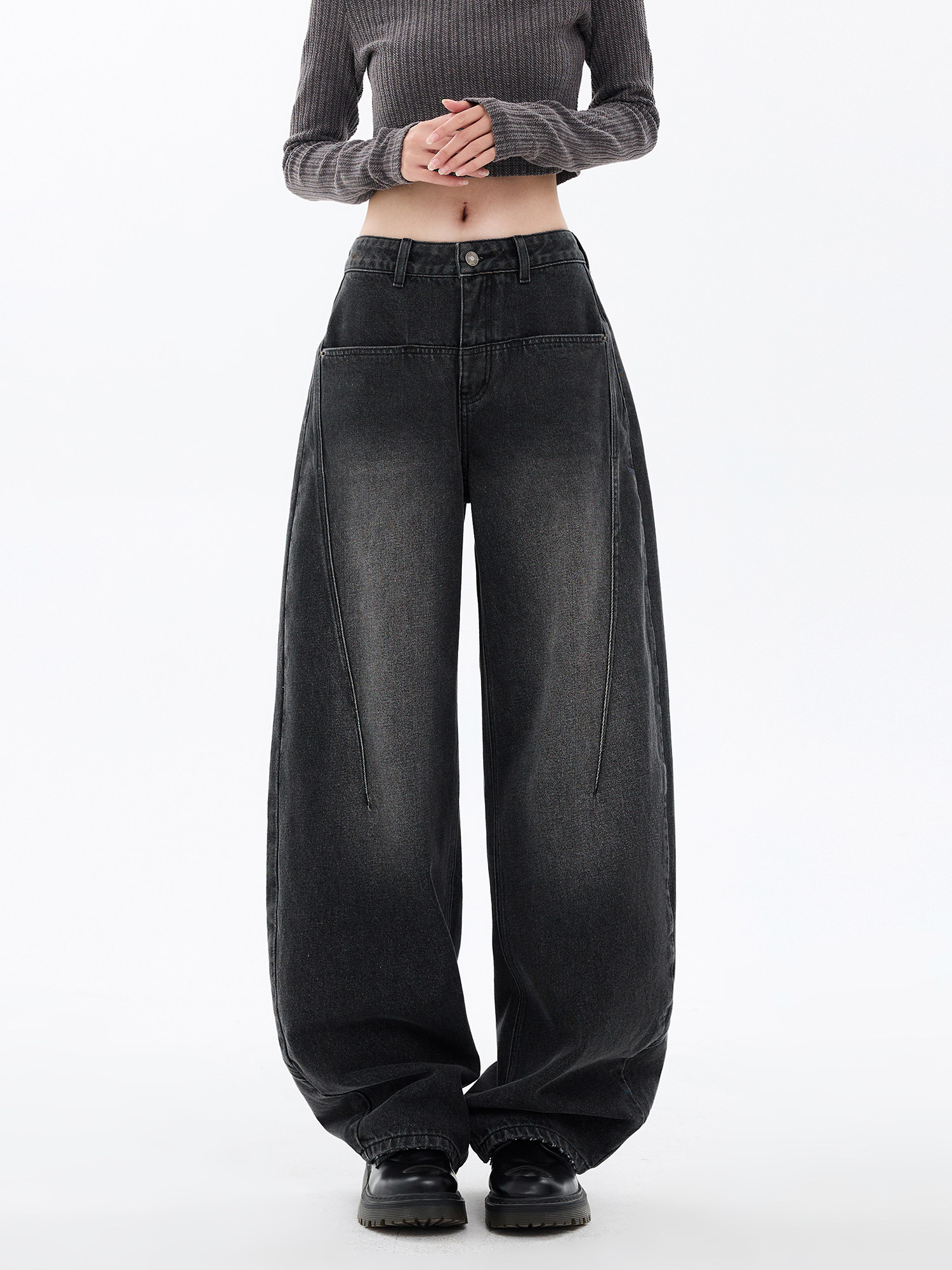 American-Style Blue Scimitar Jeans for Women 2025 Autumn and Winter Loose Wide-Leg Pants with a Sense of Design High-Waisted Fleece-Lined Pants New Style