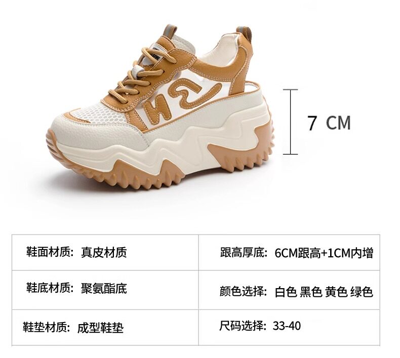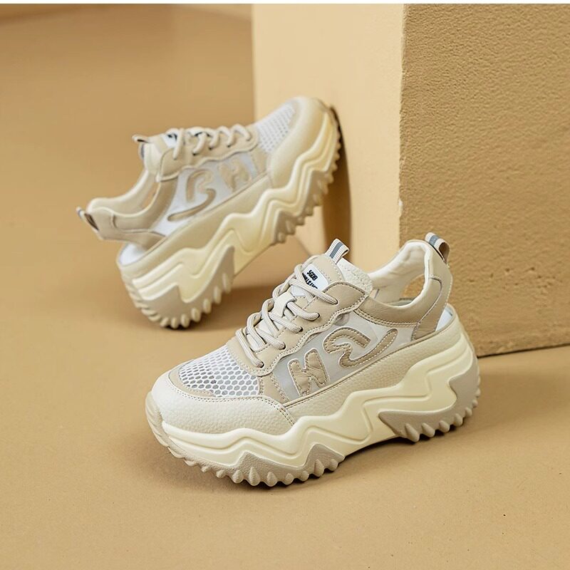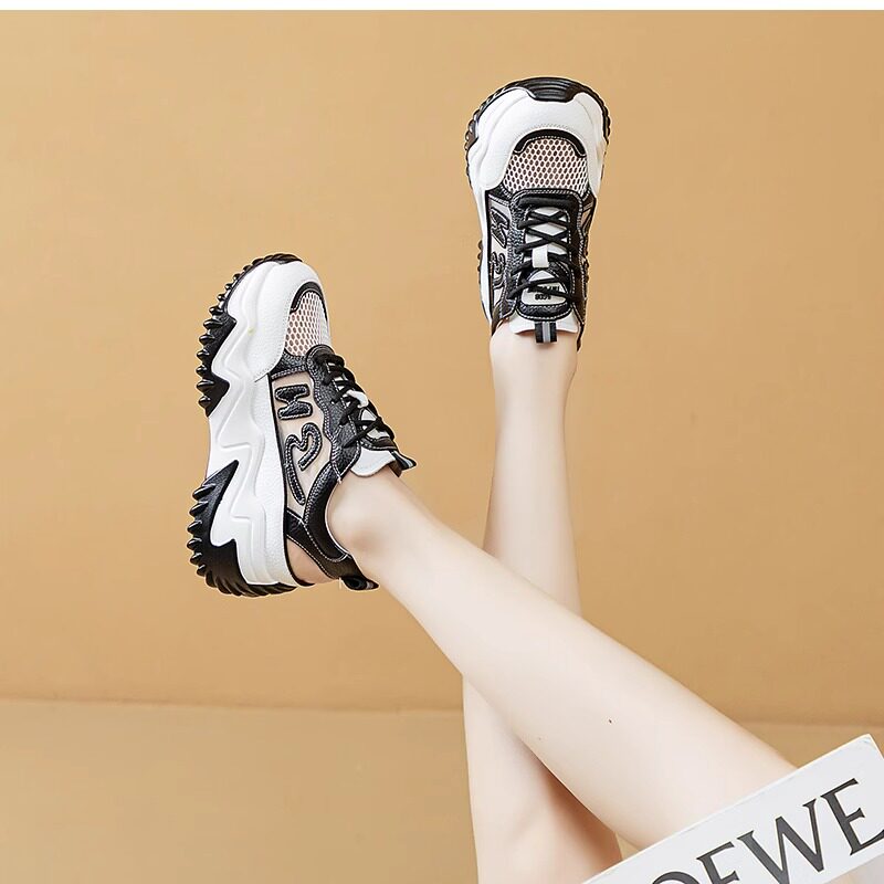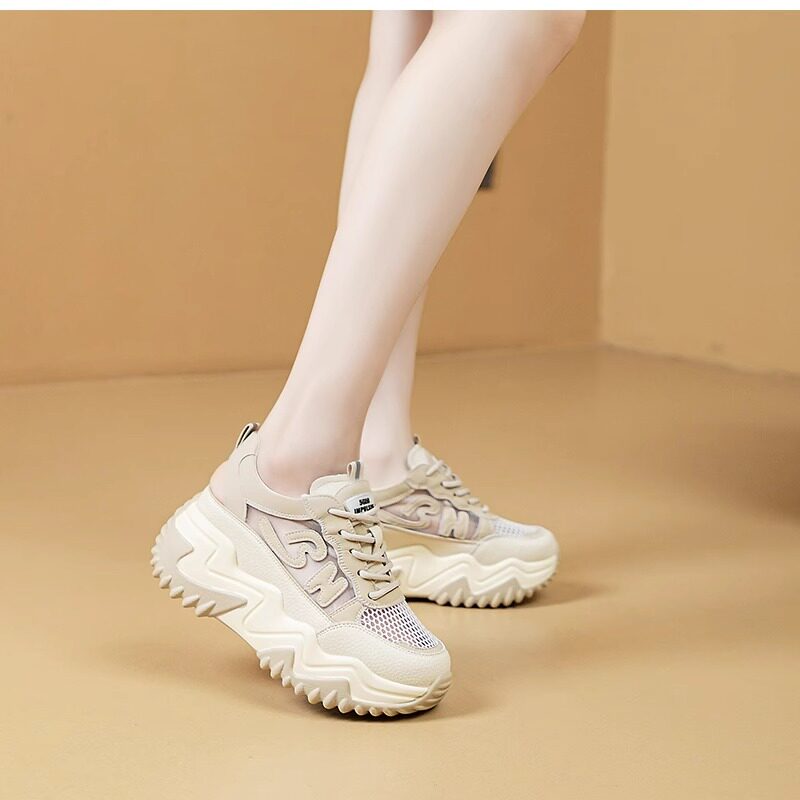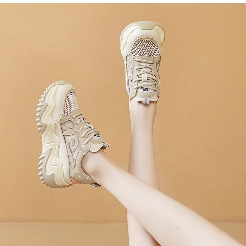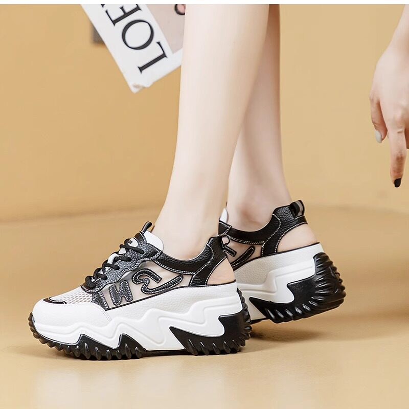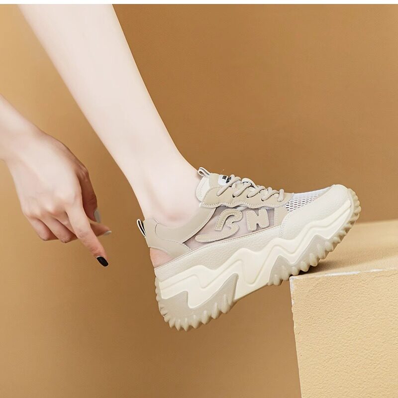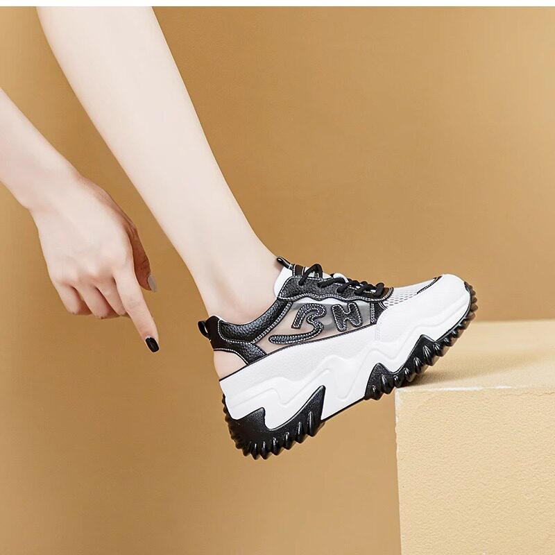 Qvu~ Brand Counter! Dad Shoes, Sandals with Hidden Height Increase, Hollow Mesh, Breathable, Perforated, Sporty Casual White Shoes