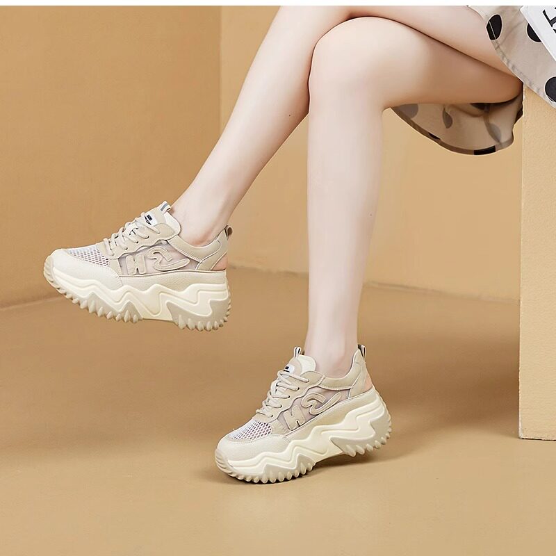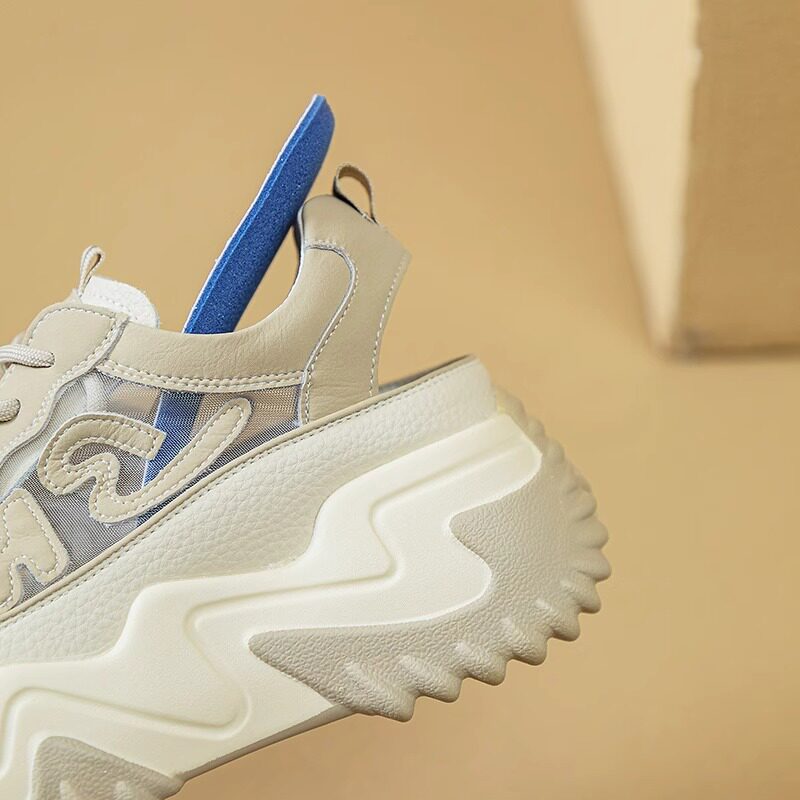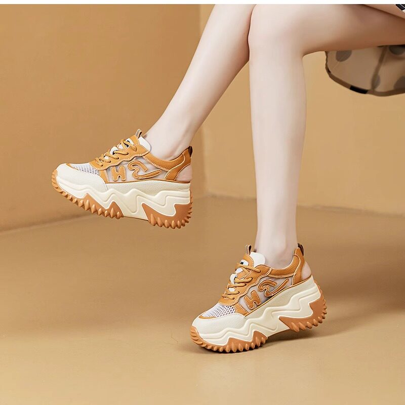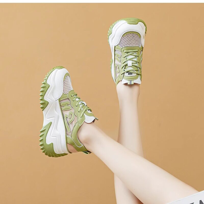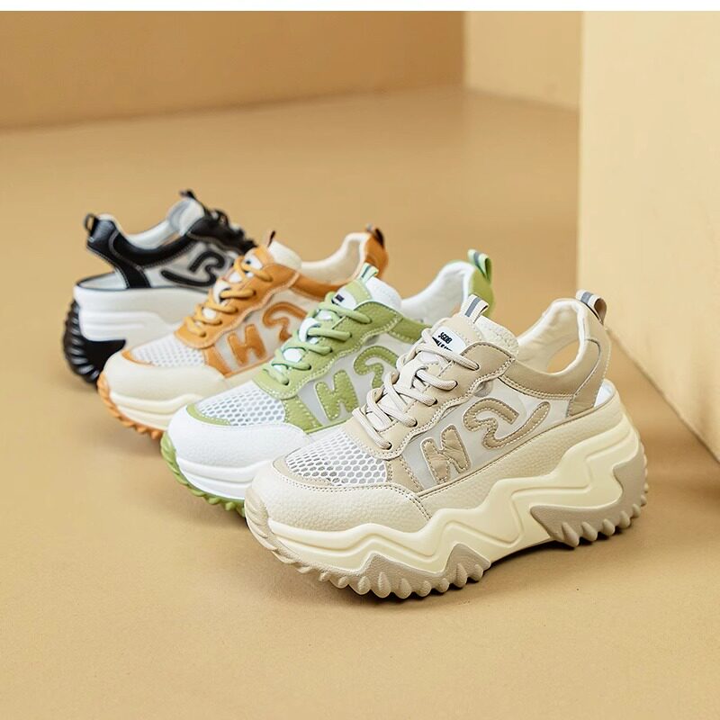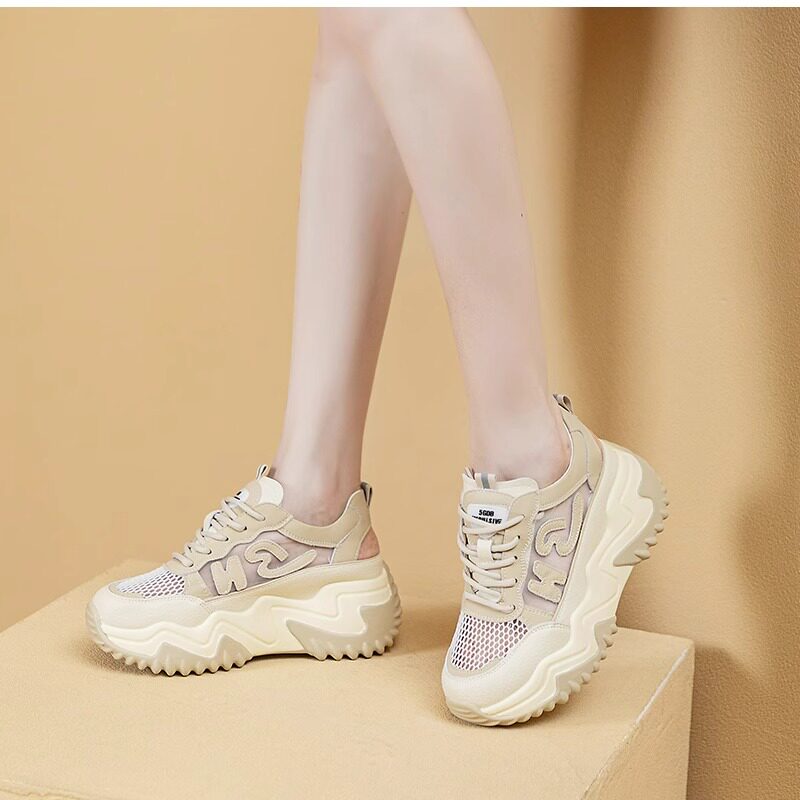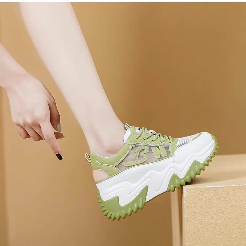 Qvu~ Brand Counter! Dad Shoes, Sandals with Hidden Height Increase, Hollow Mesh, Breathable, Perforated, Sporty Casual White Shoes