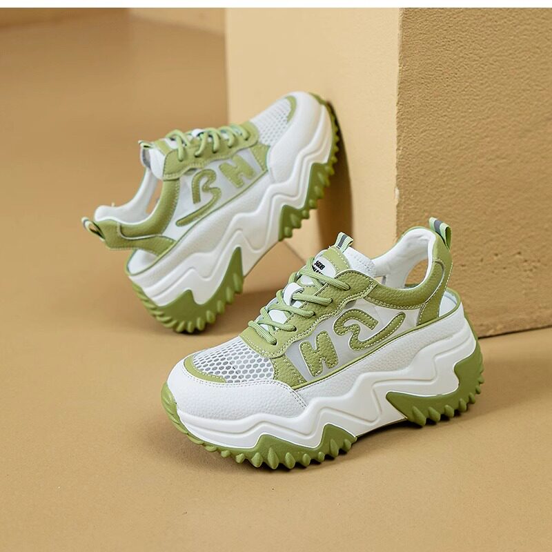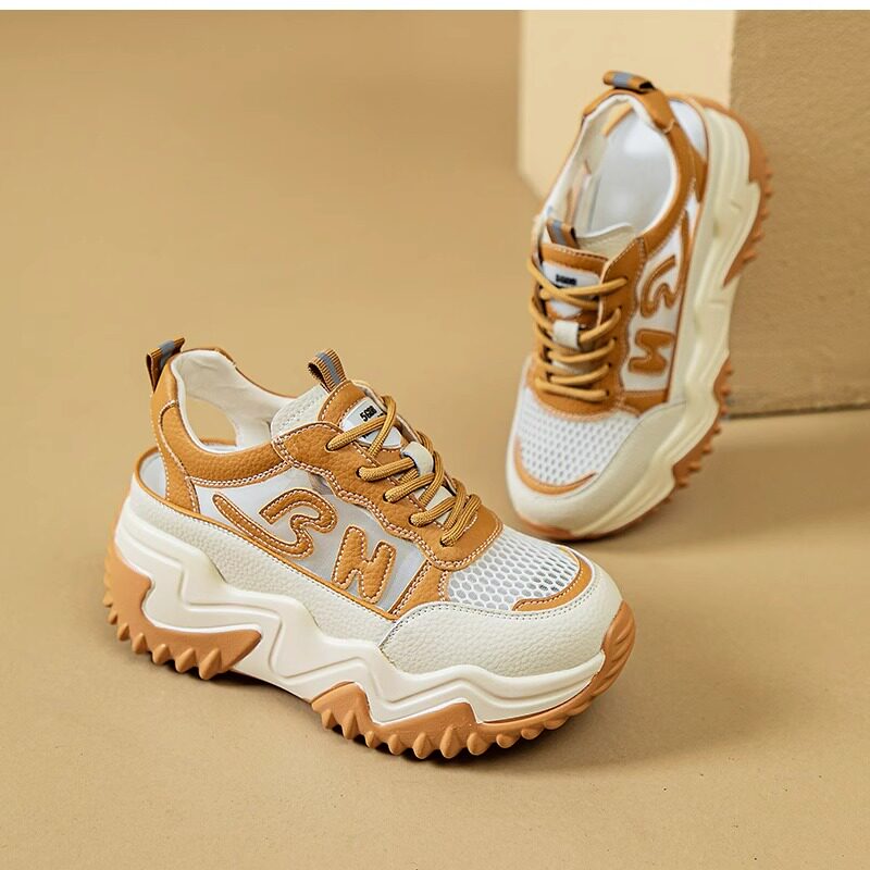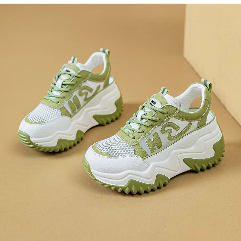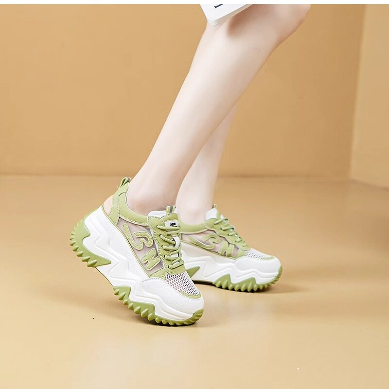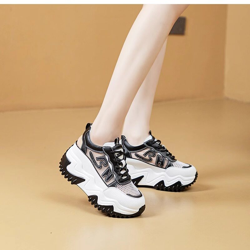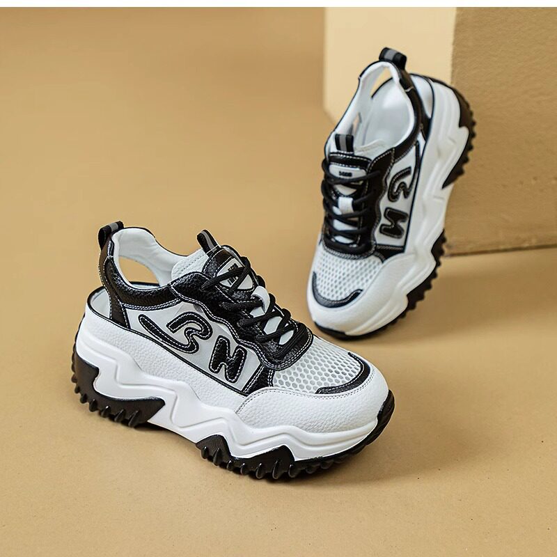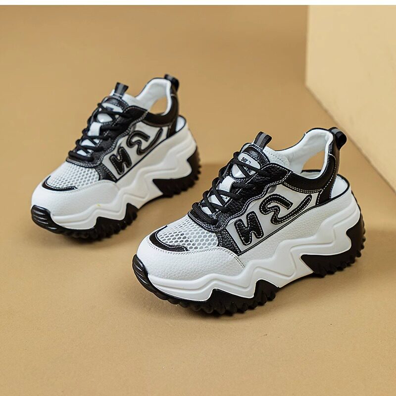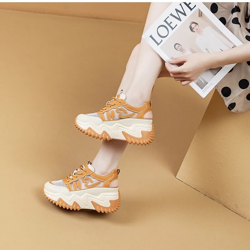 Qvu~ Brand Counter! Dad Shoes, Sandals with Hidden Height Increase, Hollow Mesh, Breathable, Perforated, Sporty Casual White Shoes