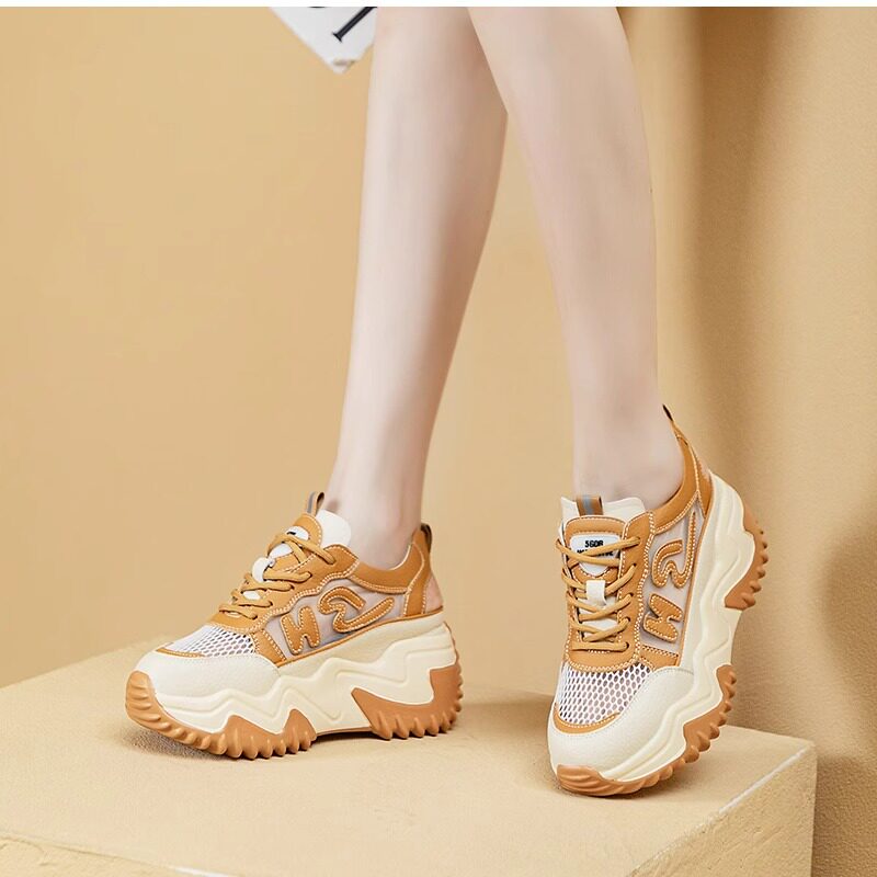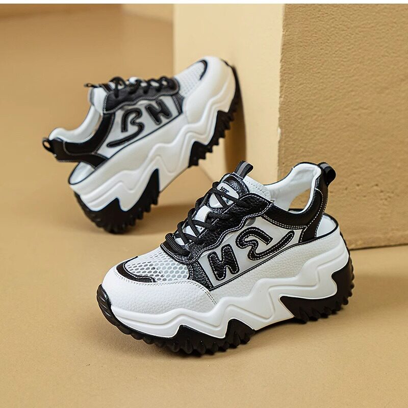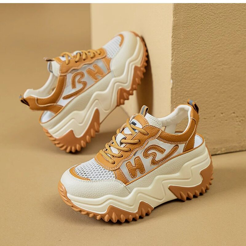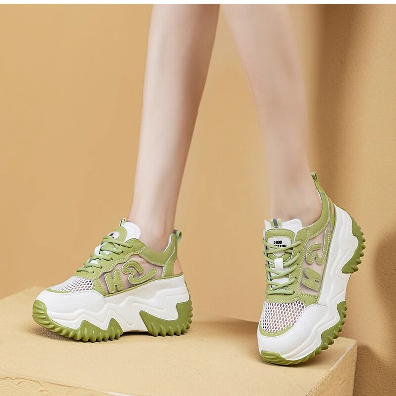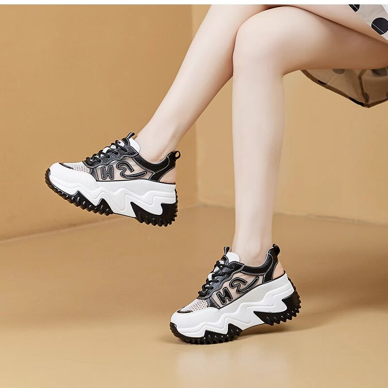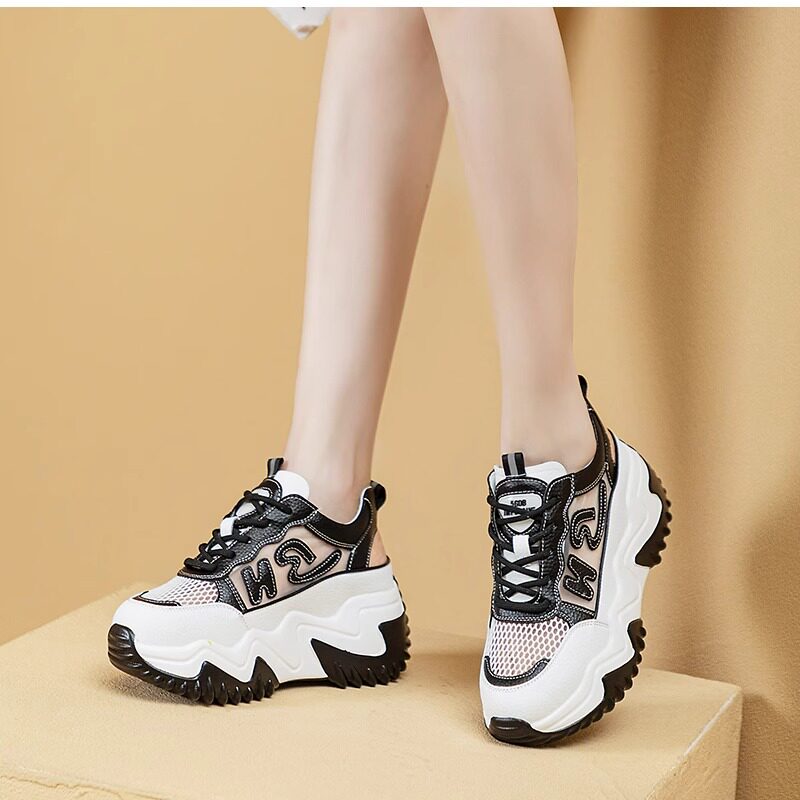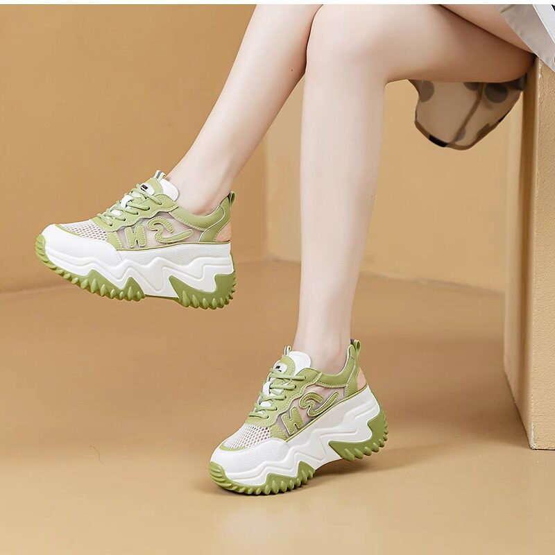 Qvu~ Brand Counter! Dad Shoes, Sandals with Hidden Height Increase, Hollow Mesh, Breathable, Perforated, Sporty Casual White Shoes
