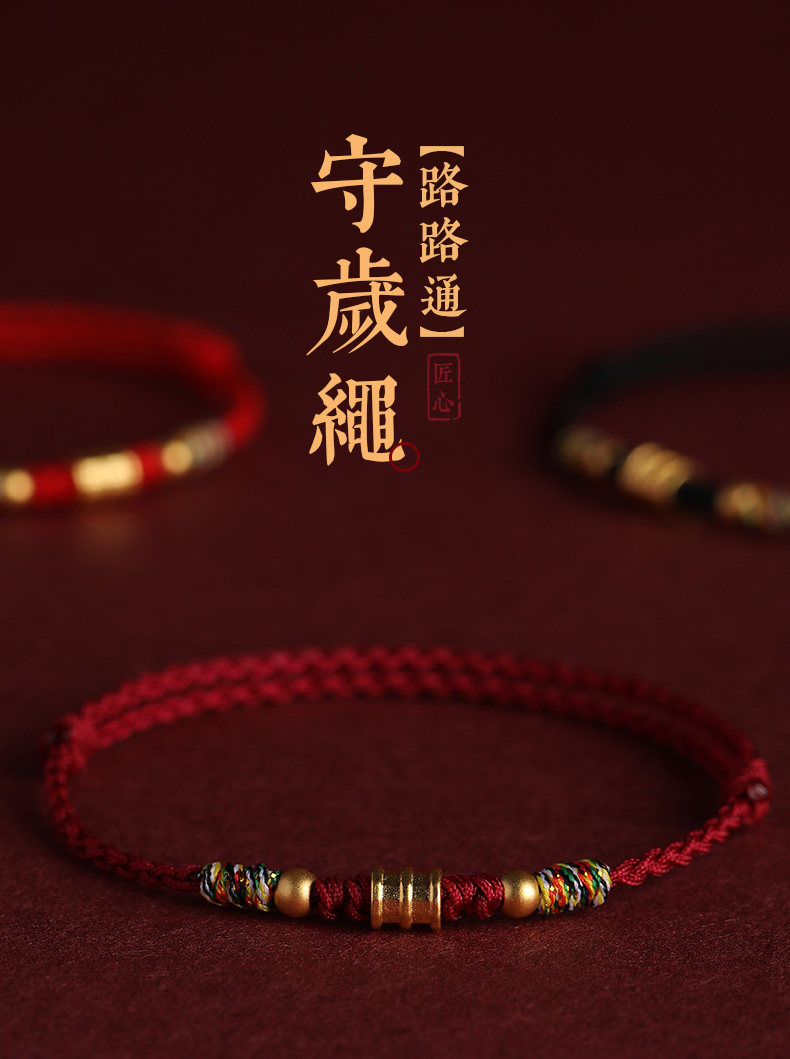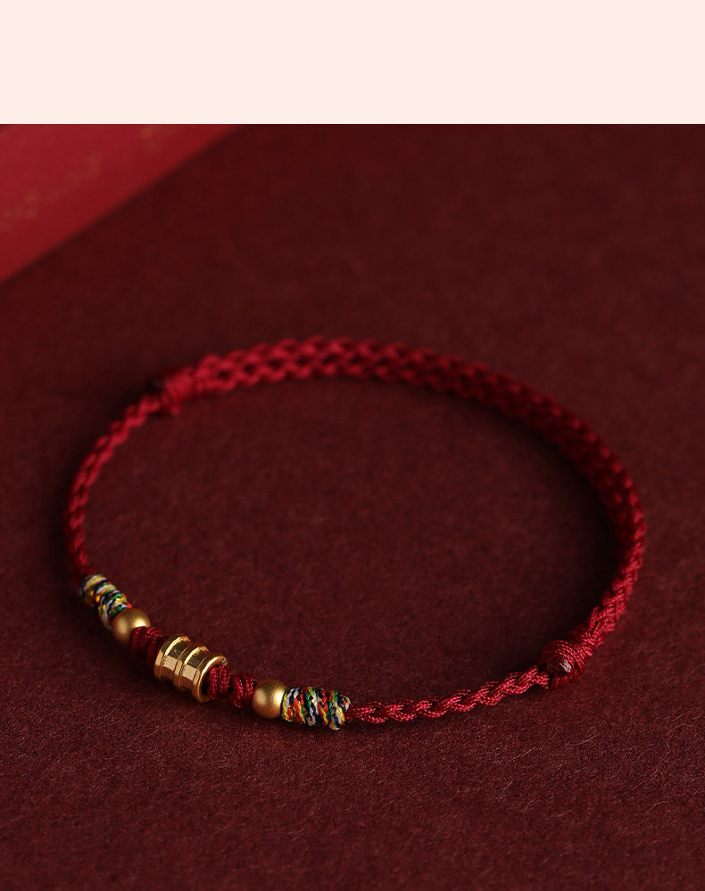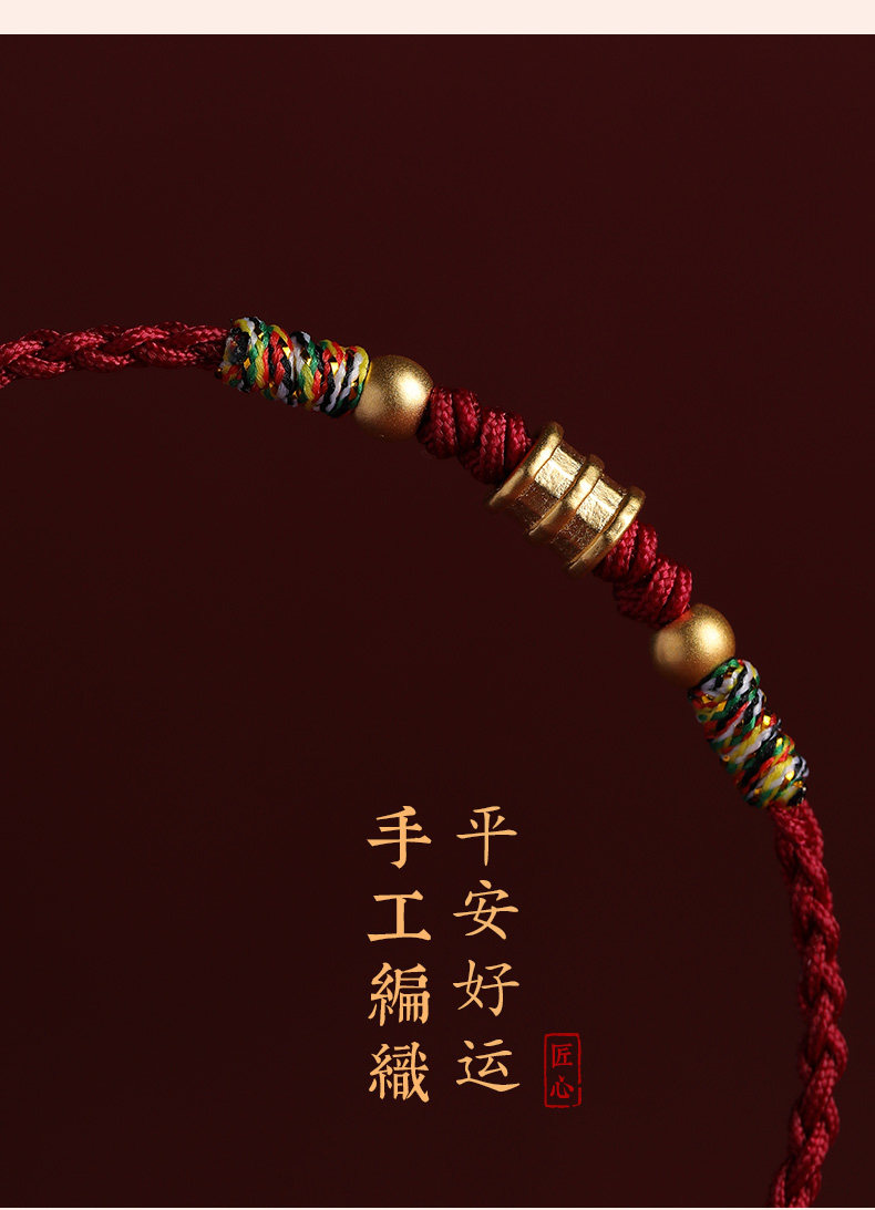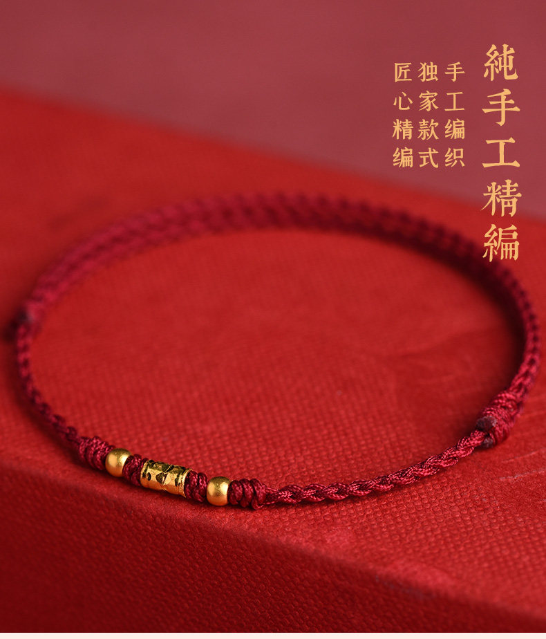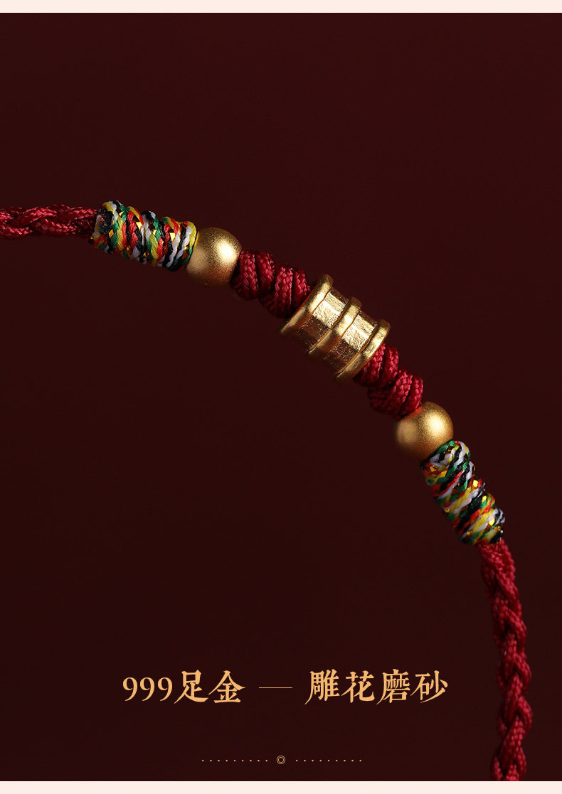 Putuo Mountain 999 Pure Gold Gold Bracelet with Red String for Men and Women, Snake and Horse Zodiac Year, Good Luck and Fortune Beads Weaving
