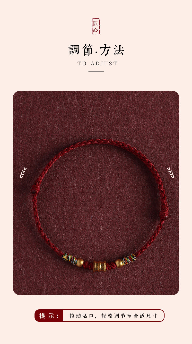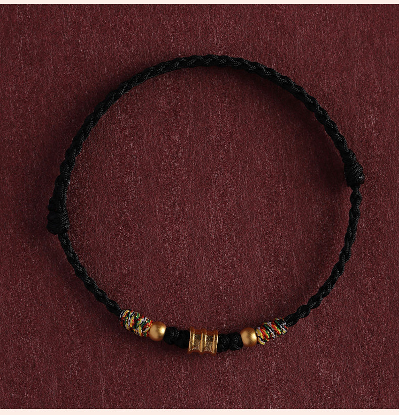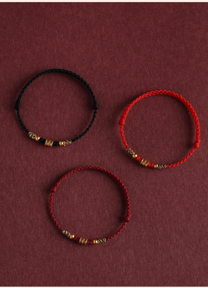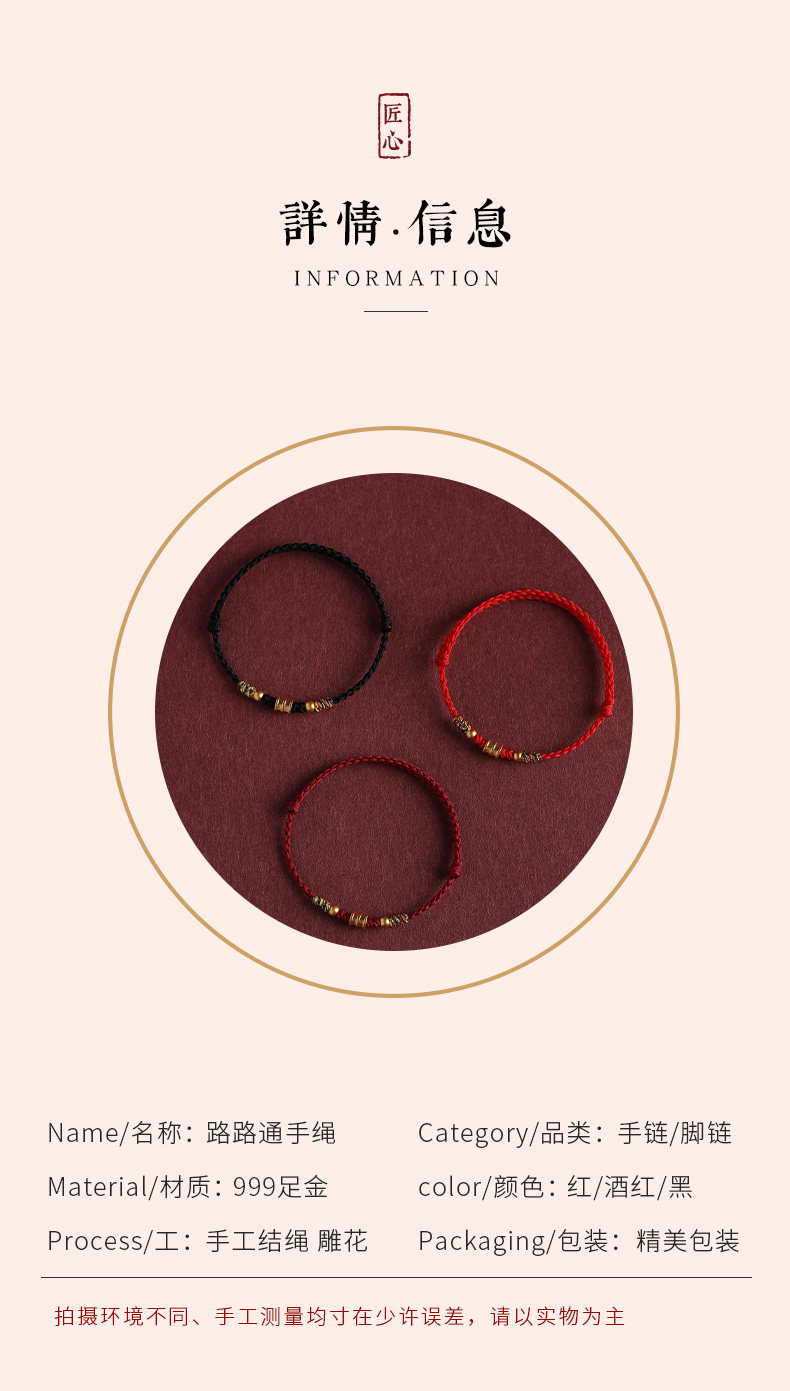 Putuo Mountain 999 Pure Gold Gold Bracelet with Red String for Men and Women, Snake and Horse Zodiac Year, Good Luck and Fortune Beads Weaving