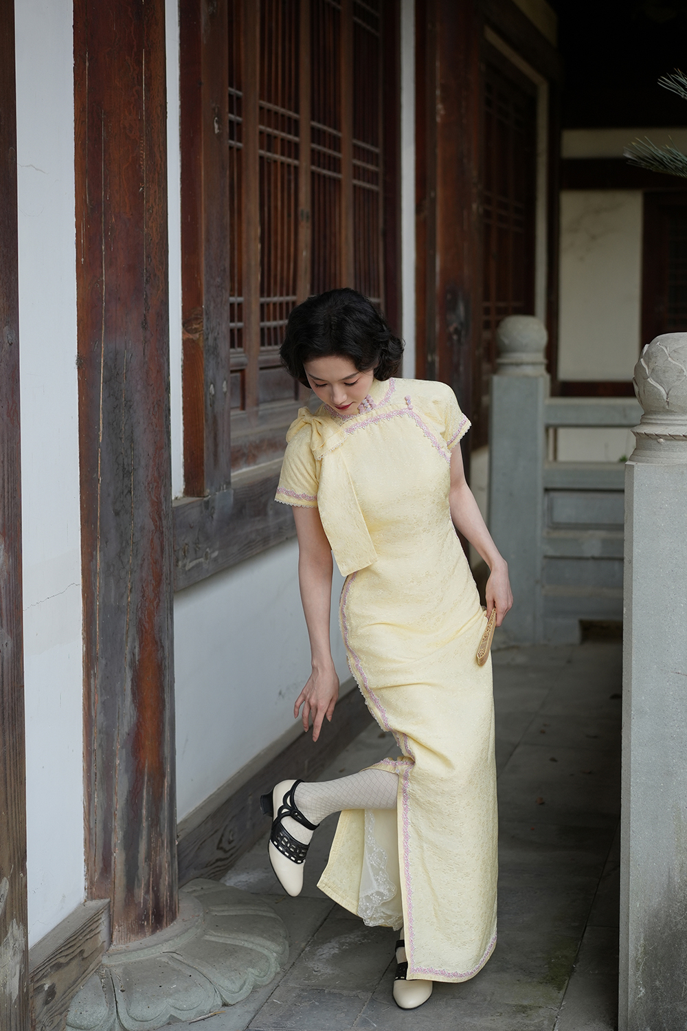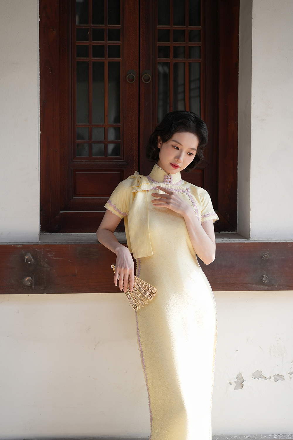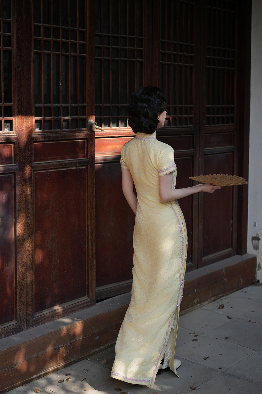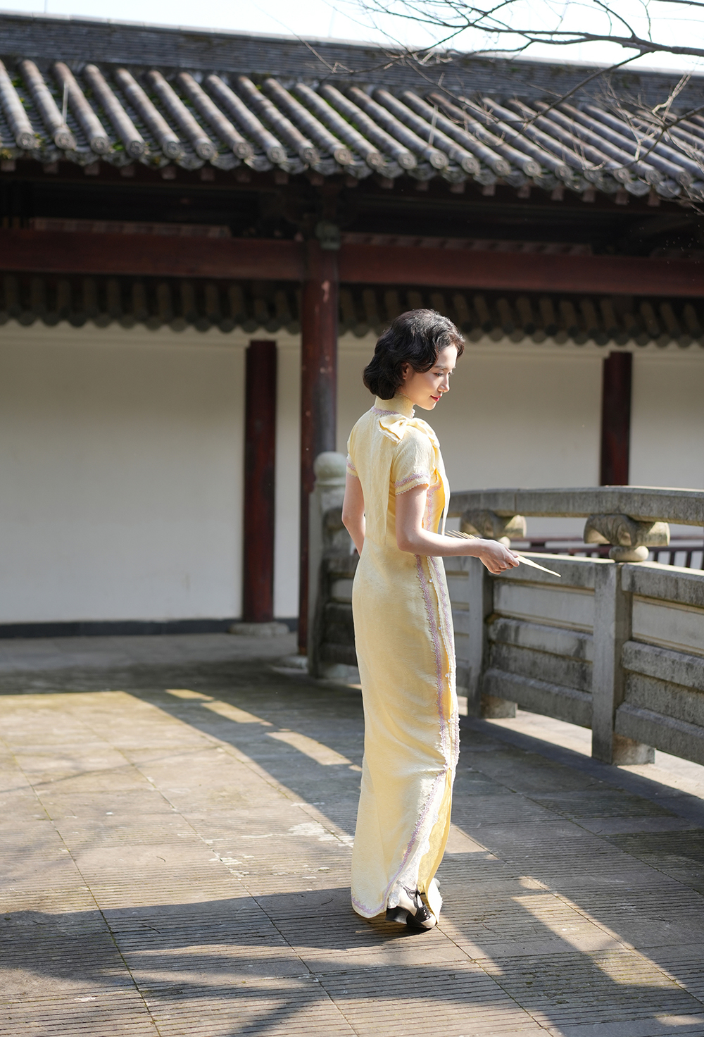 Zhi Zhi | Limited-Time Offer: Plain-Cut Goose Yellow Cheongsam, Silk Blend 30S, Floor-Length, Not Machine Washable, 29 Momme.