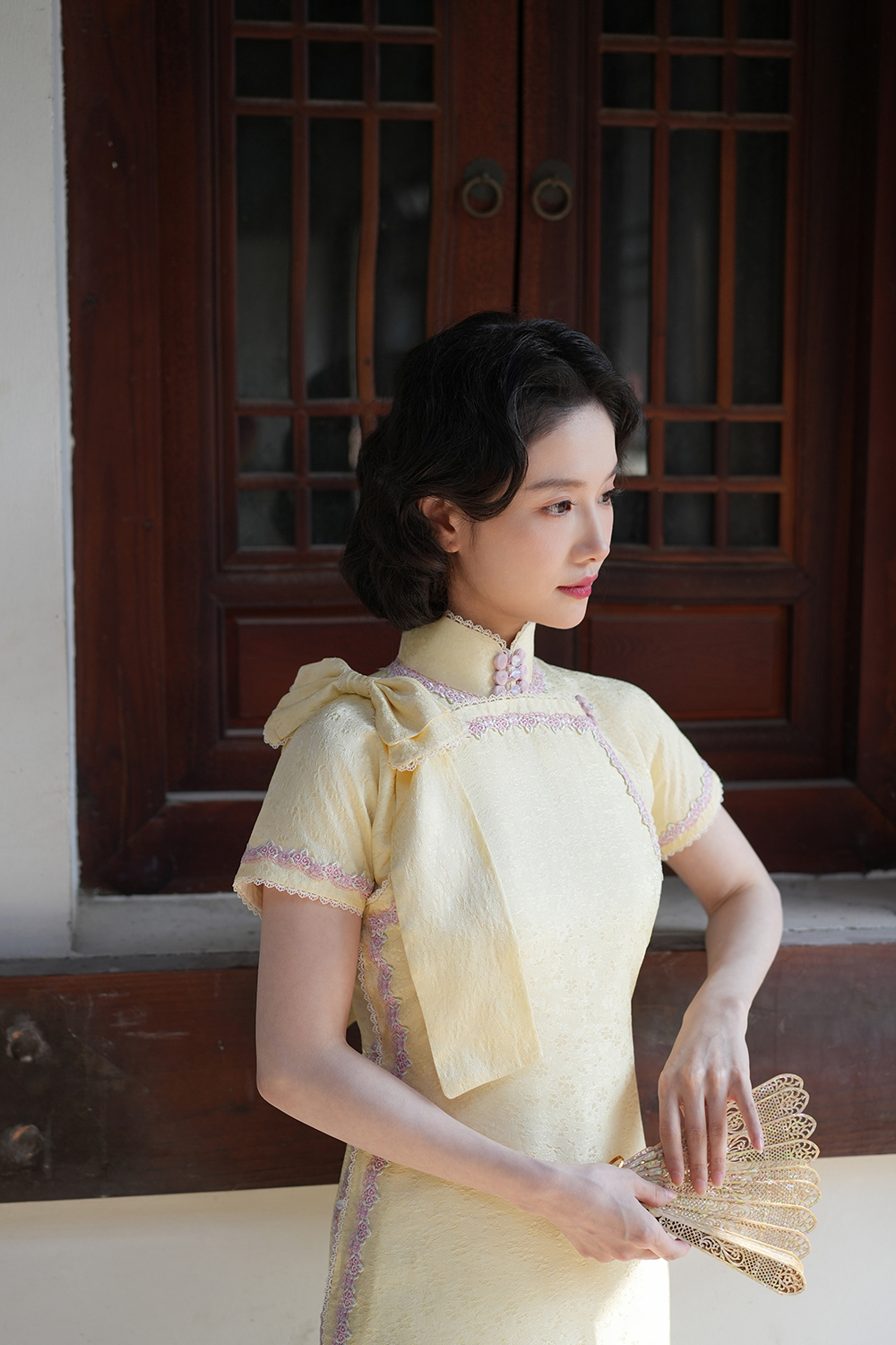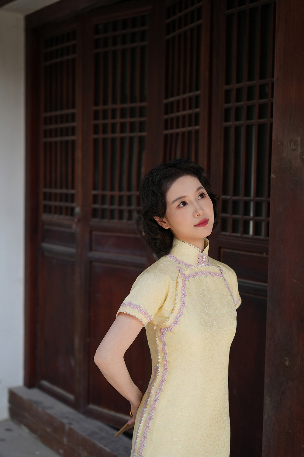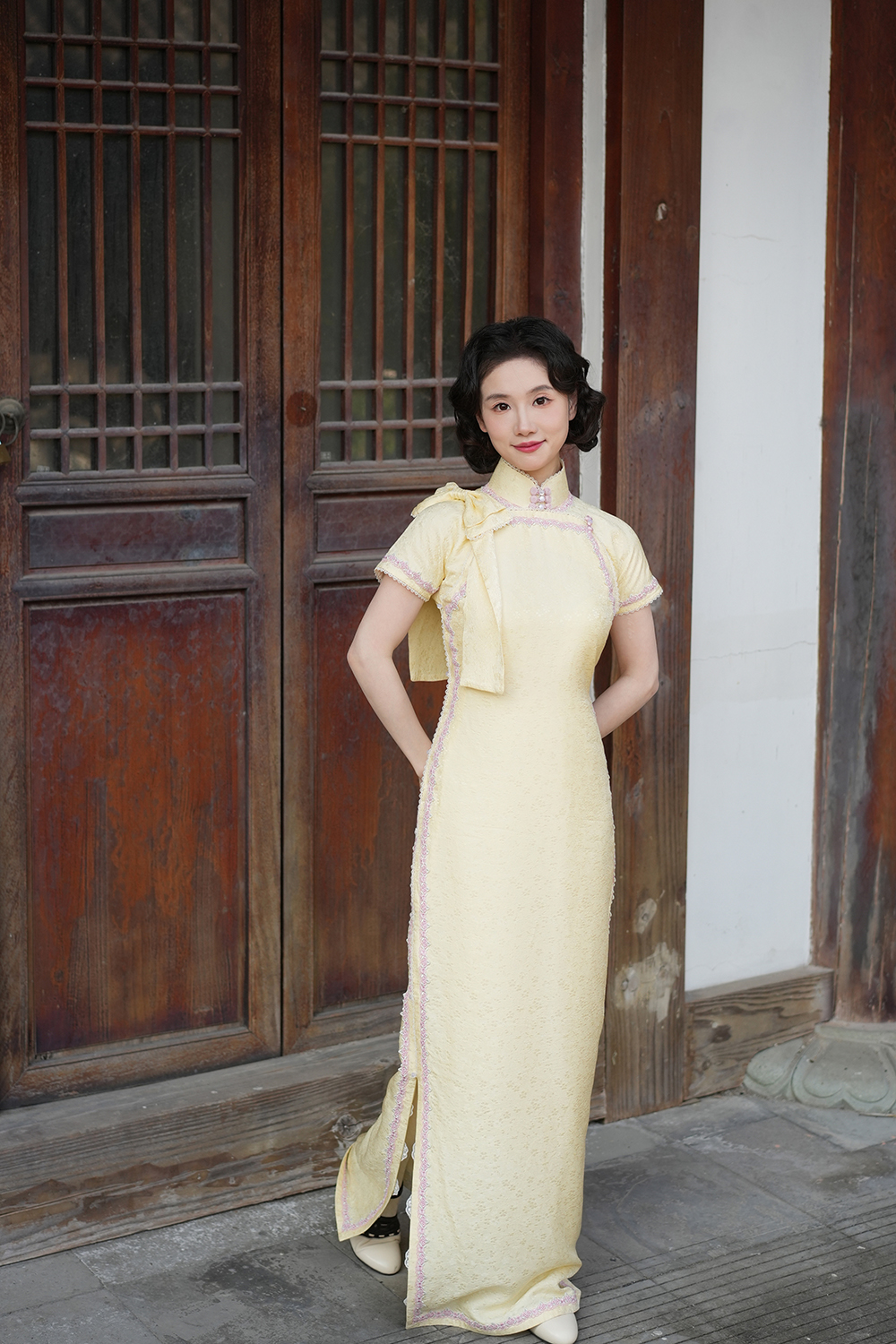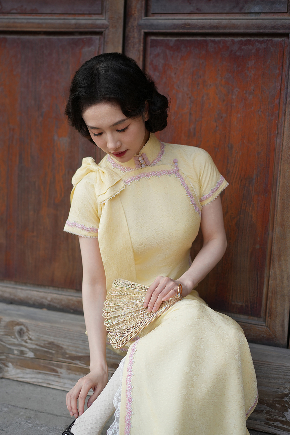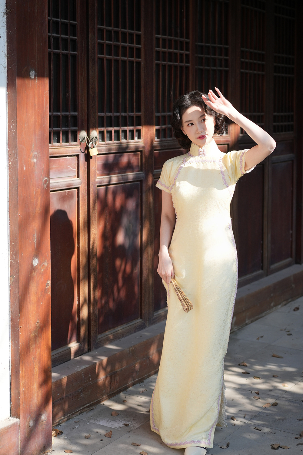 Zhi Zhi | Limited-Time Offer: Plain-Cut Goose Yellow Cheongsam, Silk Blend 30S, Floor-Length, Not Machine Washable, 29 Momme.
