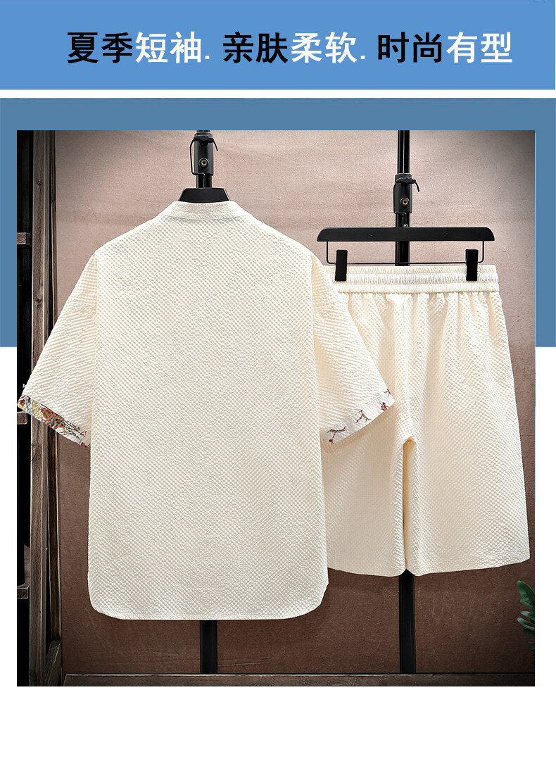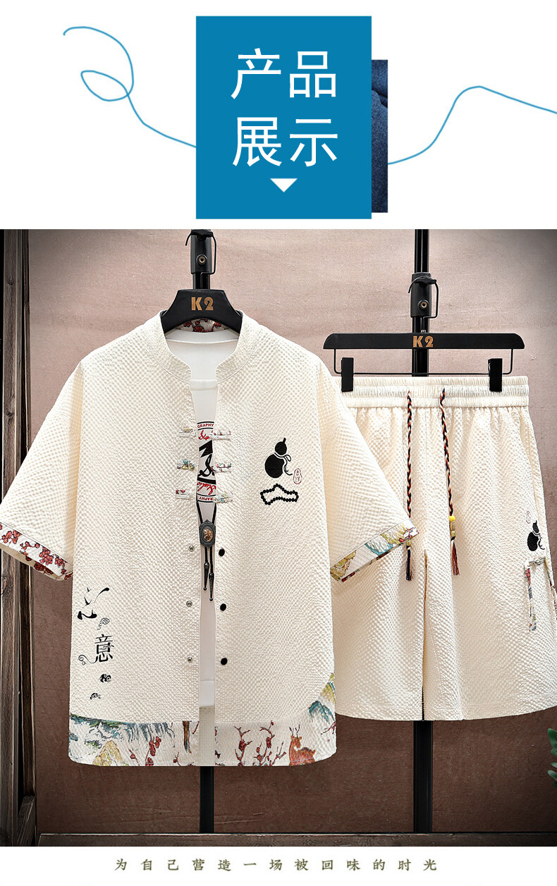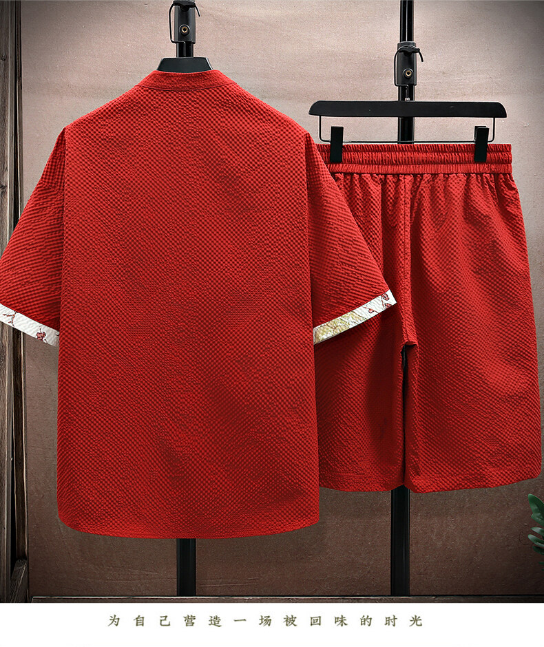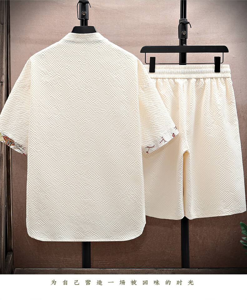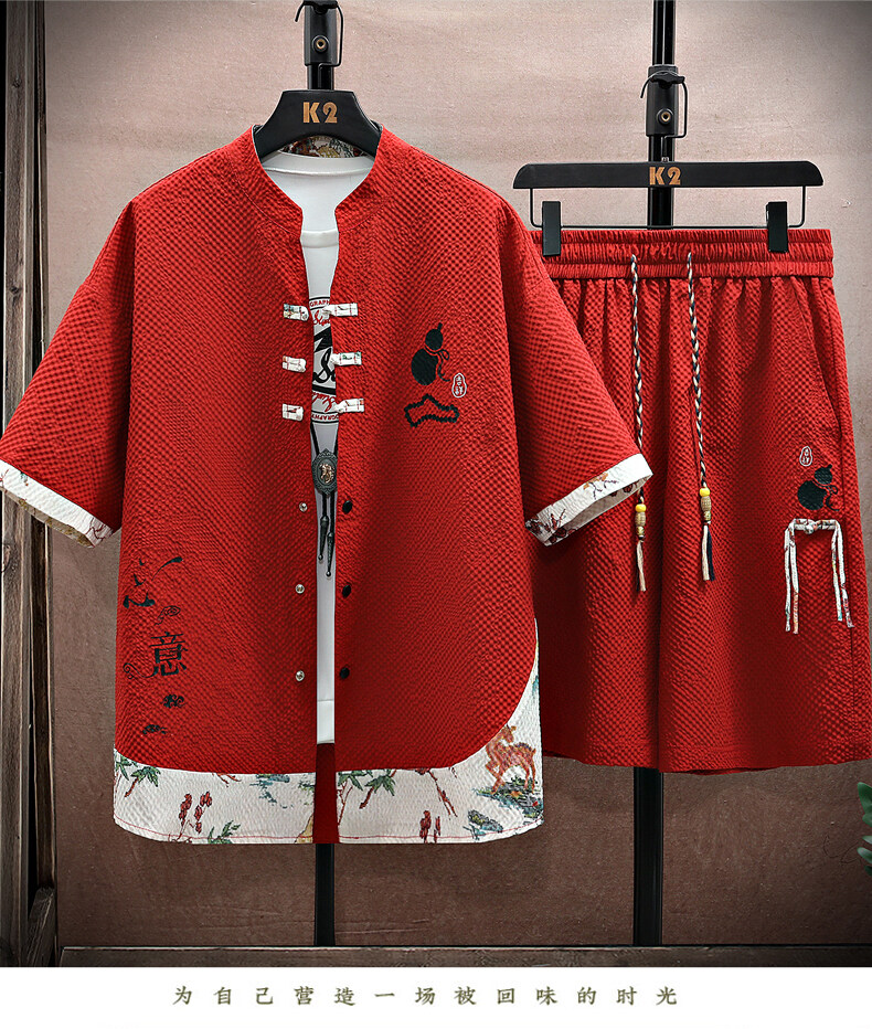 Chinese Style Short-Sleeved Suit for Men, Summer Thin Shirt and Shorts Two-Piece Set, Loose Casual National Trend Hanfu Tang Suit