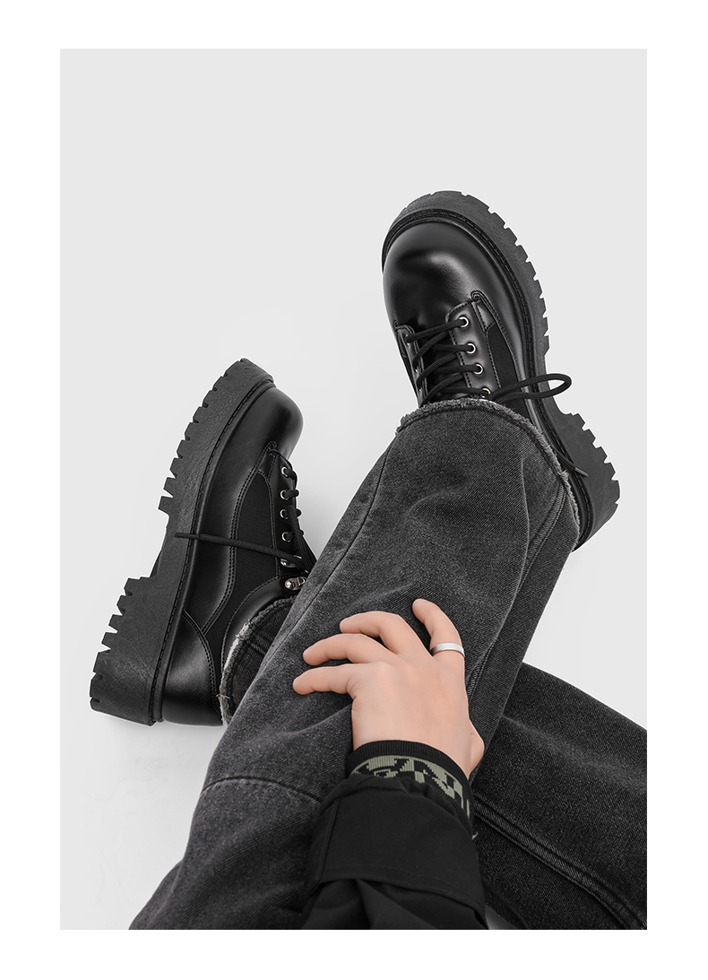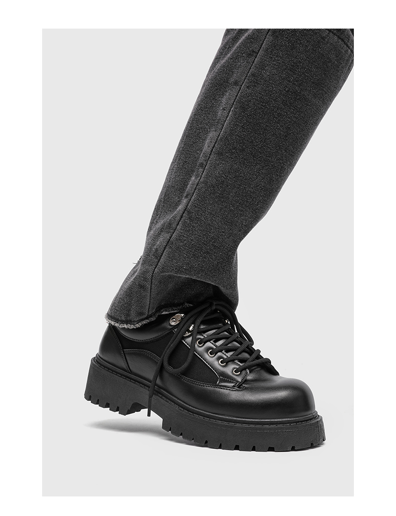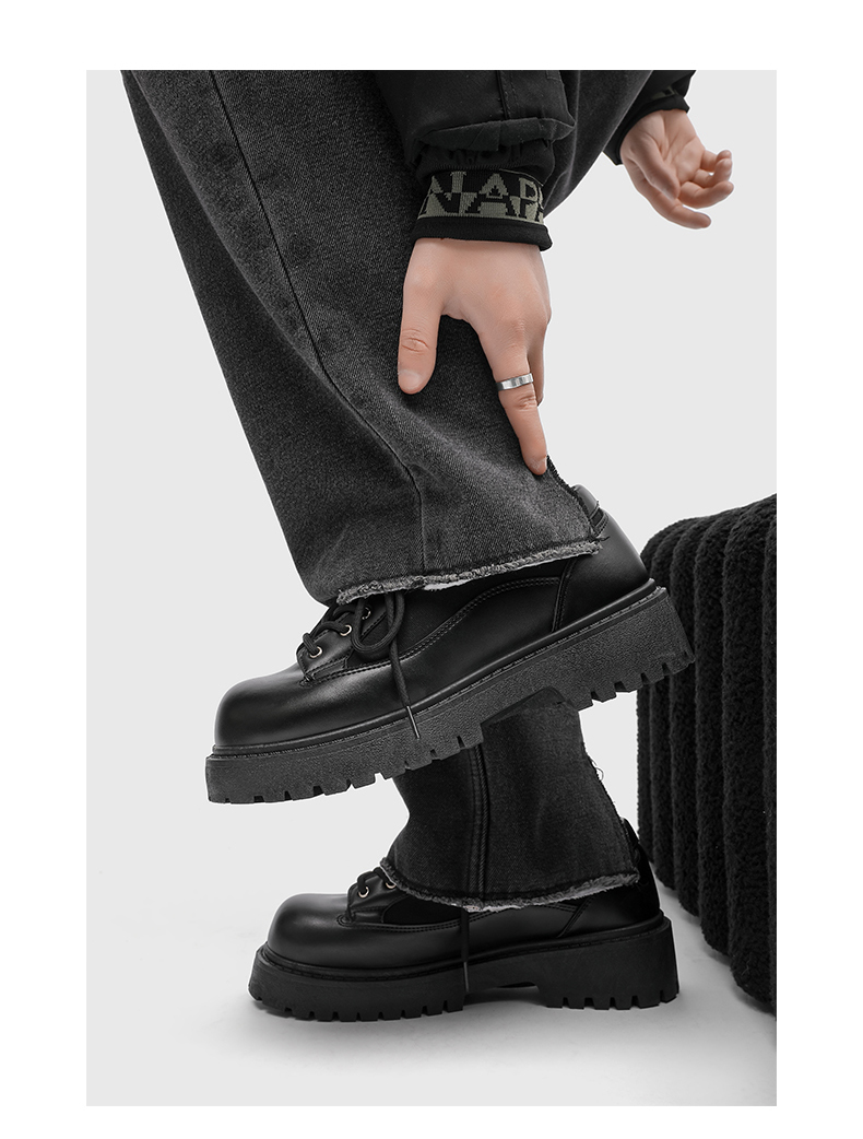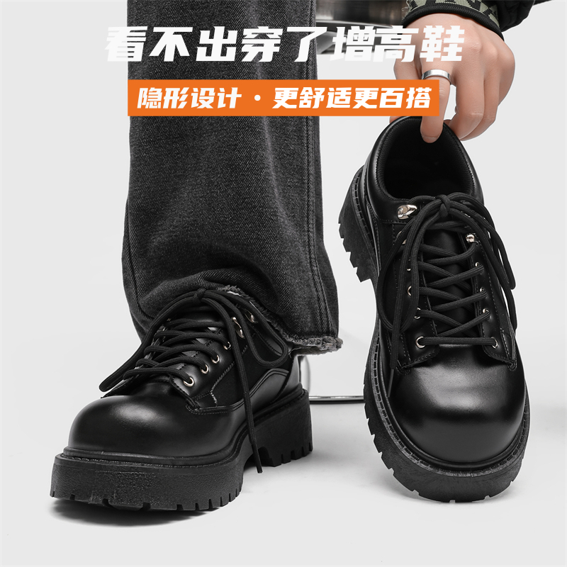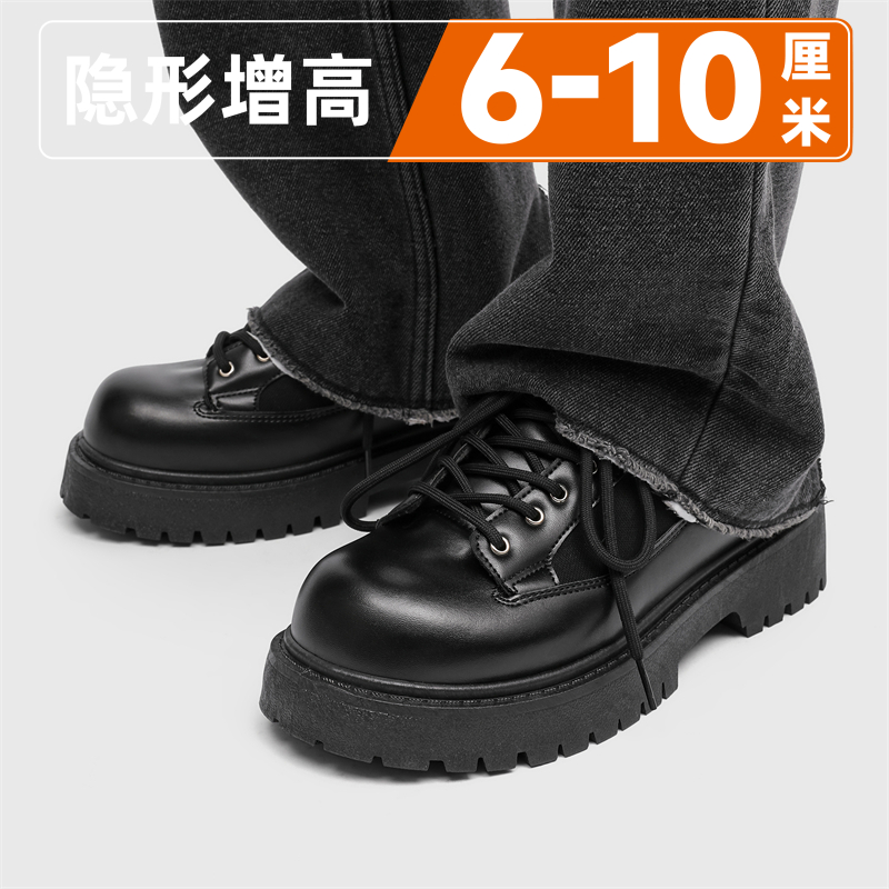 Thick-Soled Round-Toe Casual Leather Shoes for Men with Invisible Inner Height Increase of 10cm, High-End American Retro Workwear Large-Toe Derby Shoes