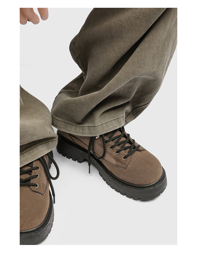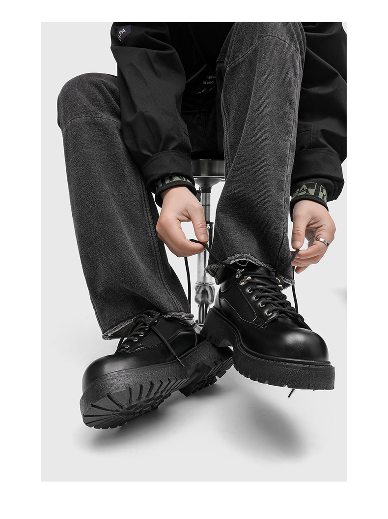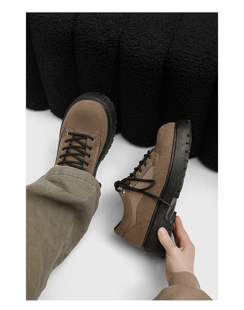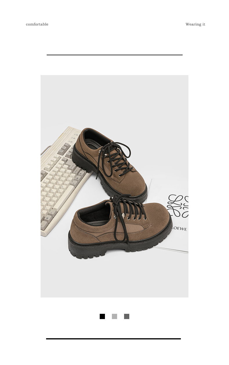 Thick-Soled Round-Toe Casual Leather Shoes for Men with Invisible Inner Height Increase of 10cm, High-End American Retro Workwear Large-Toe Derby Shoes