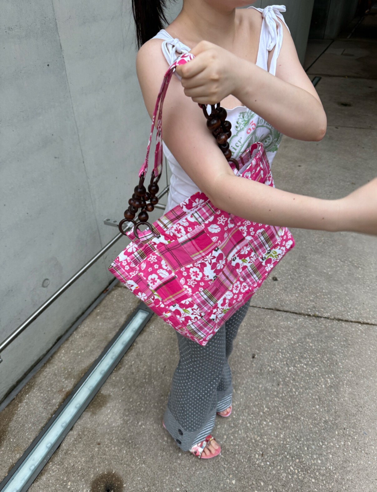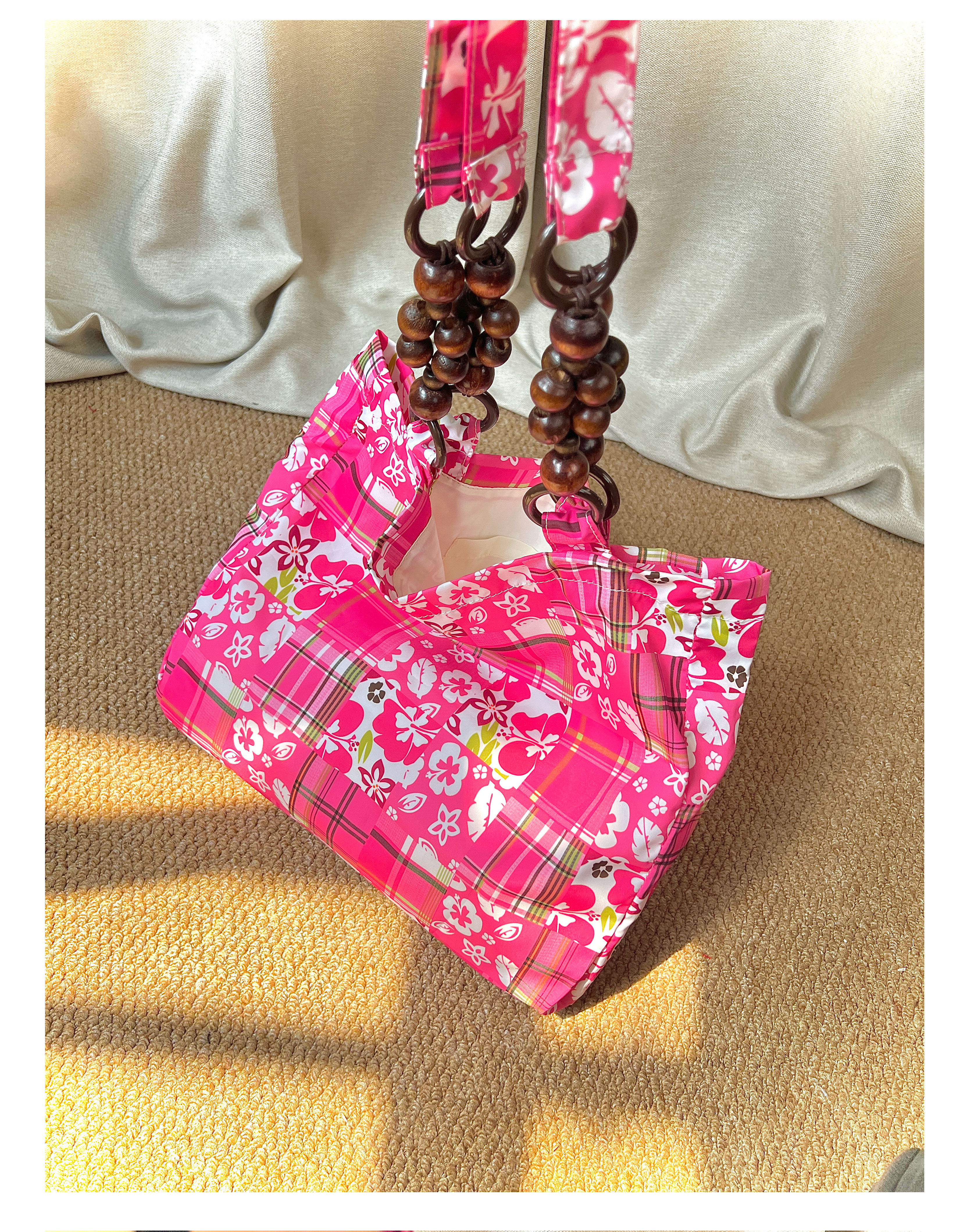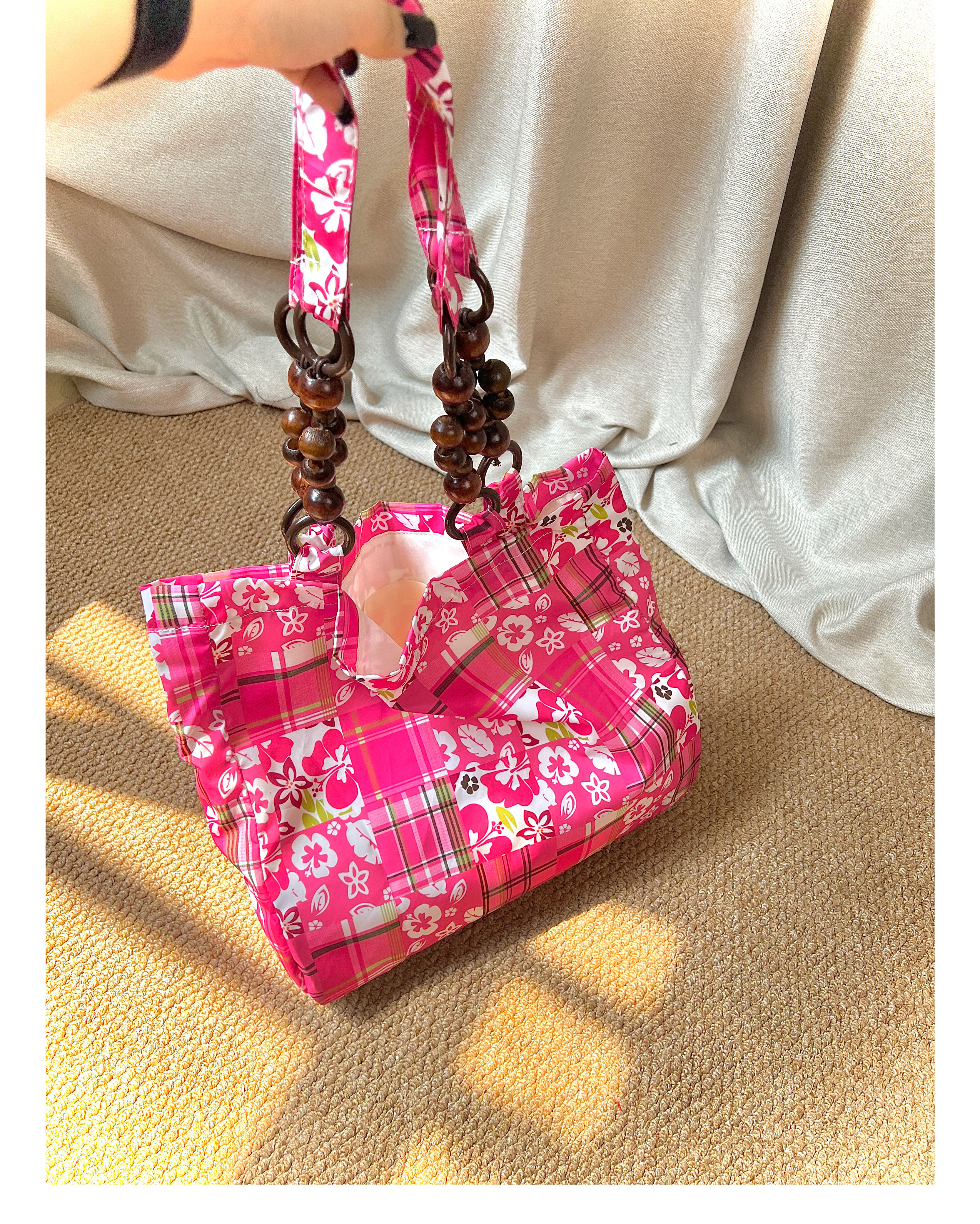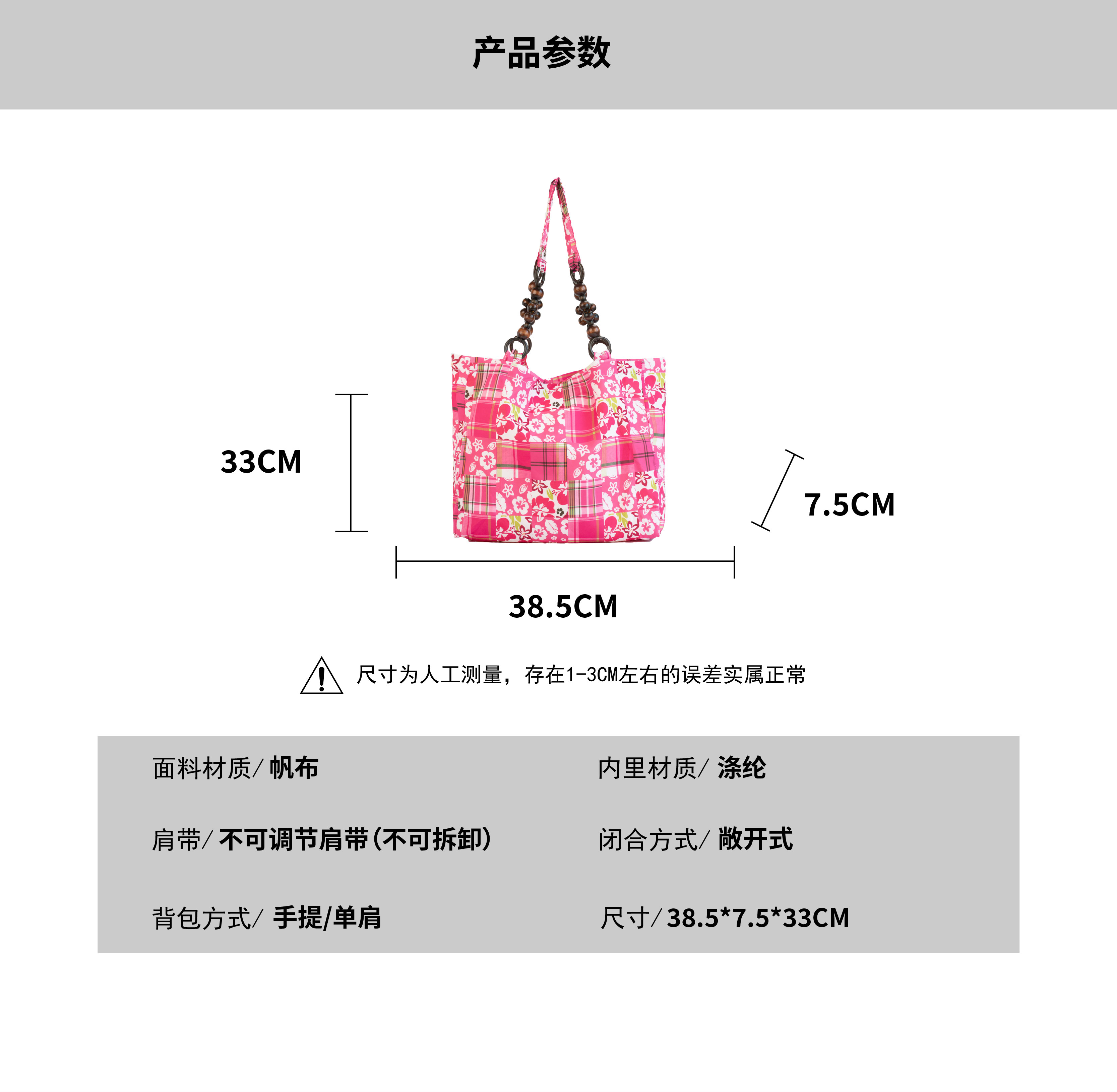 2025 New Autumn Holiday Style Hibiscus Flower Large-Capacity Patchwork Beaded Tote Bag, Trendy Niche Shoulder Bag