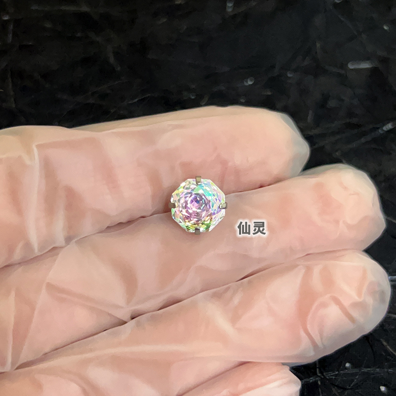 Discontinued at Any Time~ Flashing Multicolored Rose-Cut Medical Titanium Alloy Earrings with Spiral Cochlear Ear Bone Design, Hypoallergenic