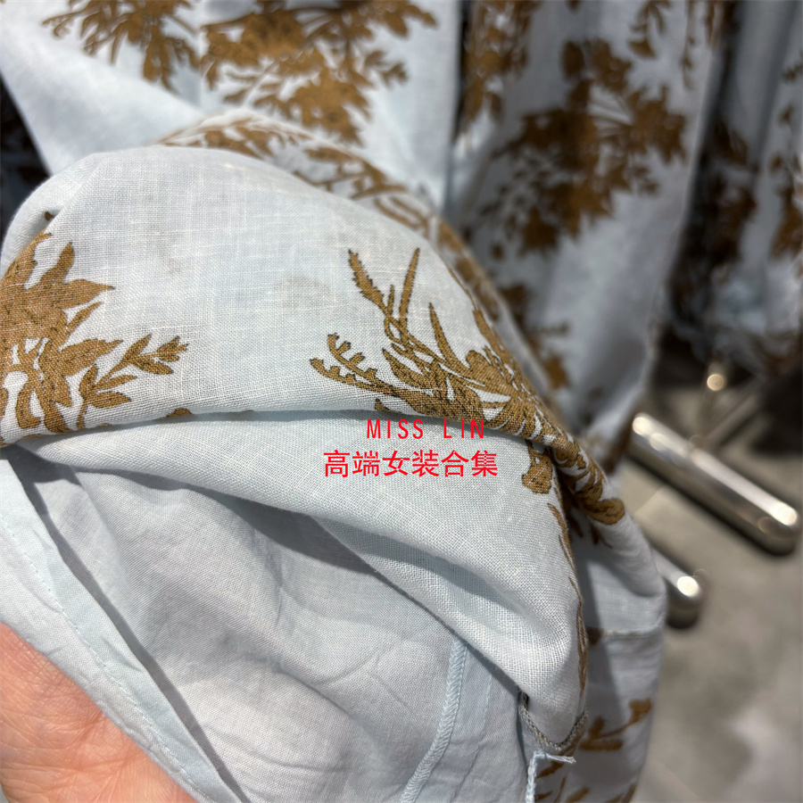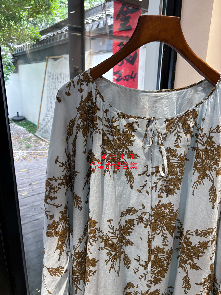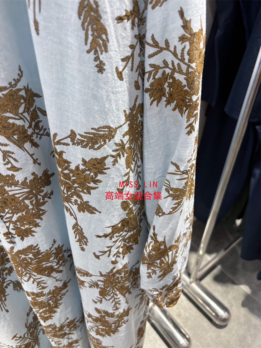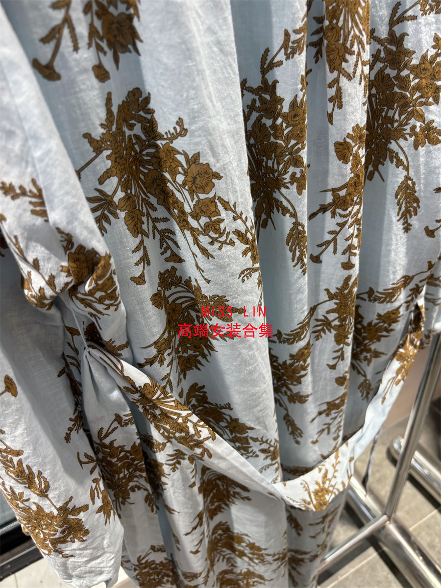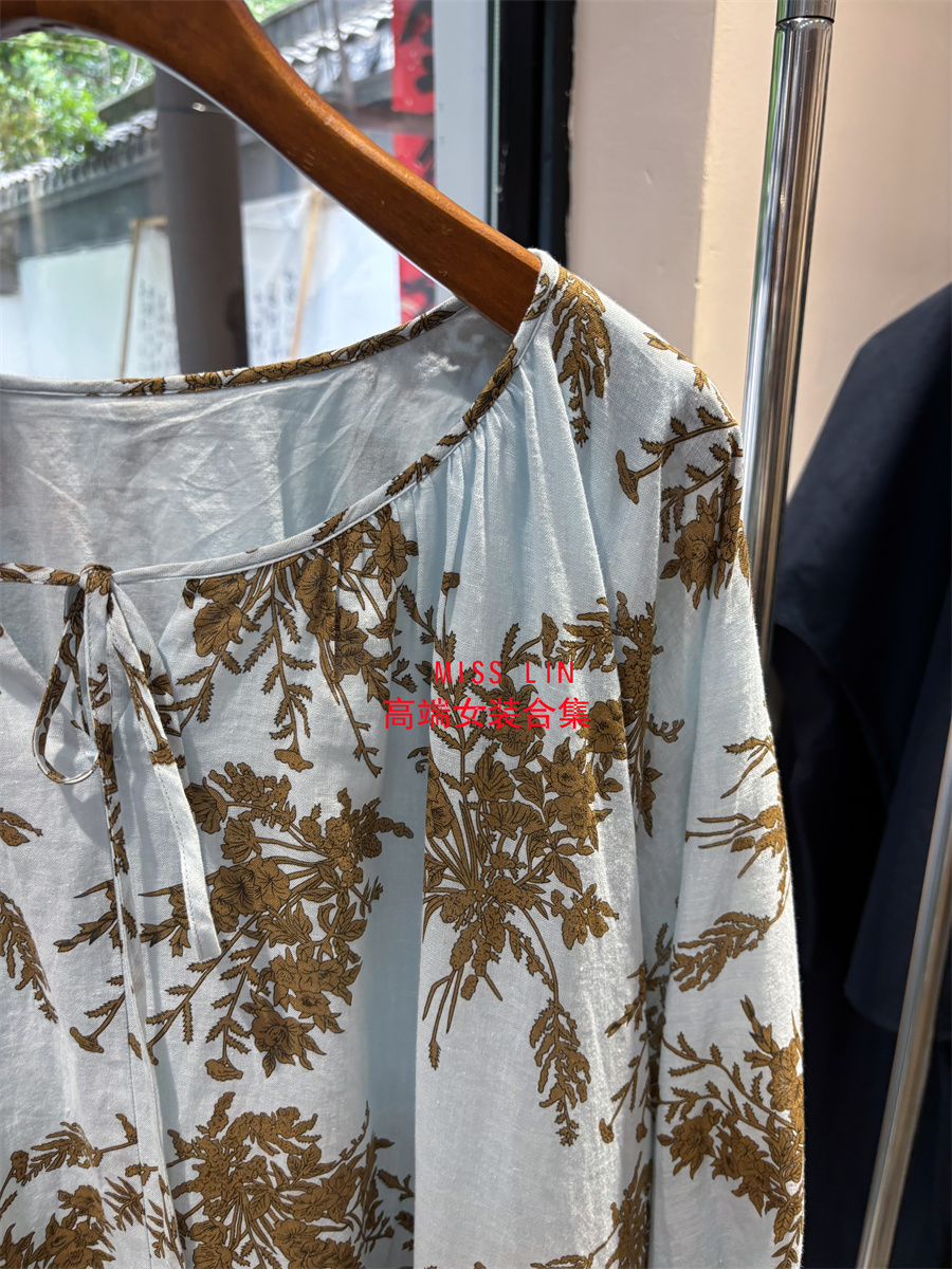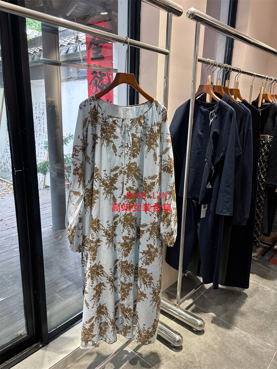 Spring Is Dawning. Designed with a V-Neck, Linen-Cotton Printed Long-Sleeved Loose Dress, Holiday-Style Long Dress