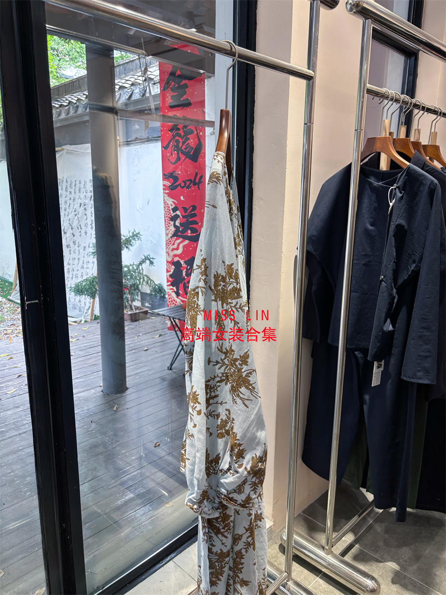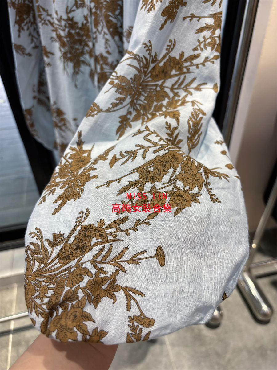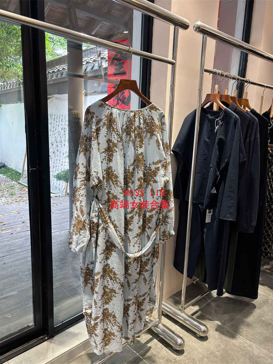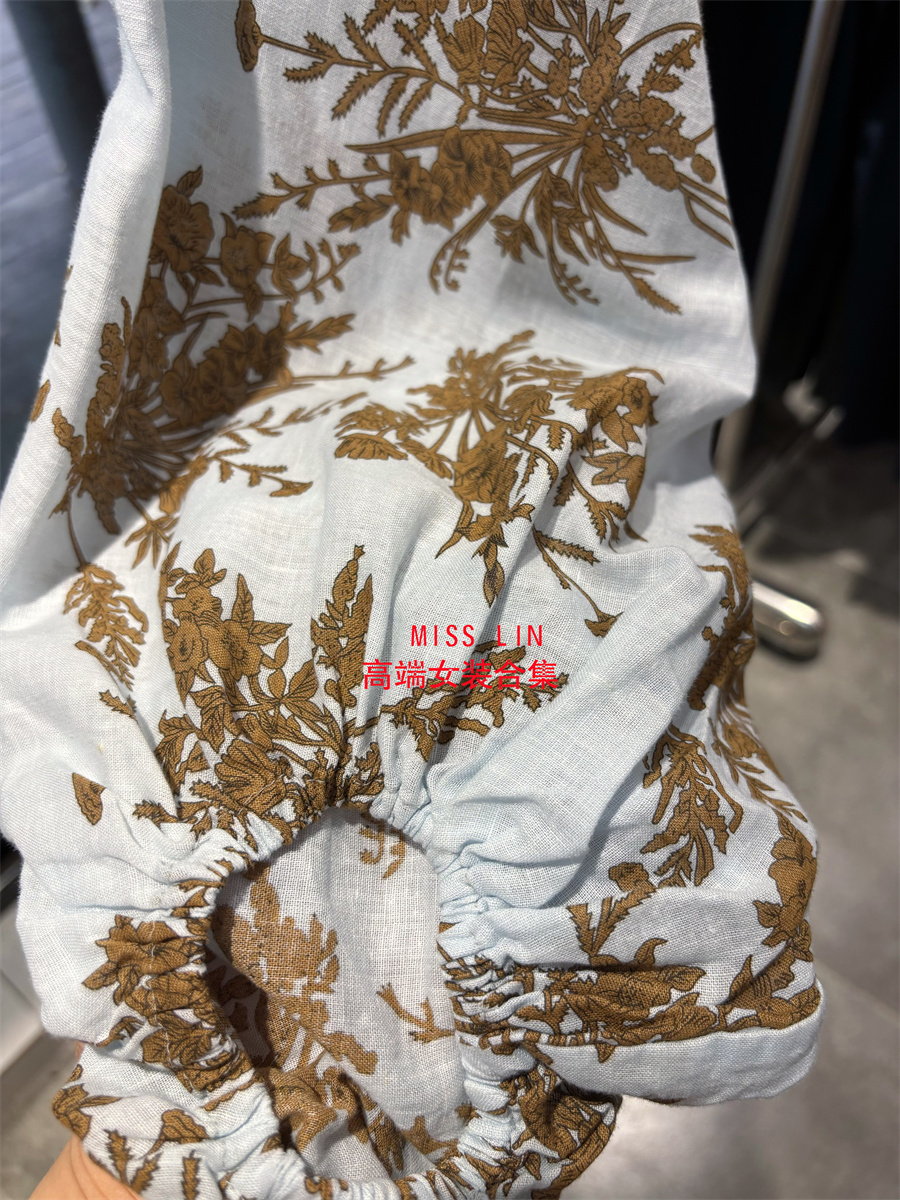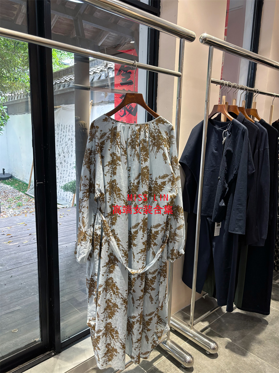 Spring Is Dawning. Designed with a V-Neck, Linen-Cotton Printed Long-Sleeved Loose Dress, Holiday-Style Long Dress