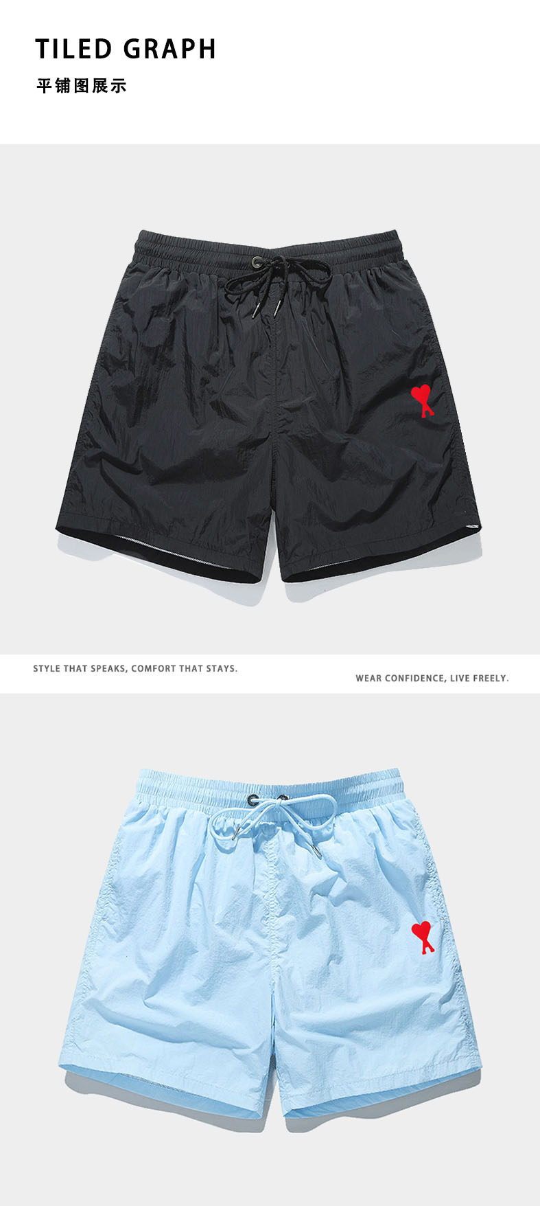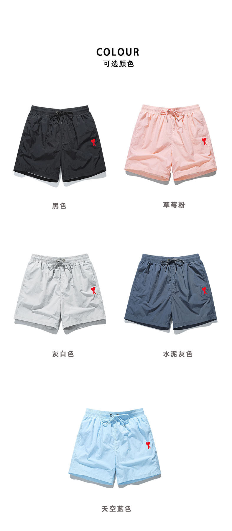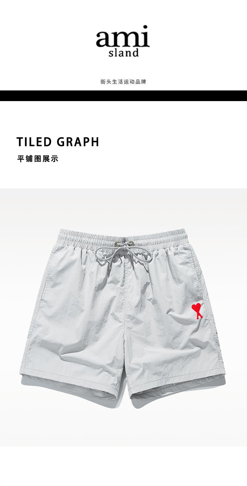 Ami Sland Official Gray-White Quick-Drying Shorts Summer Casual Sports Pants Heart-Shaped Casual Three-Quarter Pants