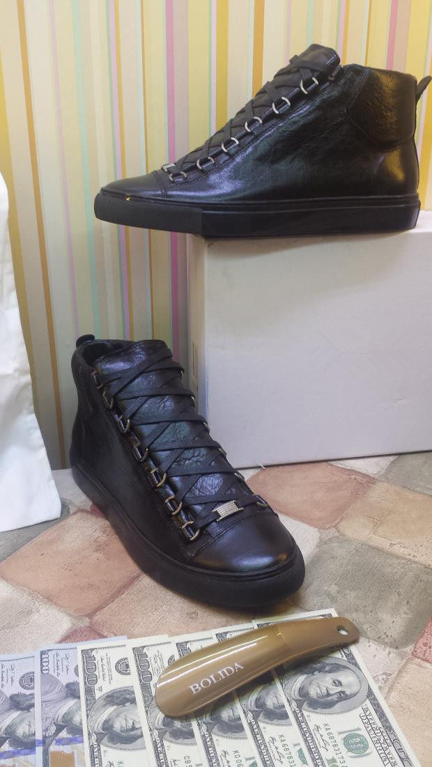 European Classic Paris ins Men's Shoes Black High-Top Wrinkled Leather Oil Wax German Training White Genuine Leather Sneakers