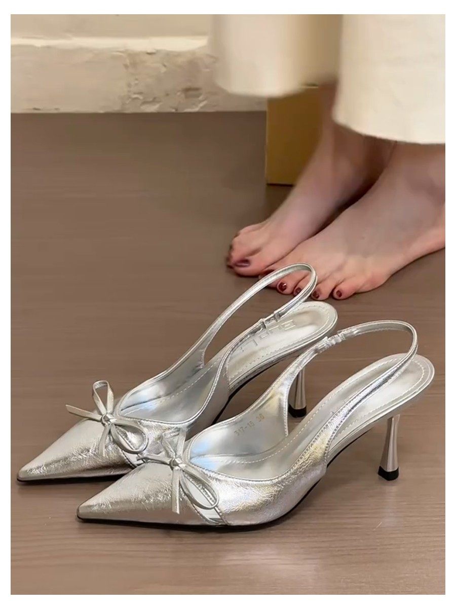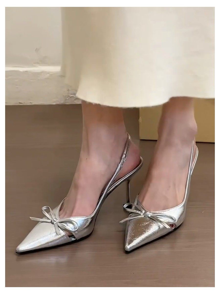 Beautiful Fairy-Style Stiletto Pointed-Toe Bow-Knot Single Shoes for Women 2025 New Style Closed-Toe Backless Elastic Band High-Heeled Shoes