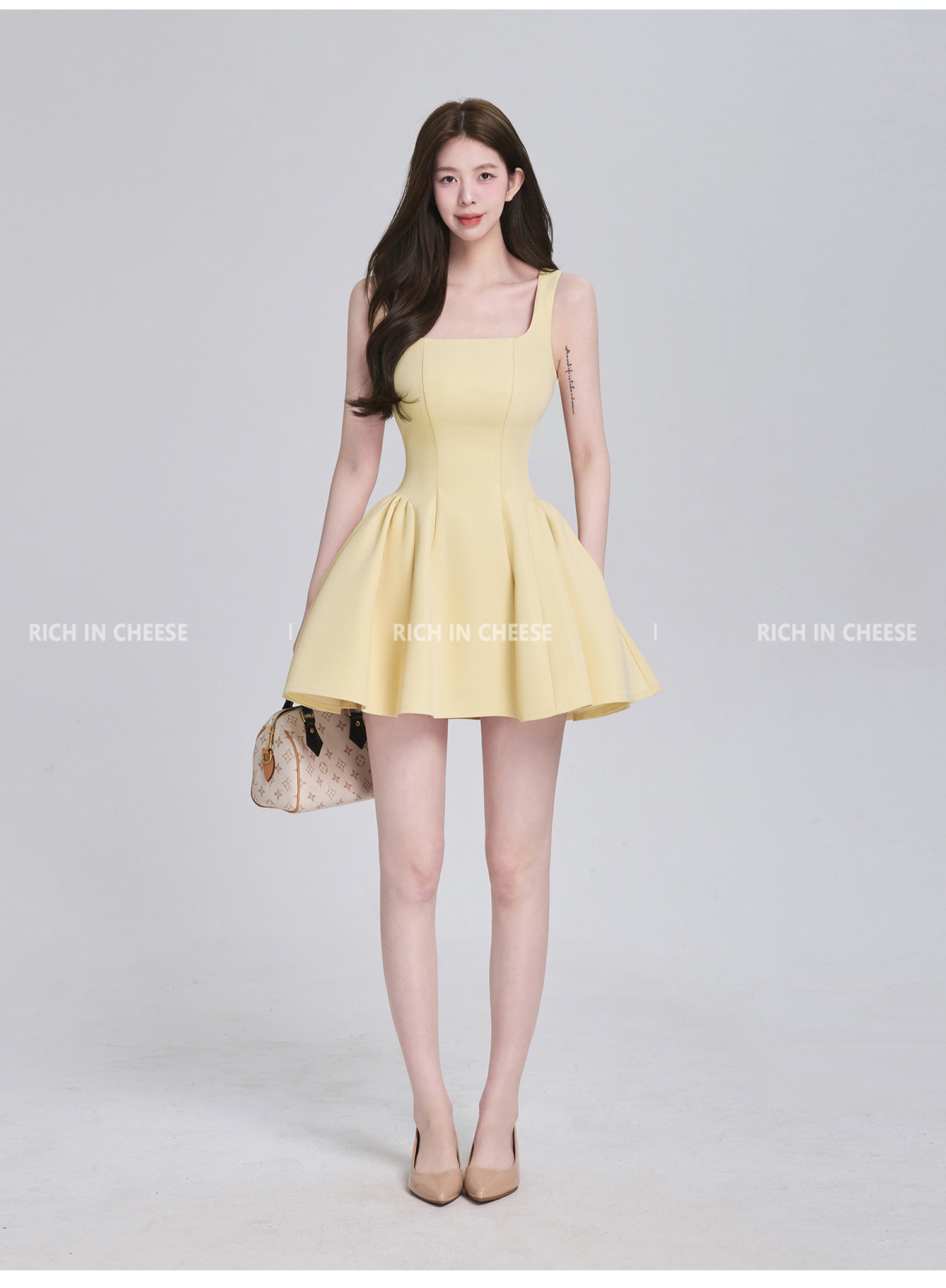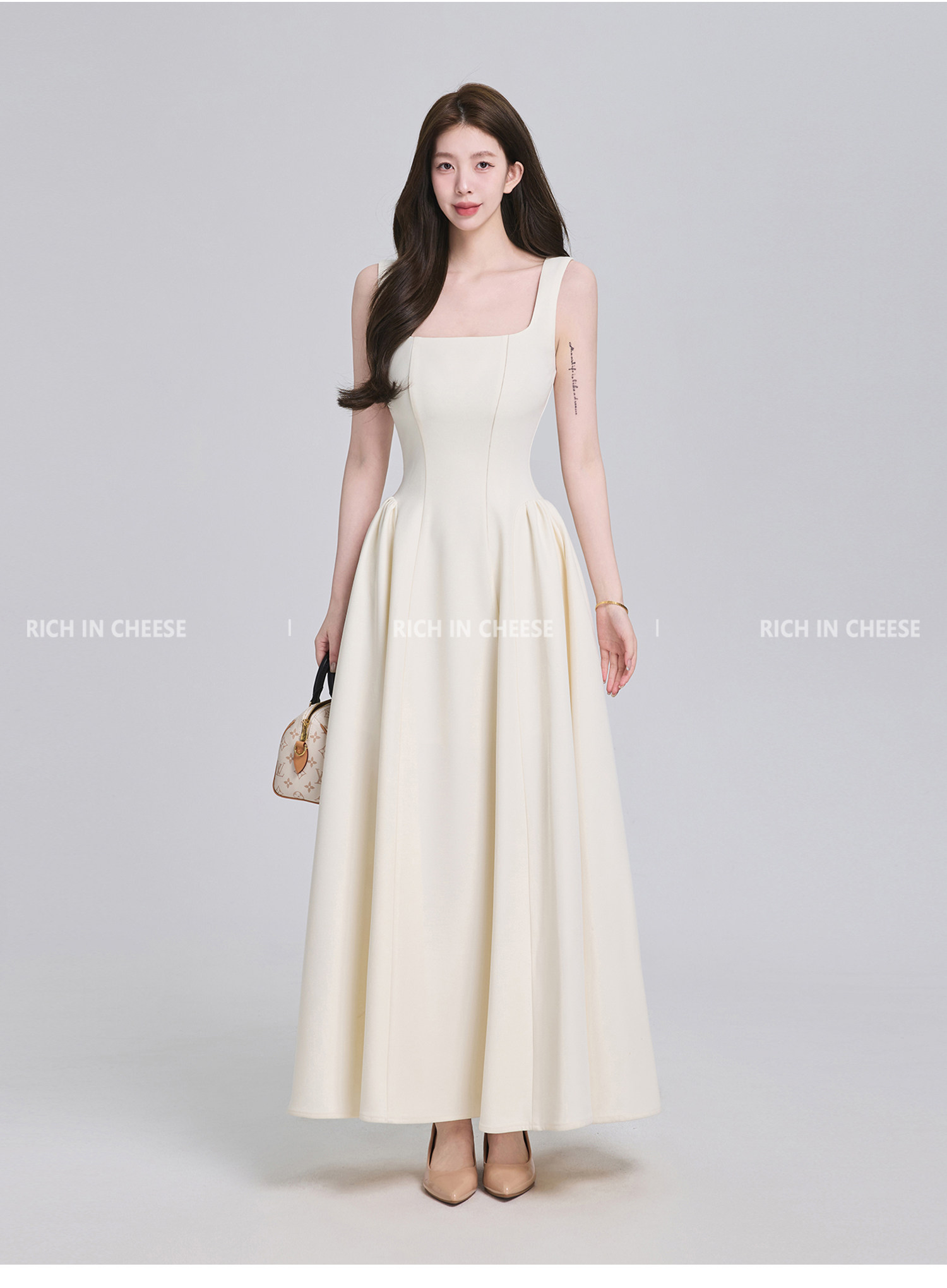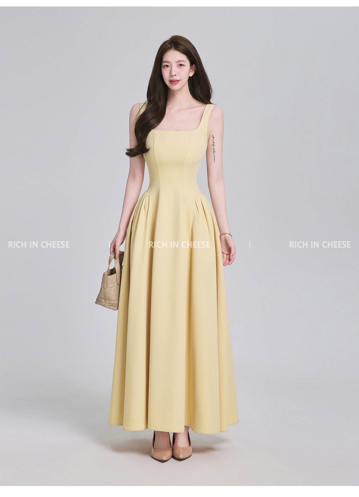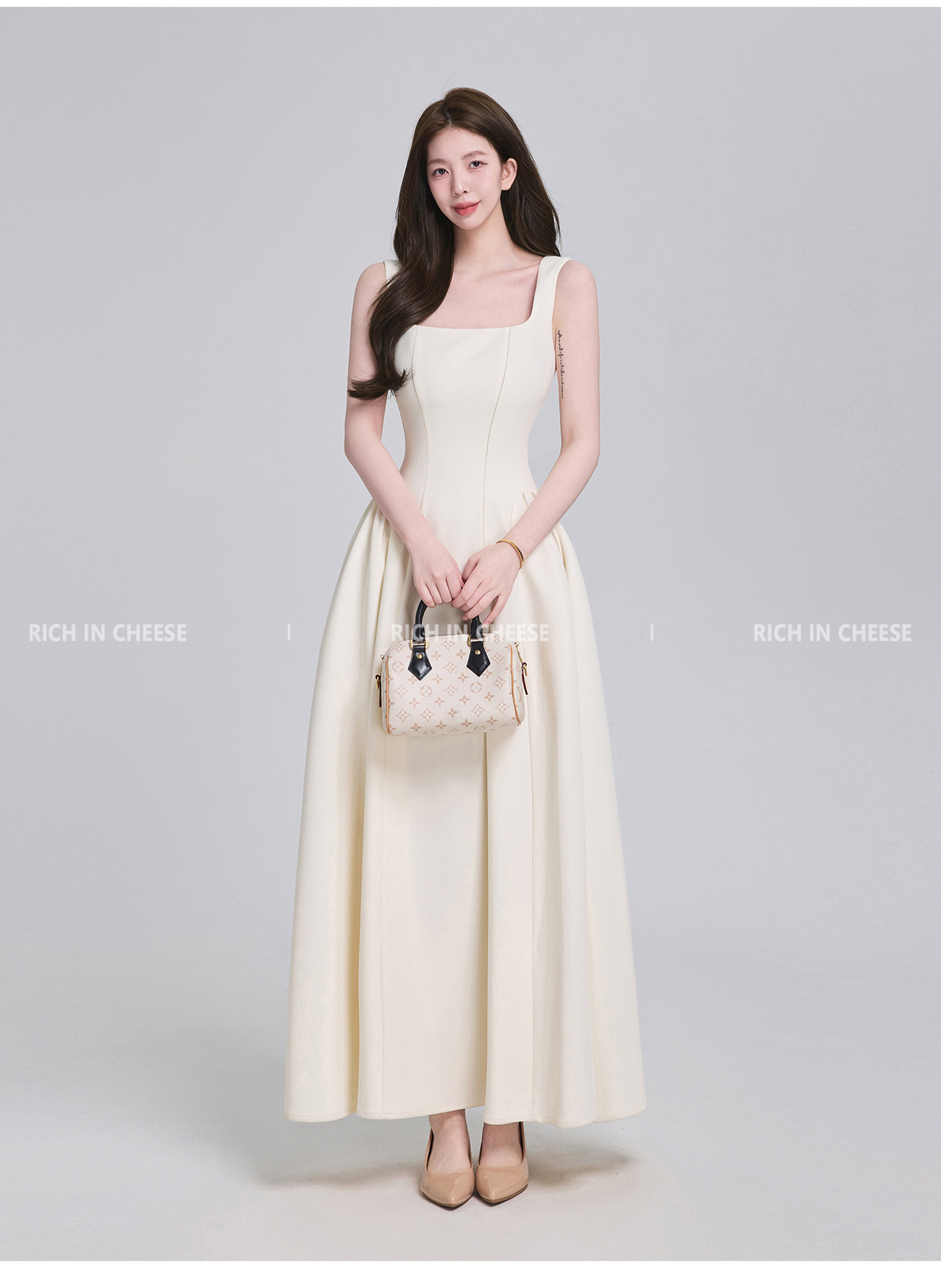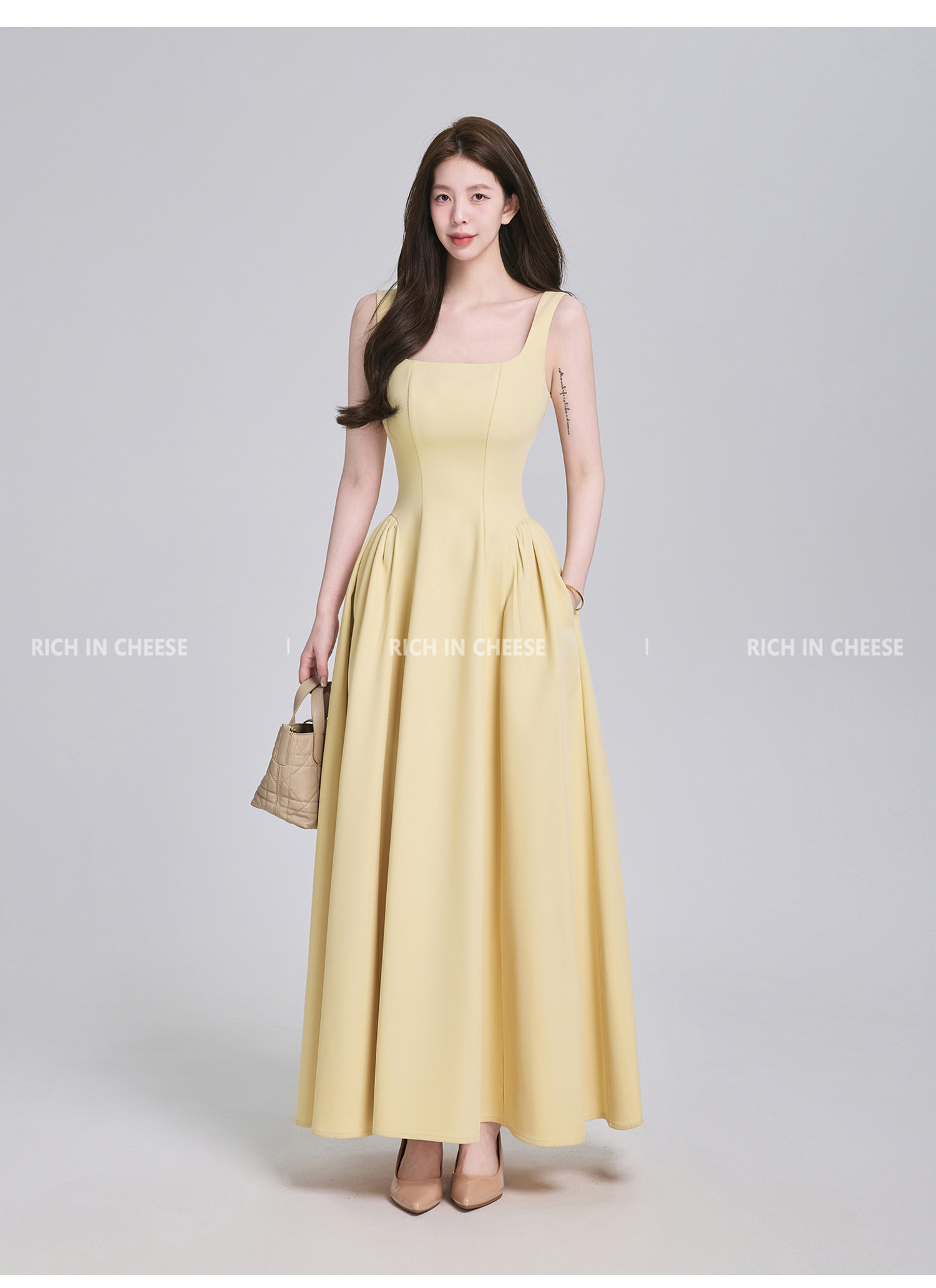 Shuhulei Gao Zhi Qianjin [Series Collection] French-Style Spaghetti Strap Summer Design Waist-Cinching Dress