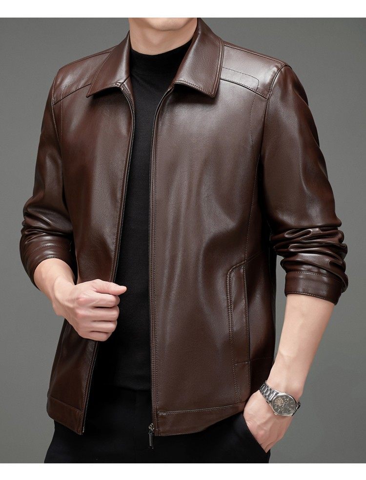 Hengyuanxiang Genuine Leather Jacket for Men, Spring and Autumn Style, Middle-Aged and Elderly Men's Casual Outwear, Haining Sheepskin Jacket for Men