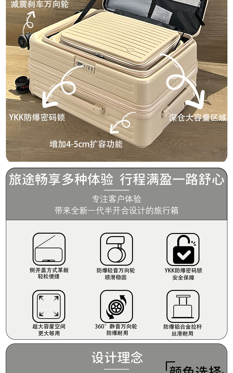 Extra-Large Capacity New Multifunctional Side-Opening Suitcase for Women 20inch Expandable Carry-On Suitcase for Men Trolley Suitcase Travel Suitcase