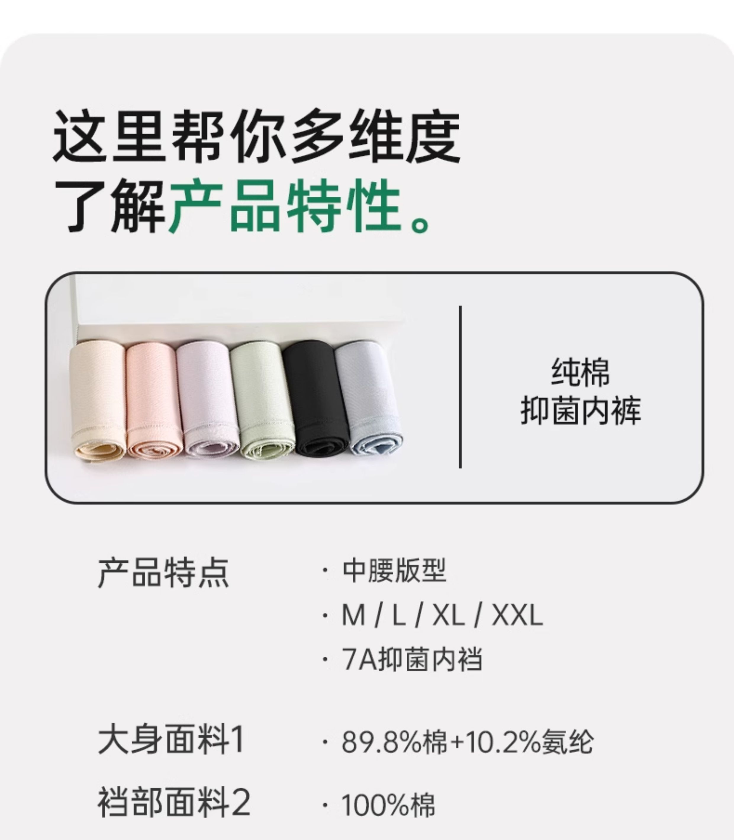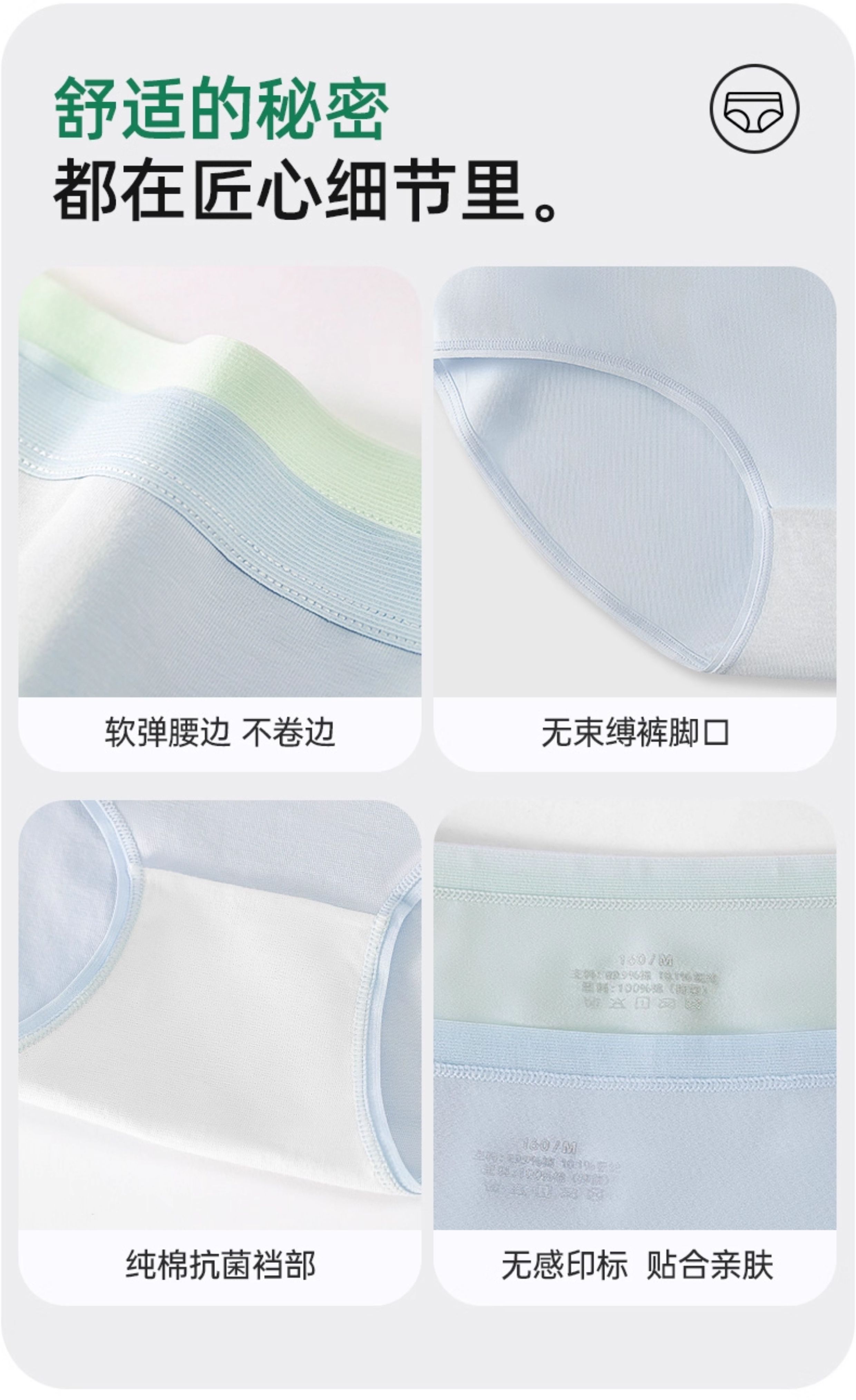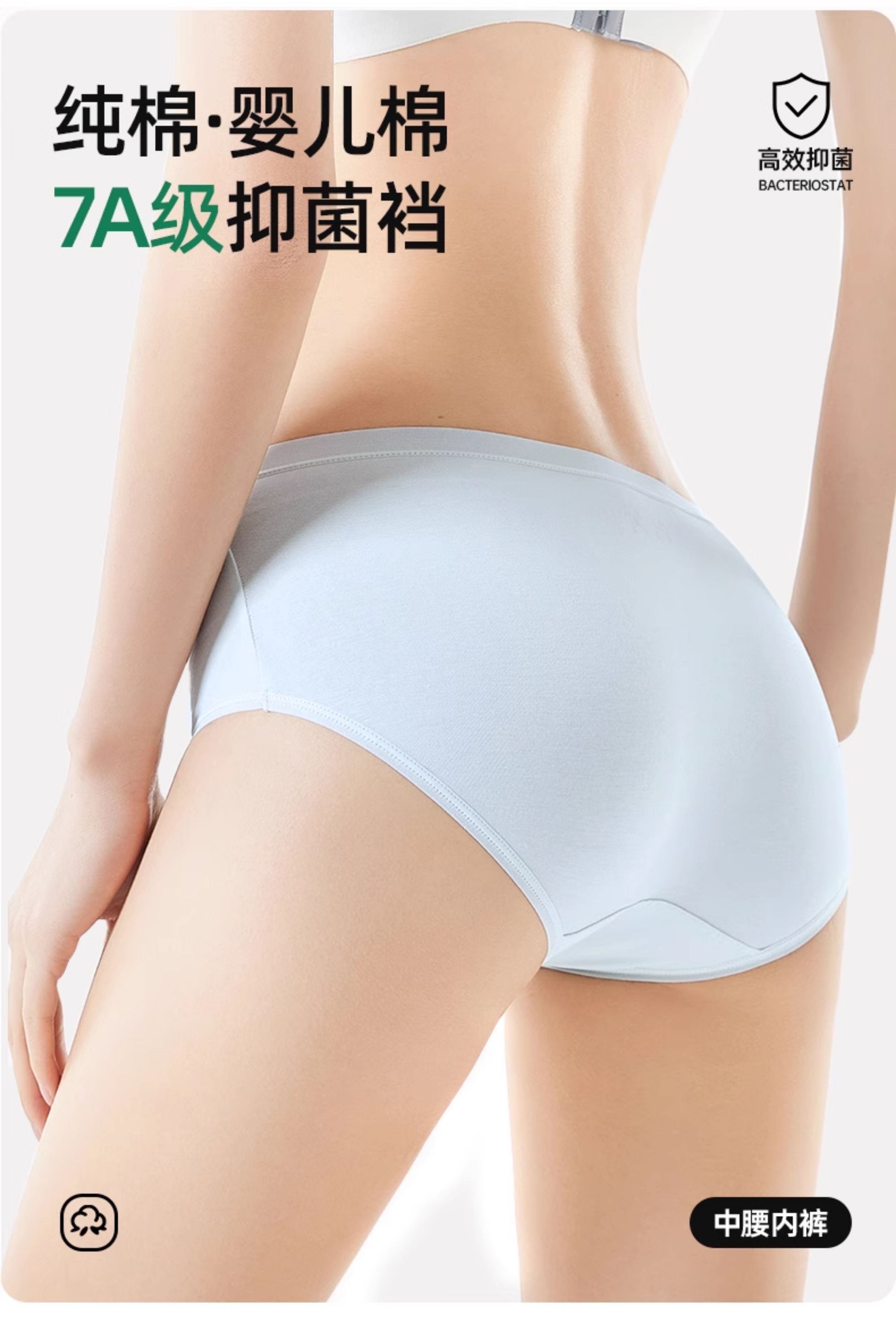 Ancient and Modern Women's Underwear, Pure Cotton 7A Grade Antibacterial, All-Cotton Class a Mid-Waist Shorts, Women's Briefs, 2025 New Model