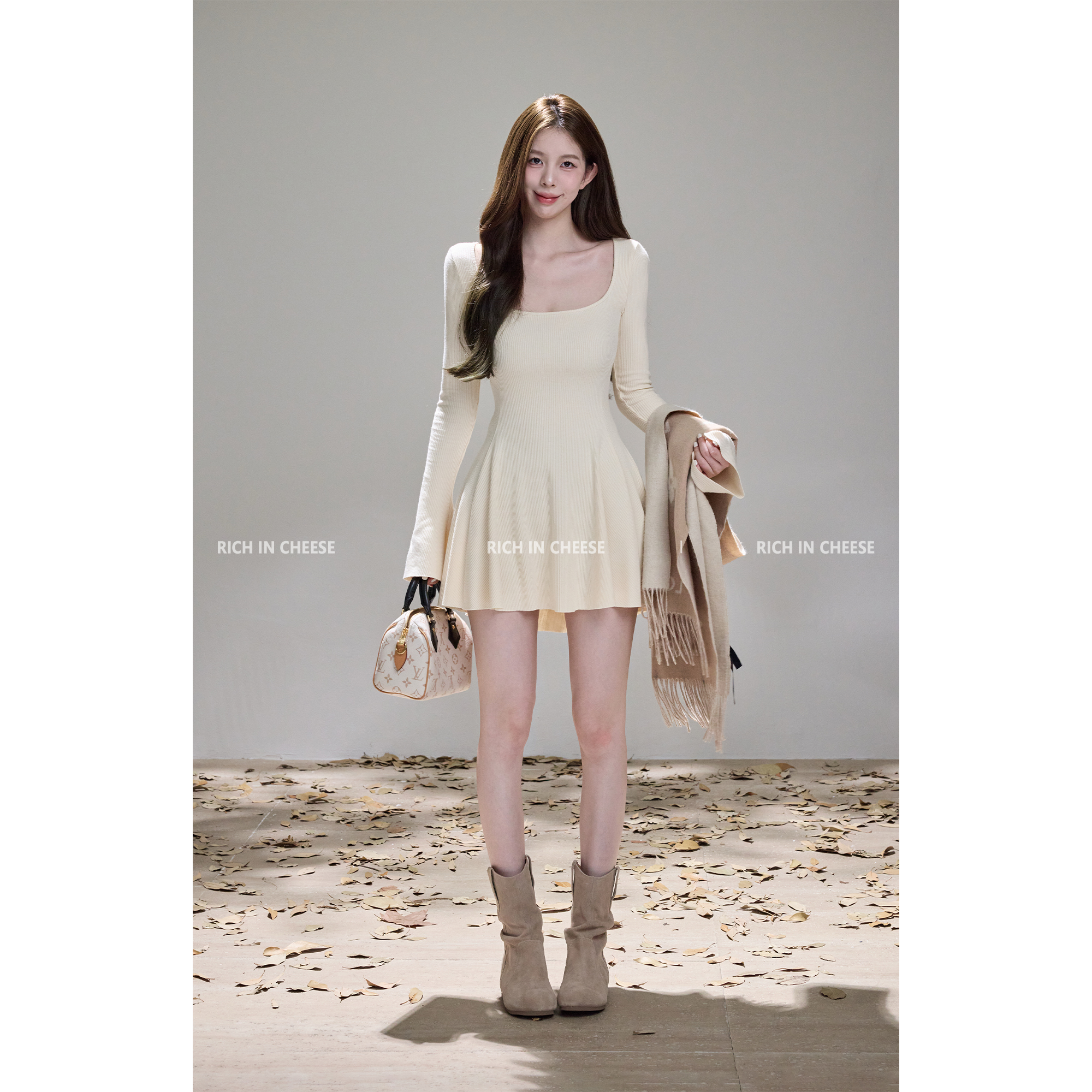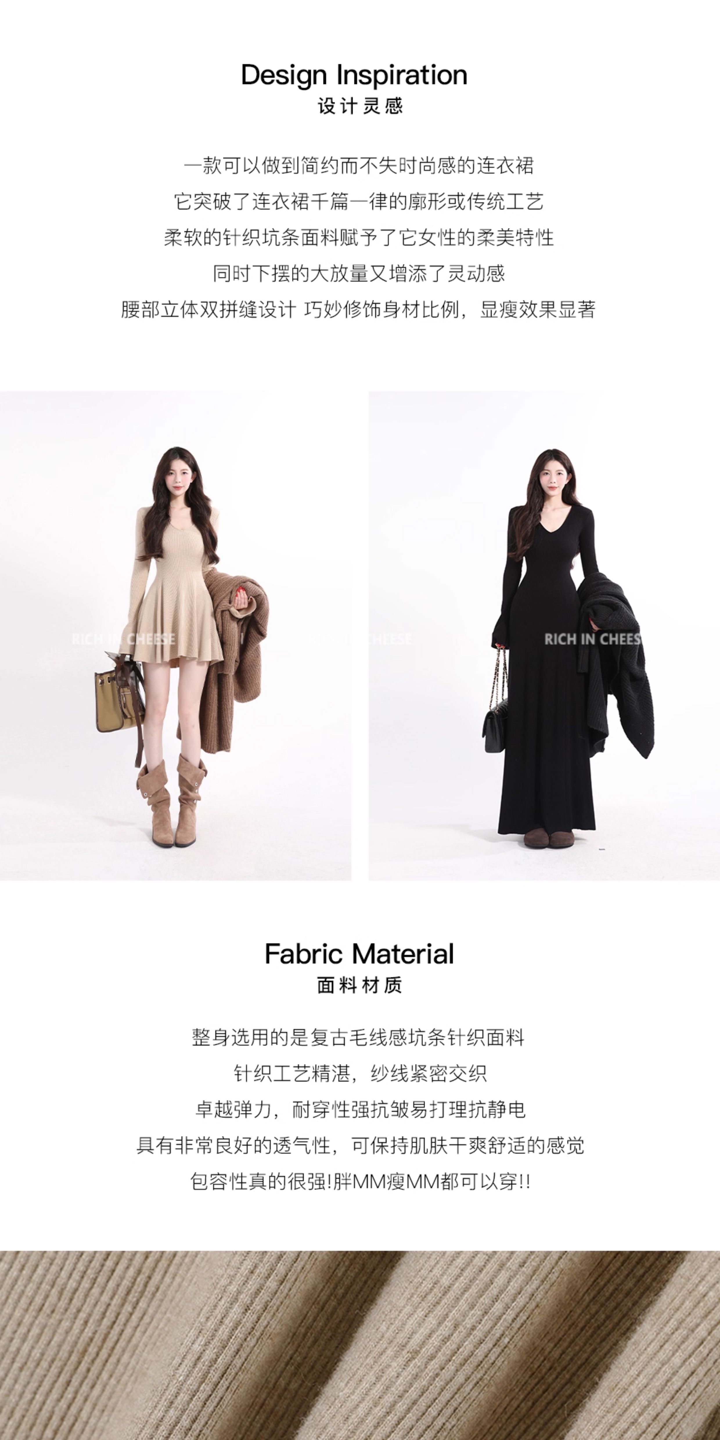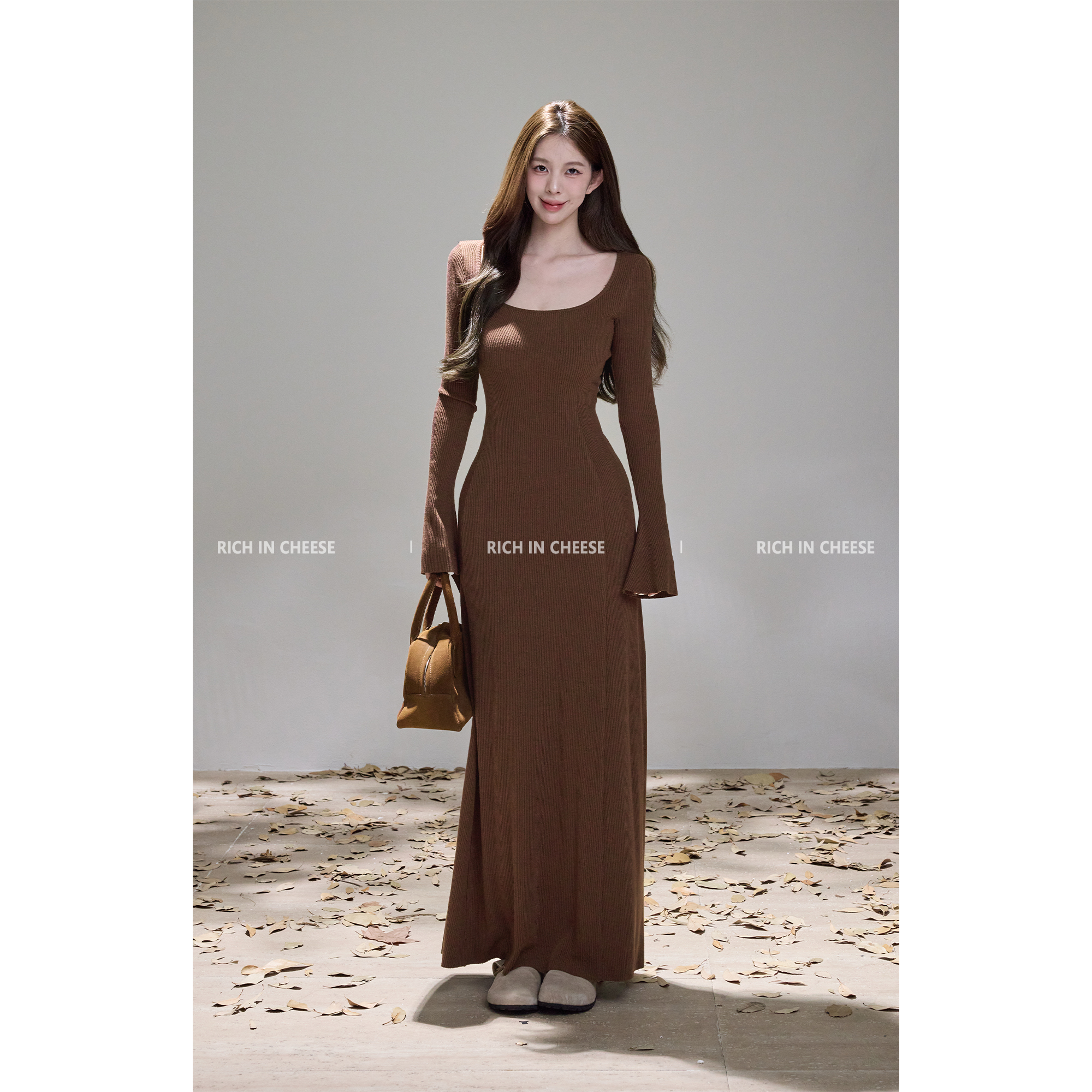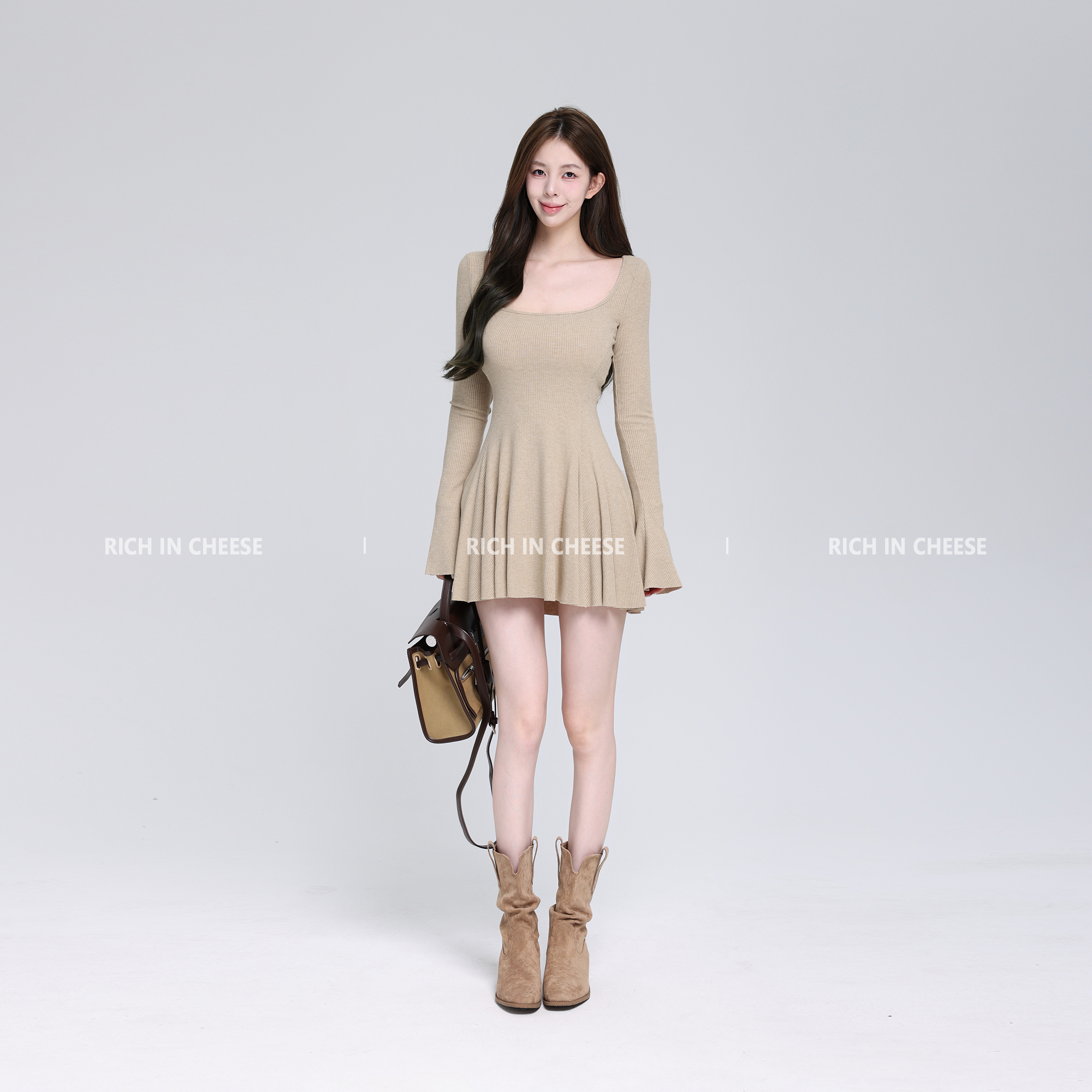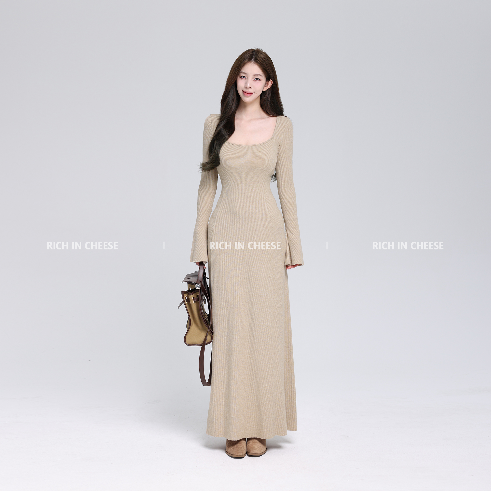 Shuhule Tea-Scented Croissant [Series Collection] Knitted Dress for Women, New Autumn Slim-Fit Dress