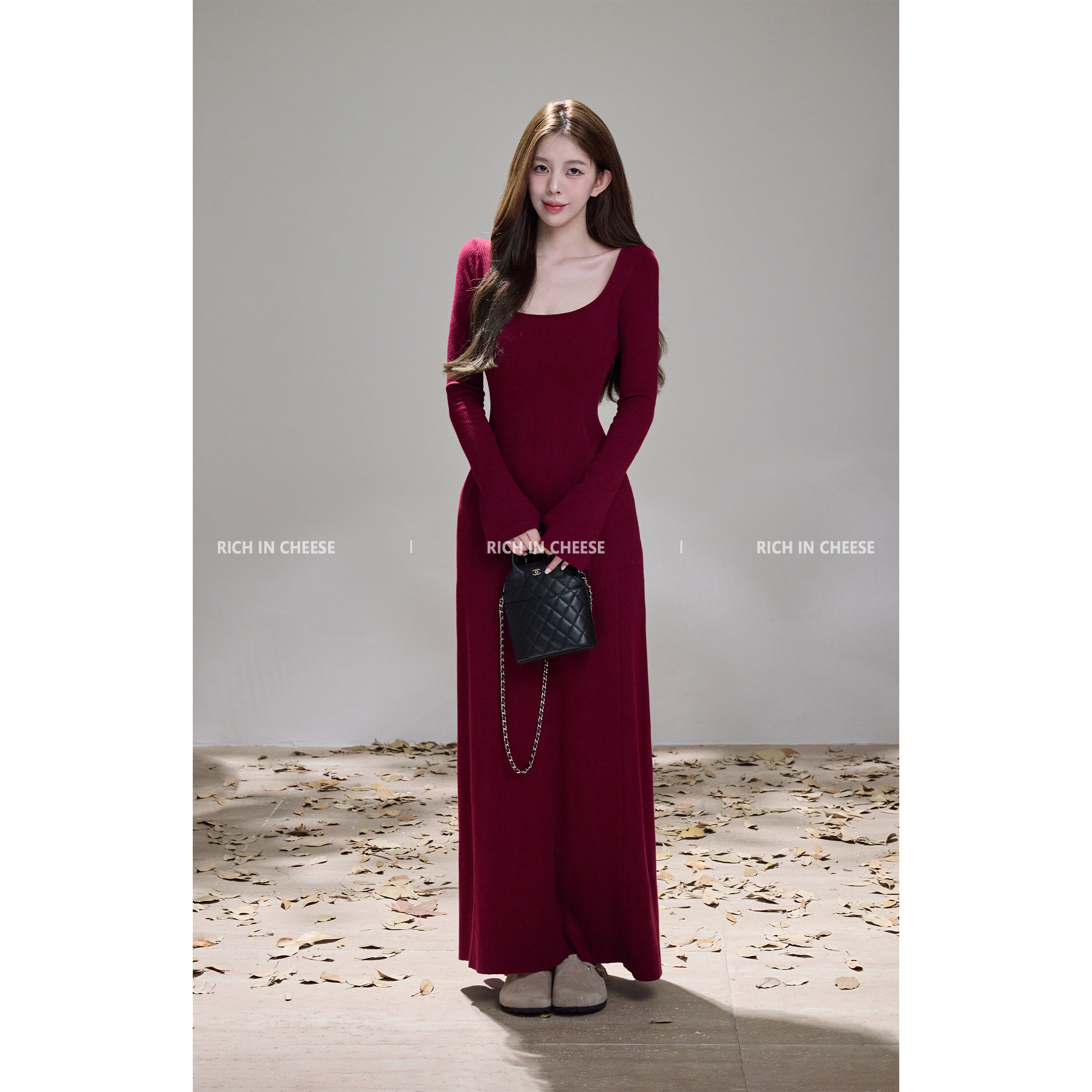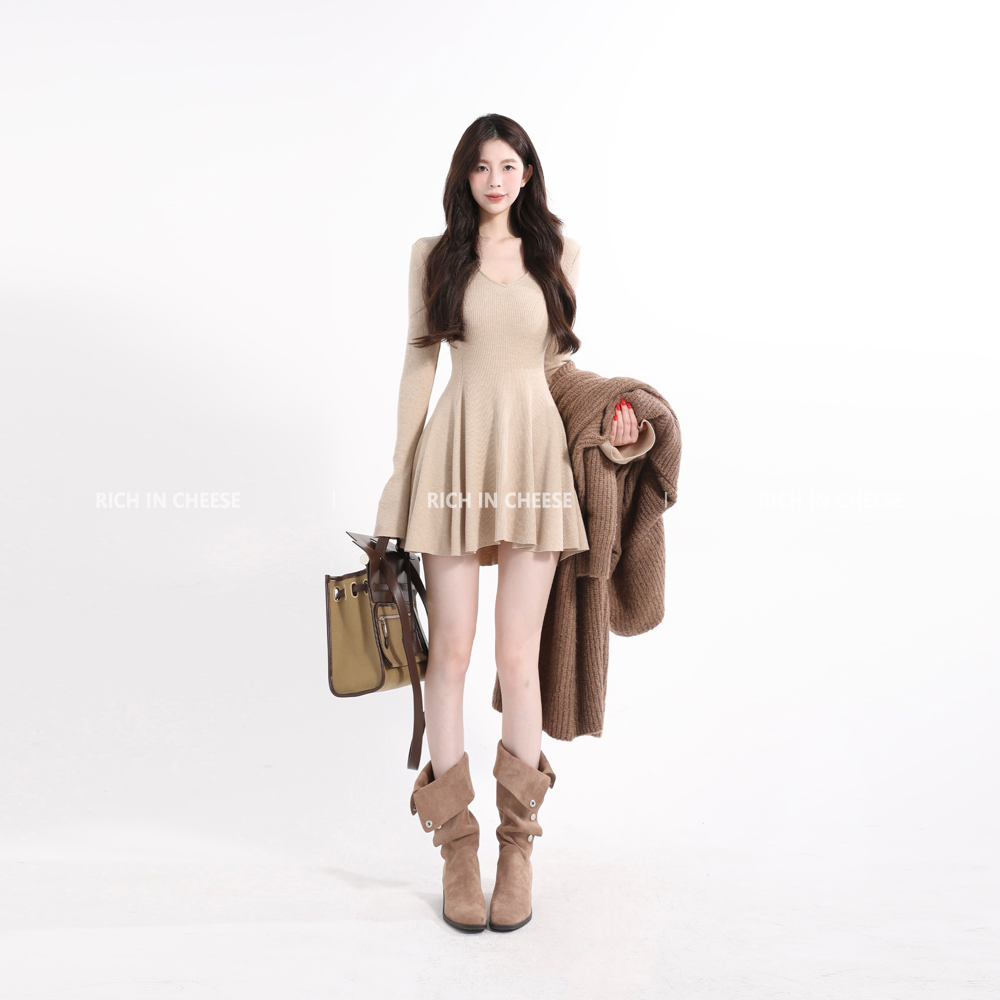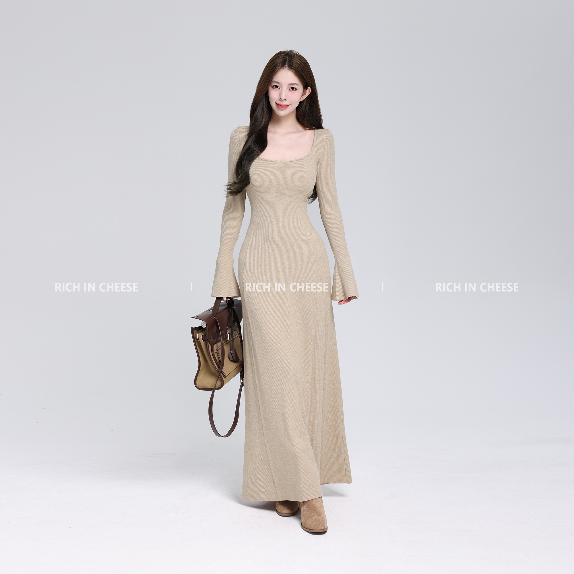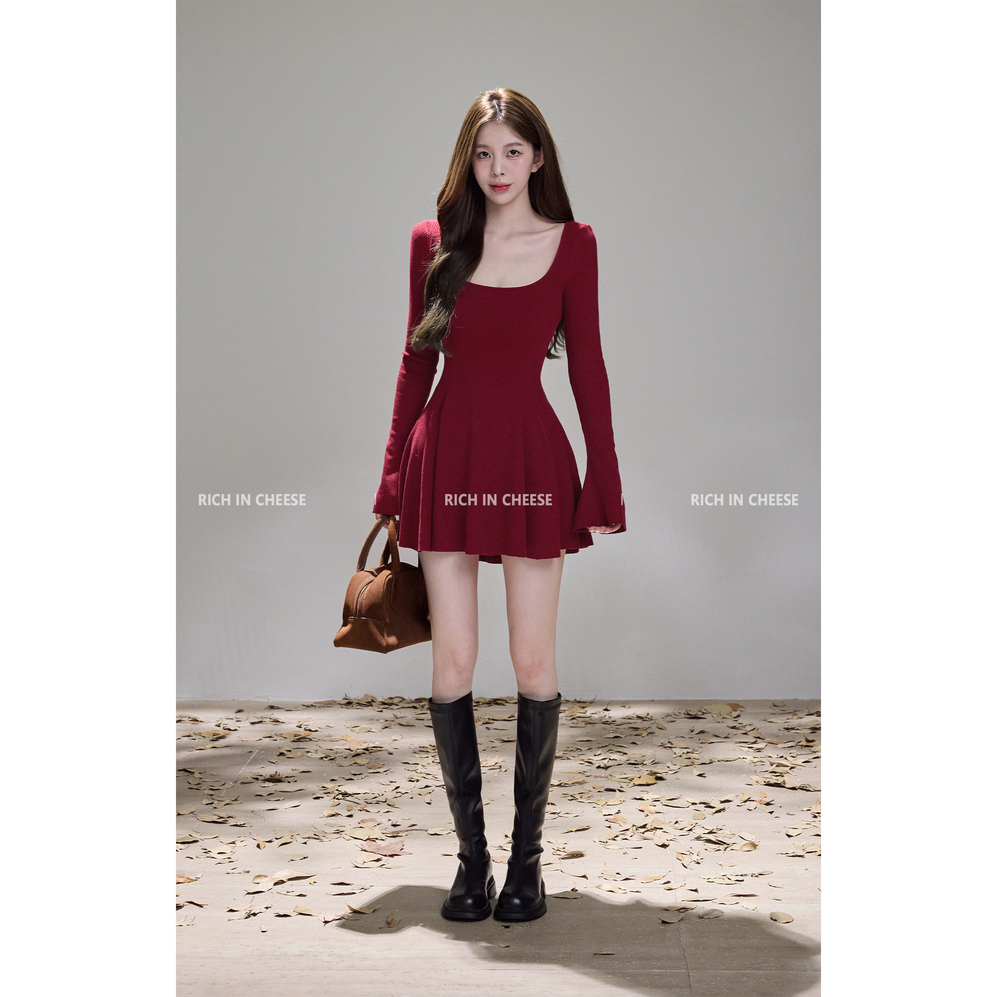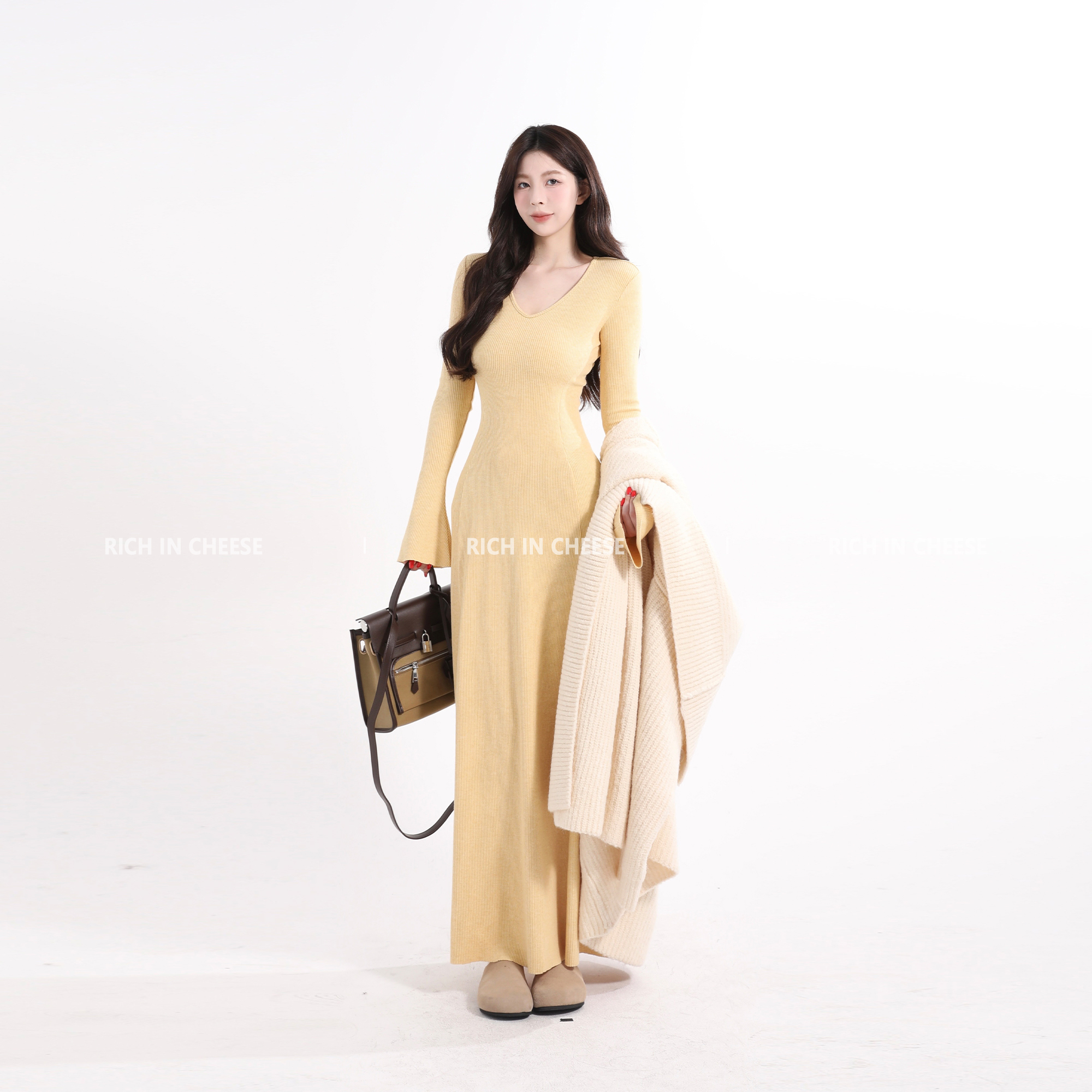 Shuhule Tea-Scented Croissant [Series Collection] Knitted Dress for Women, New Autumn Slim-Fit Dress