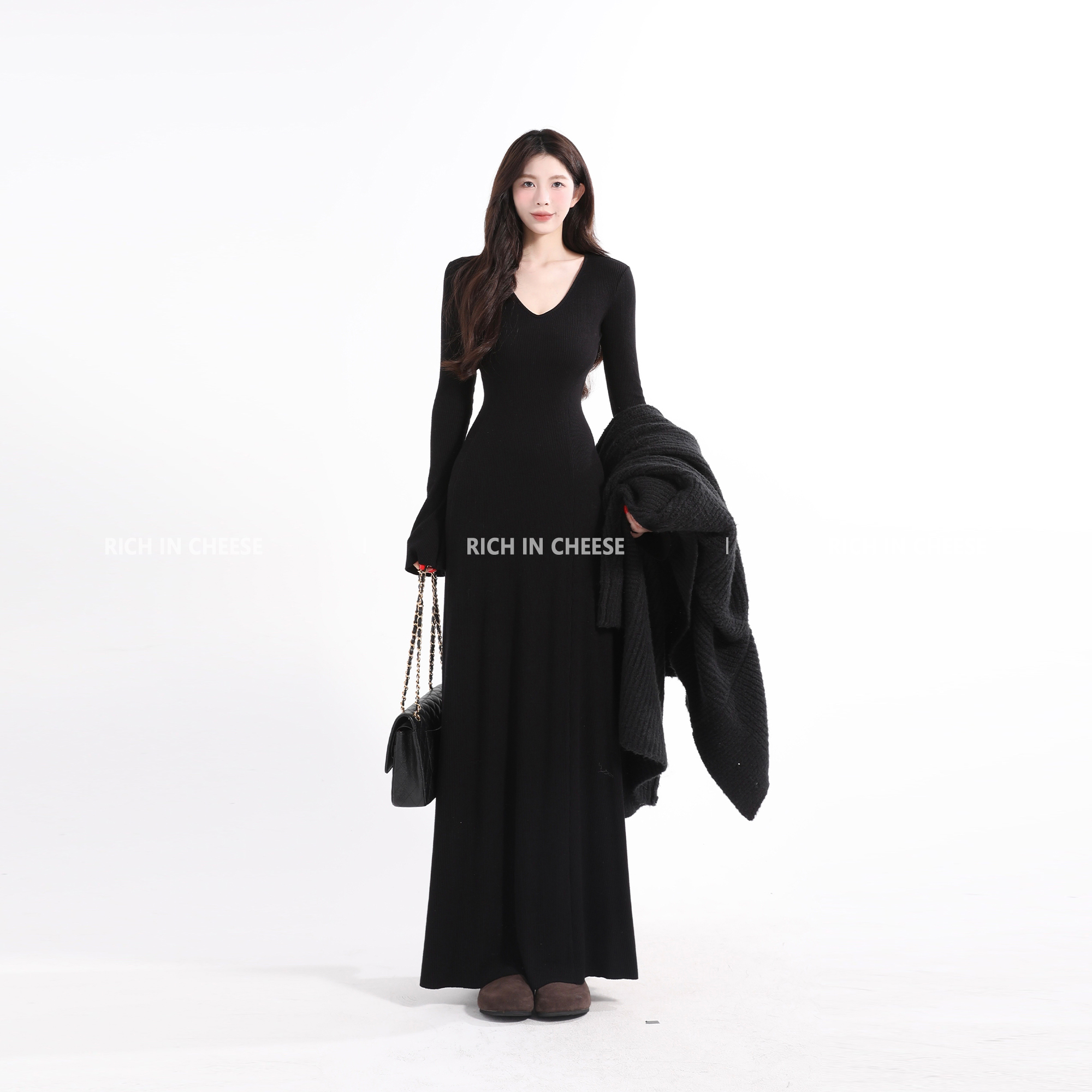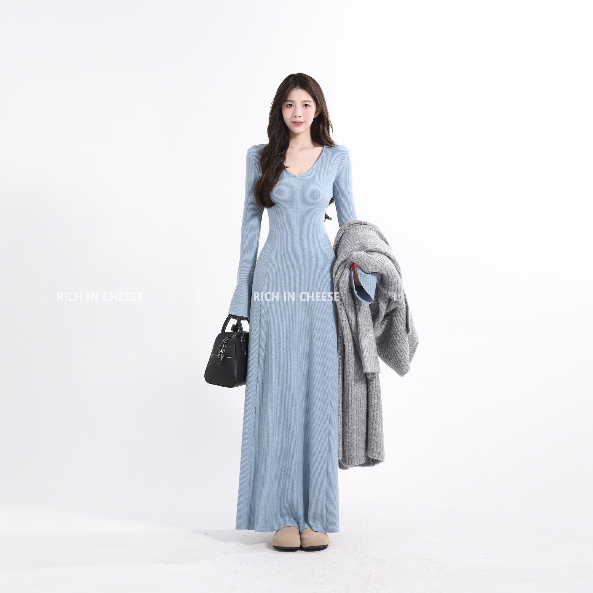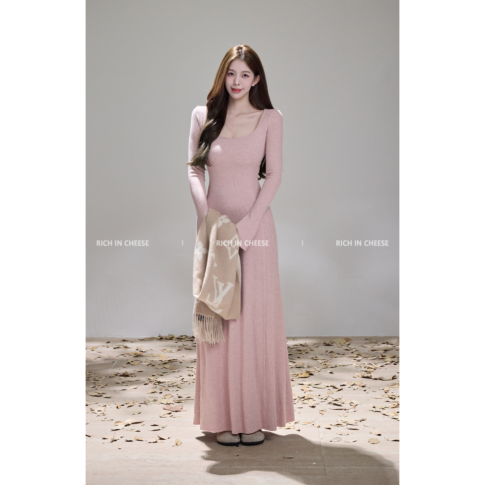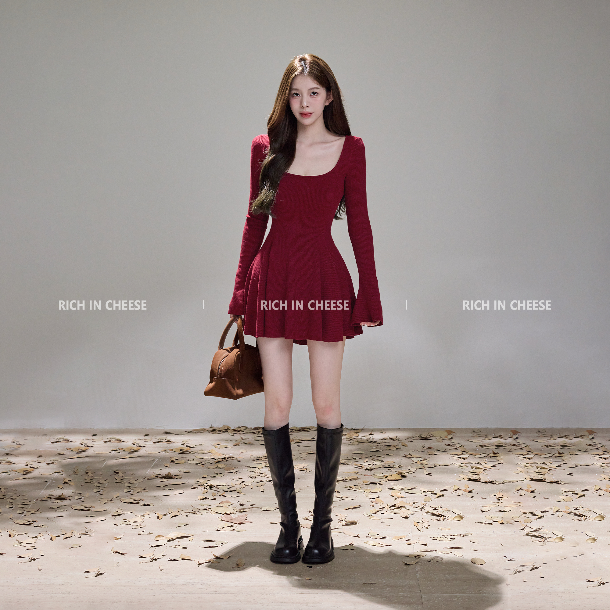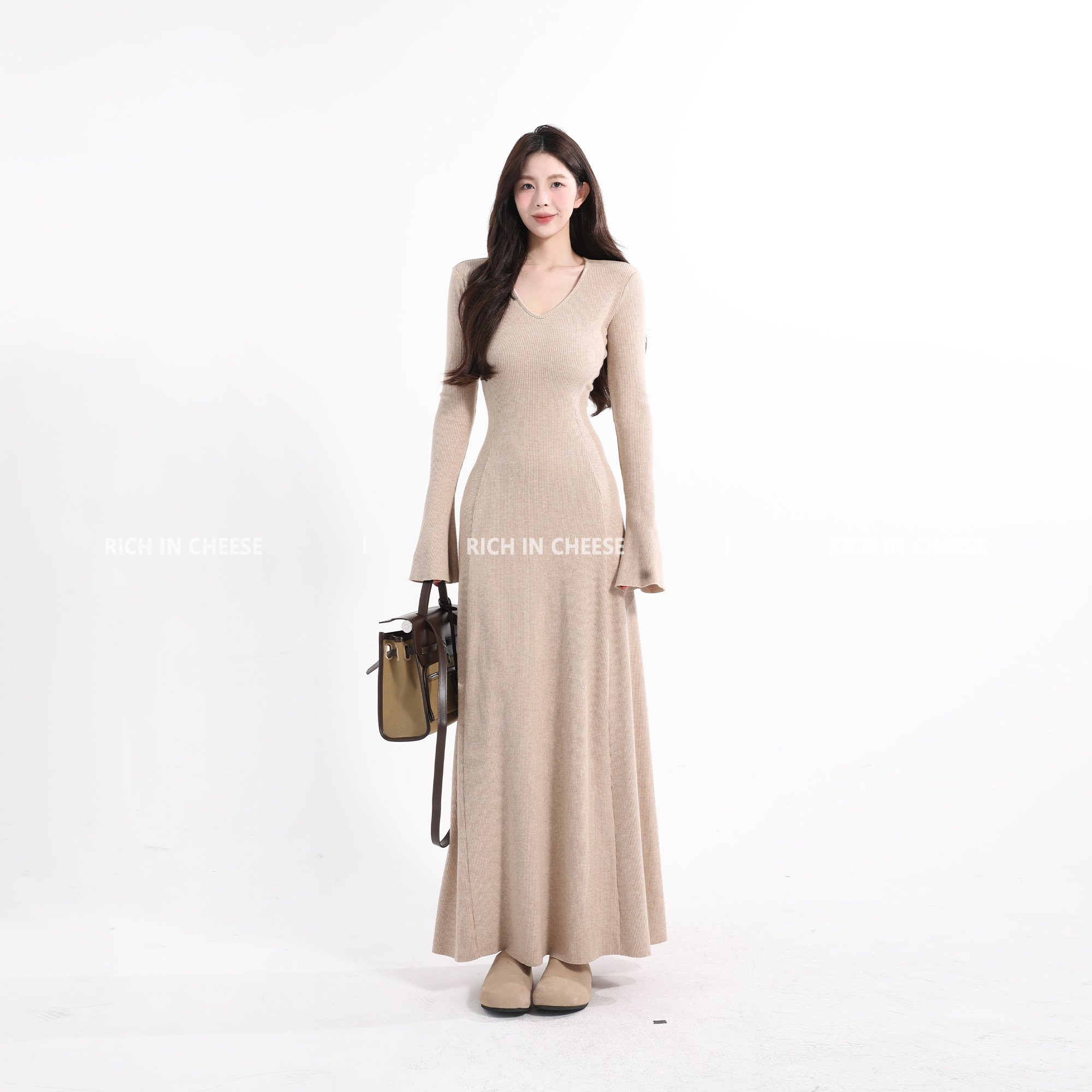 Shuhule Tea-Scented Croissant [Series Collection] Knitted Dress for Women, New Autumn Slim-Fit Dress