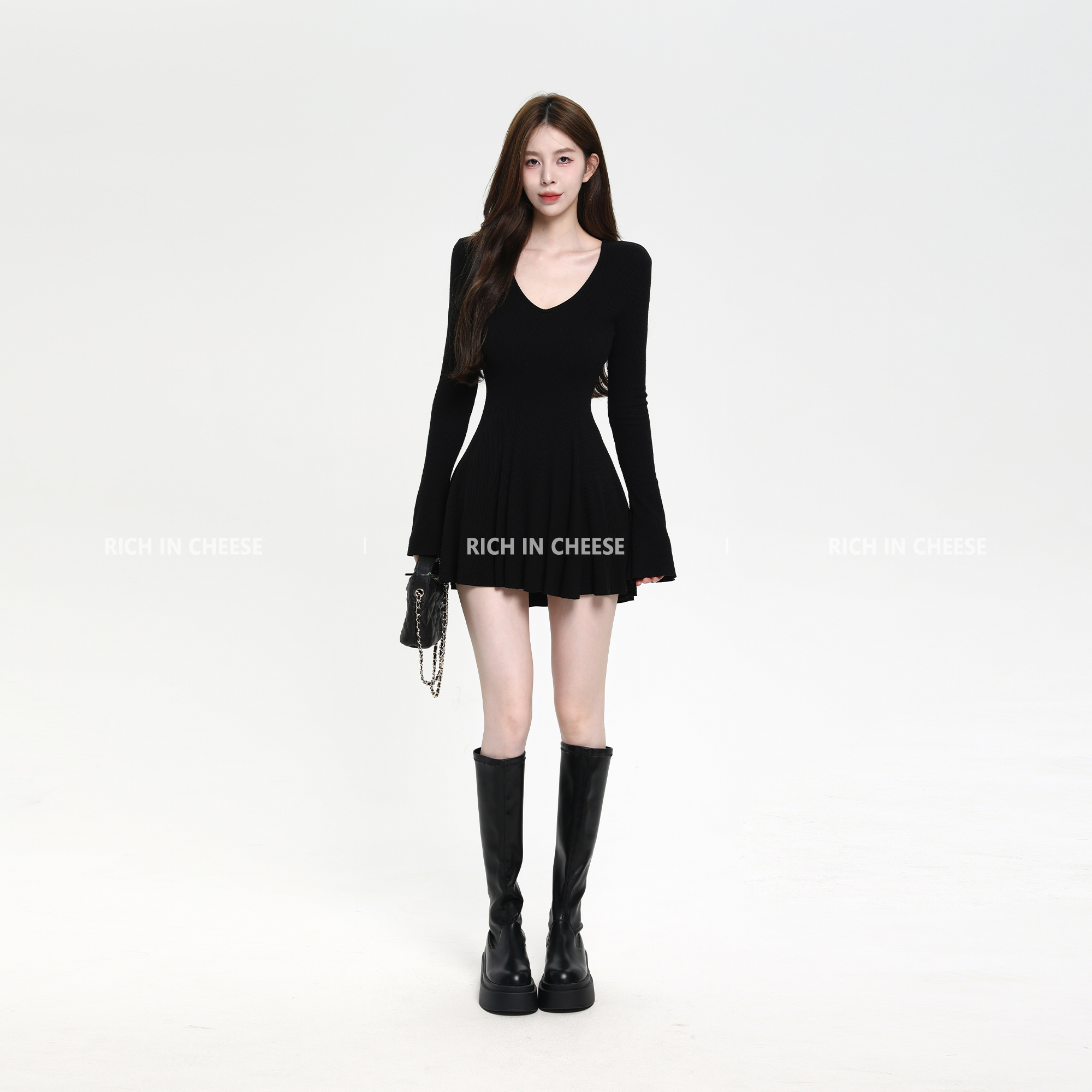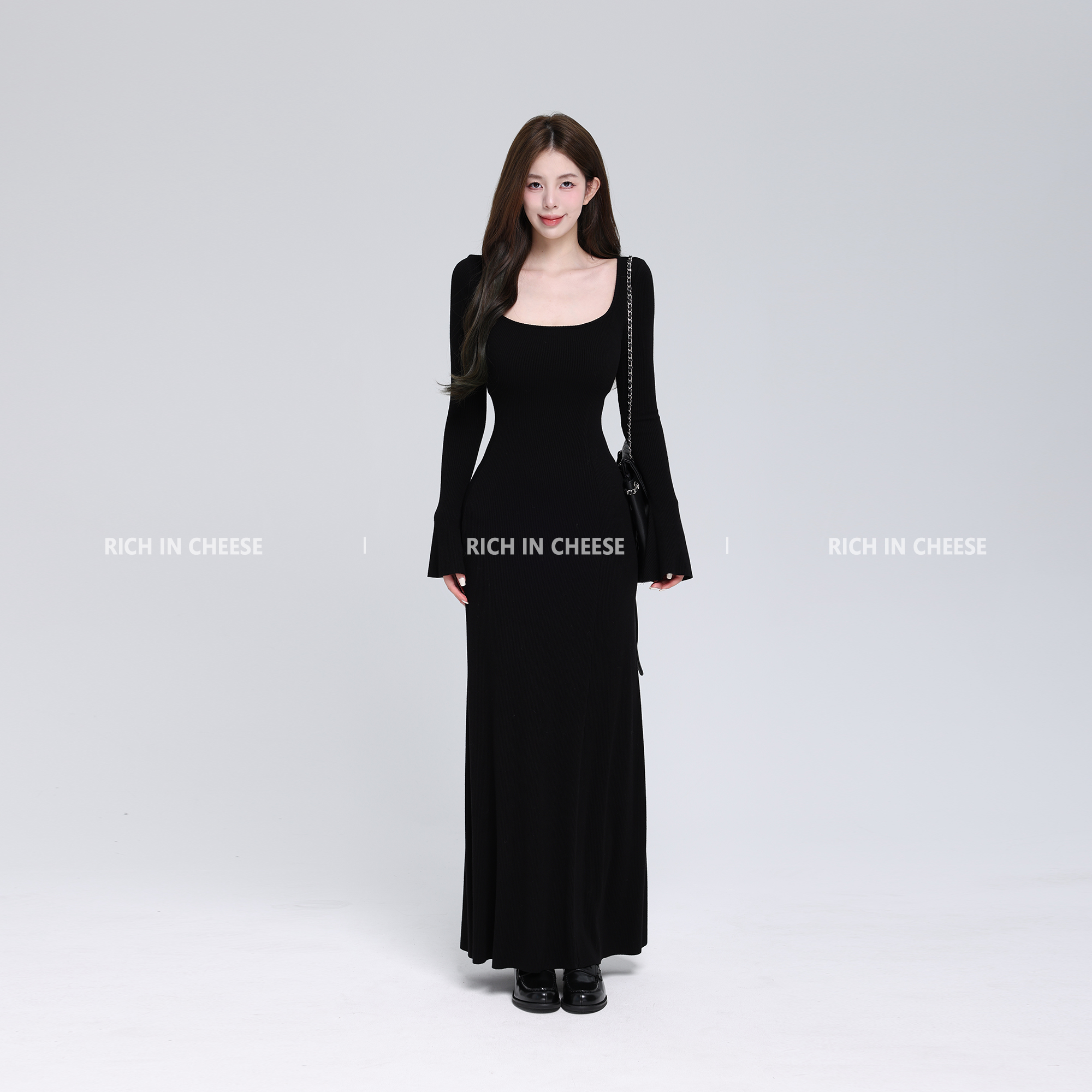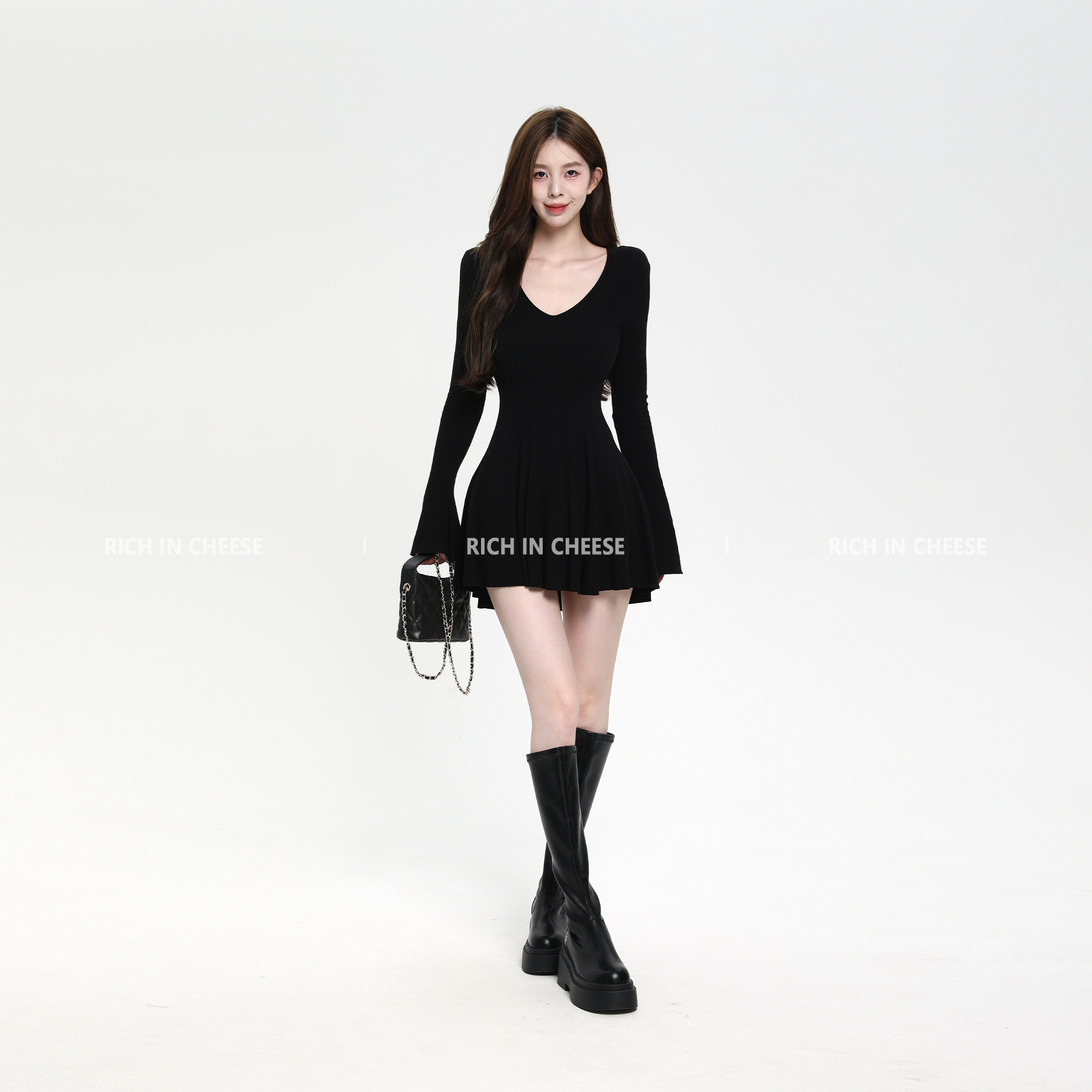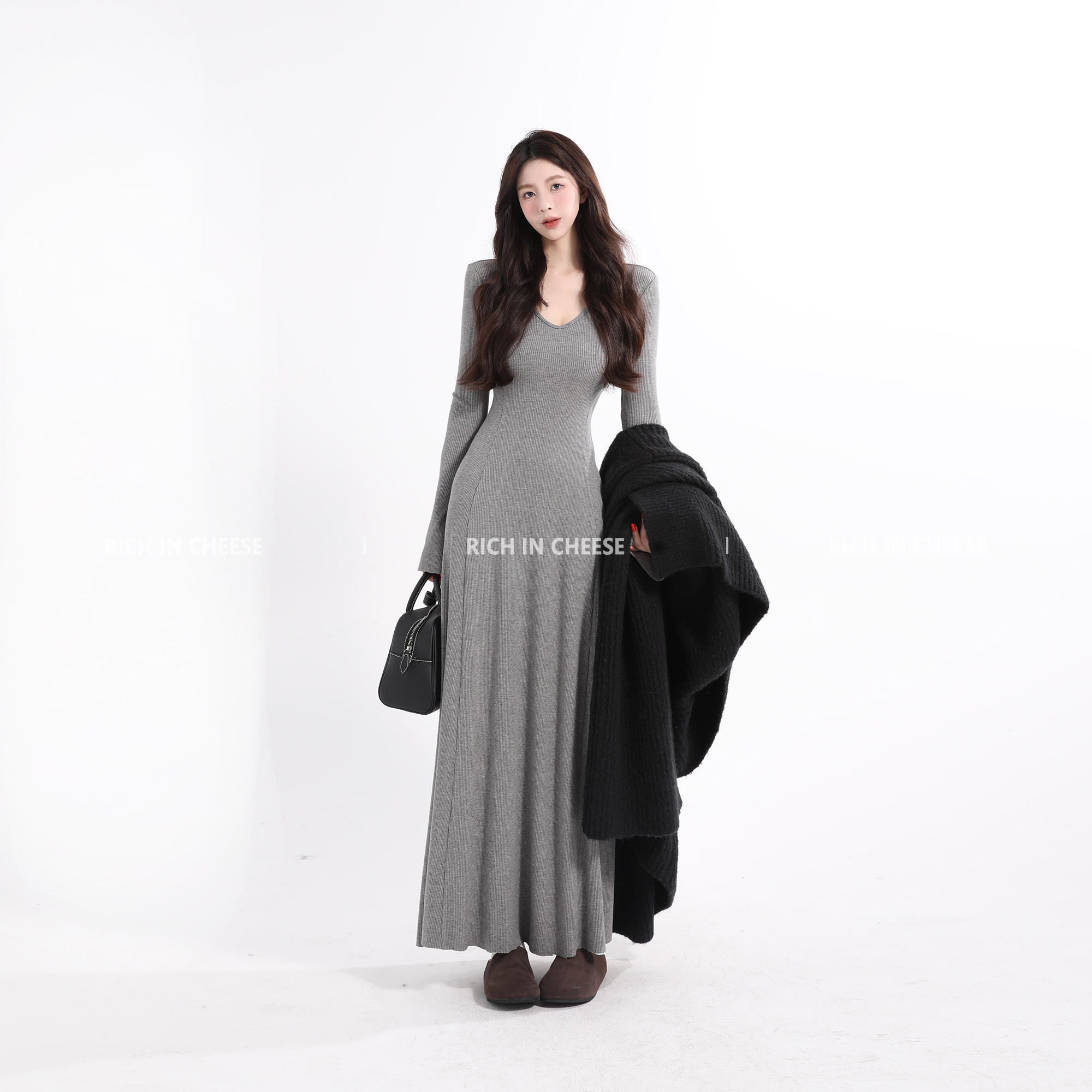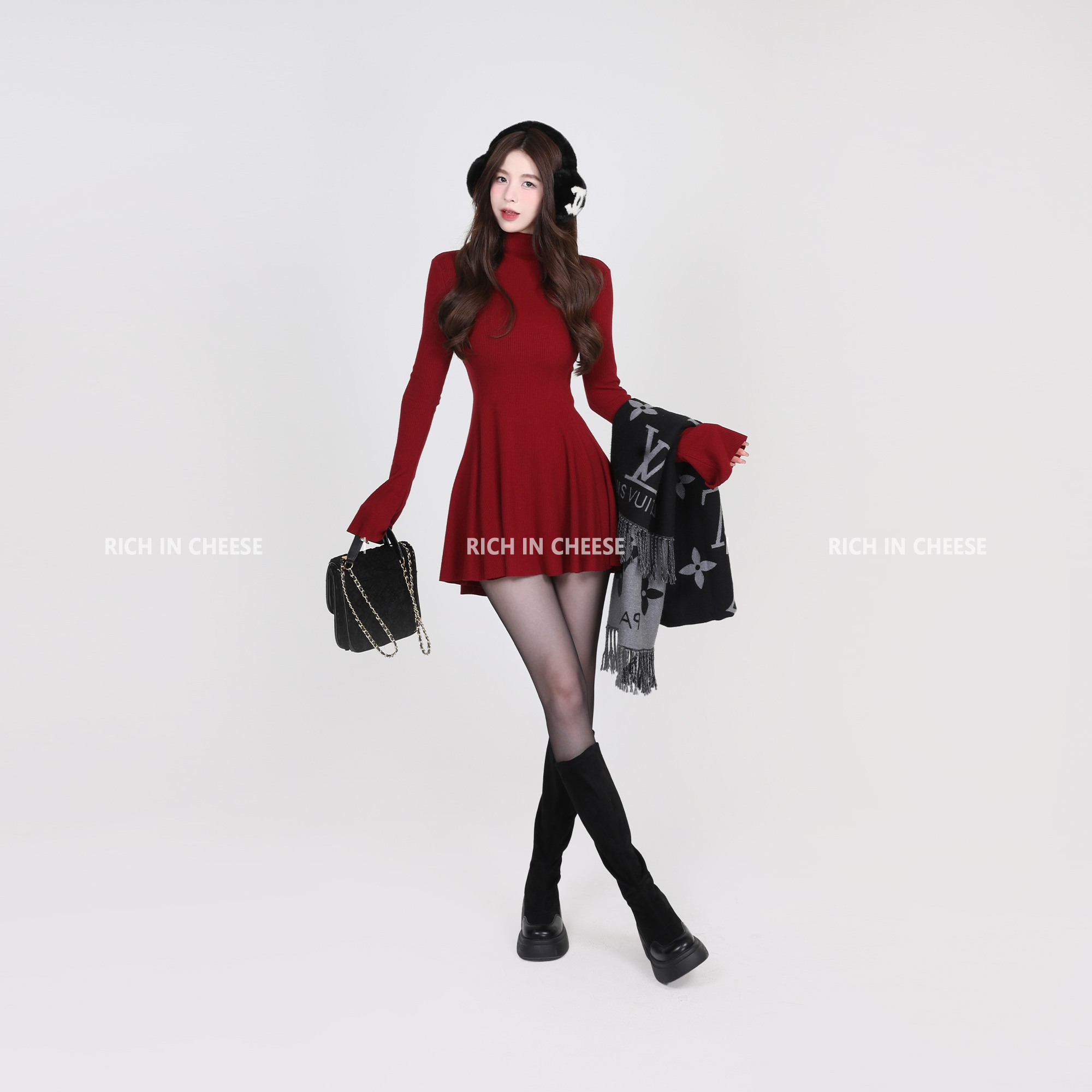 Shuhule Tea-Scented Croissant [Series Collection] Knitted Dress for Women, New Autumn Slim-Fit Dress