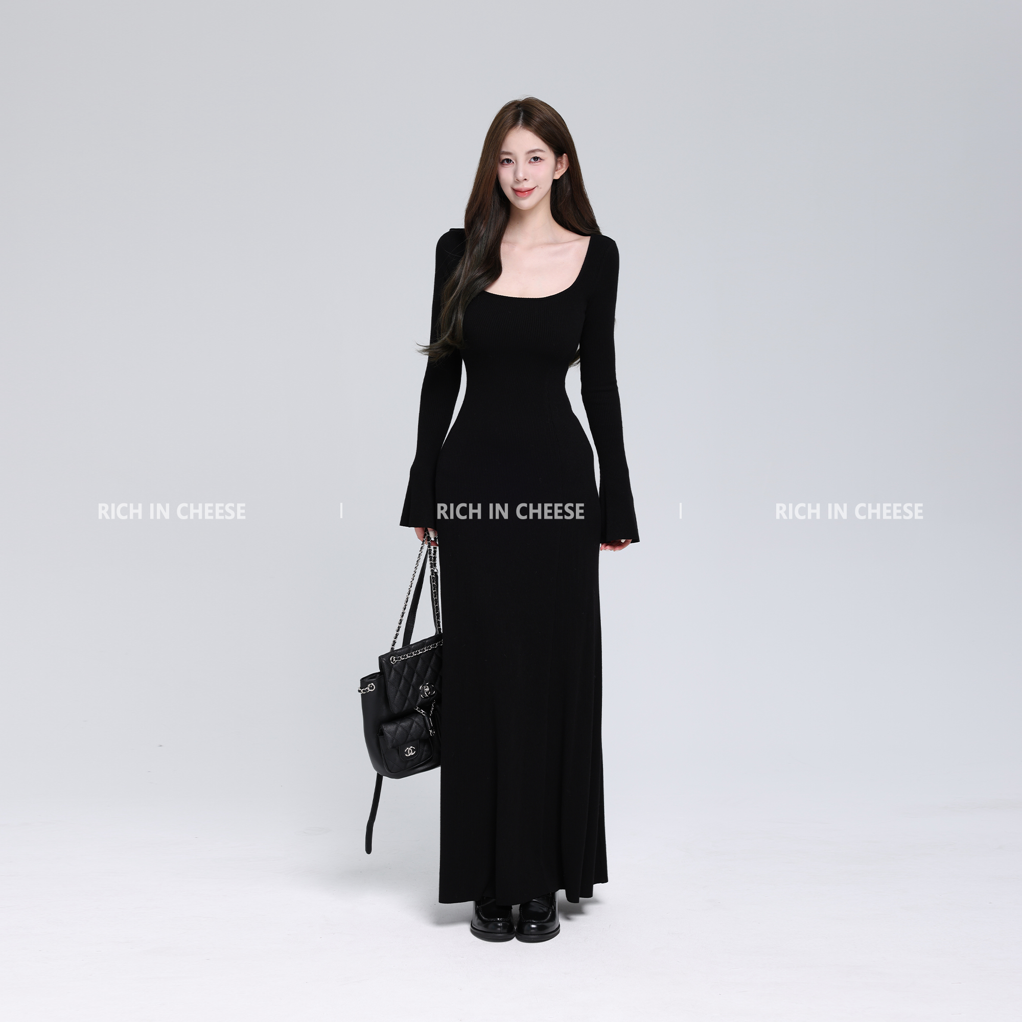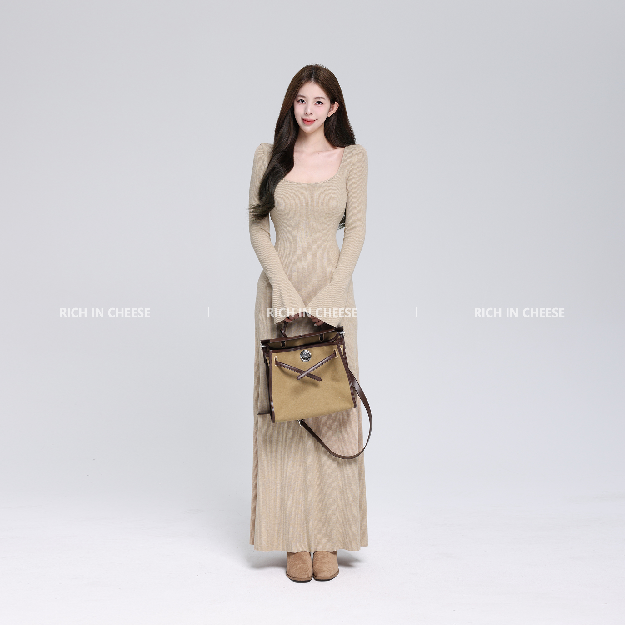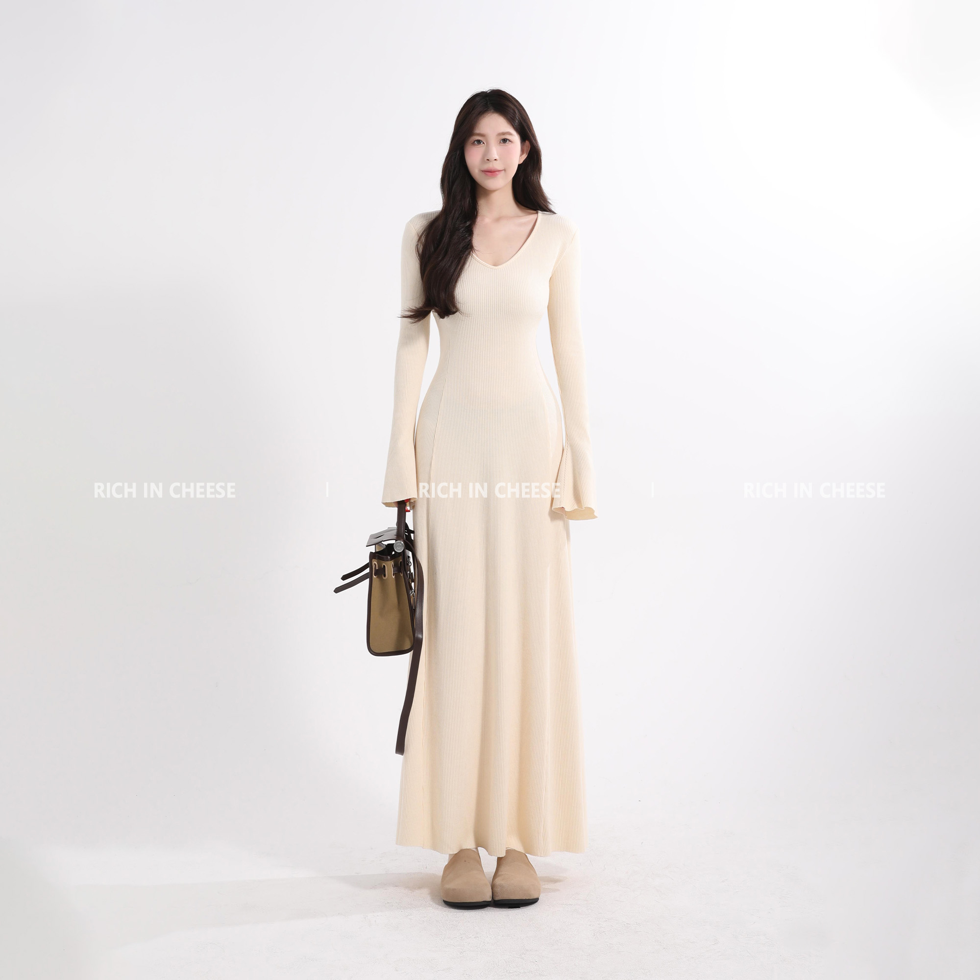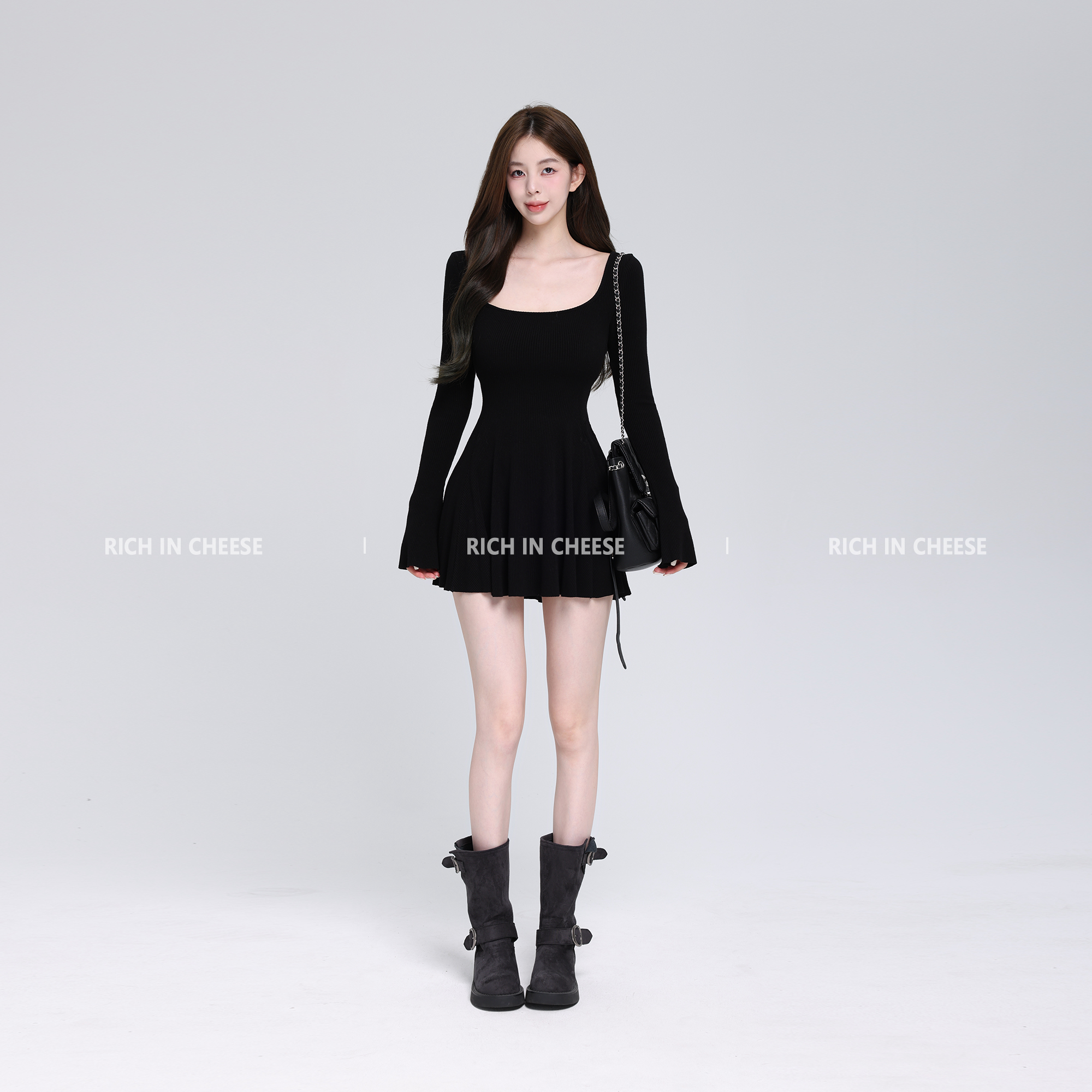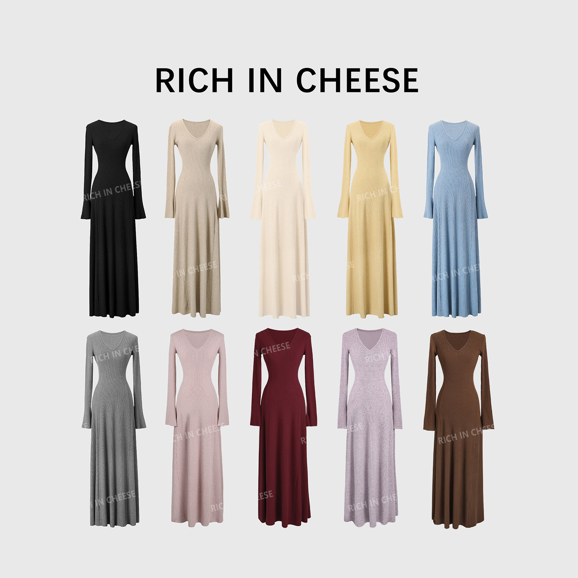 Shuhule Tea-Scented Croissant [Series Collection] Knitted Dress for Women, New Autumn Slim-Fit Dress