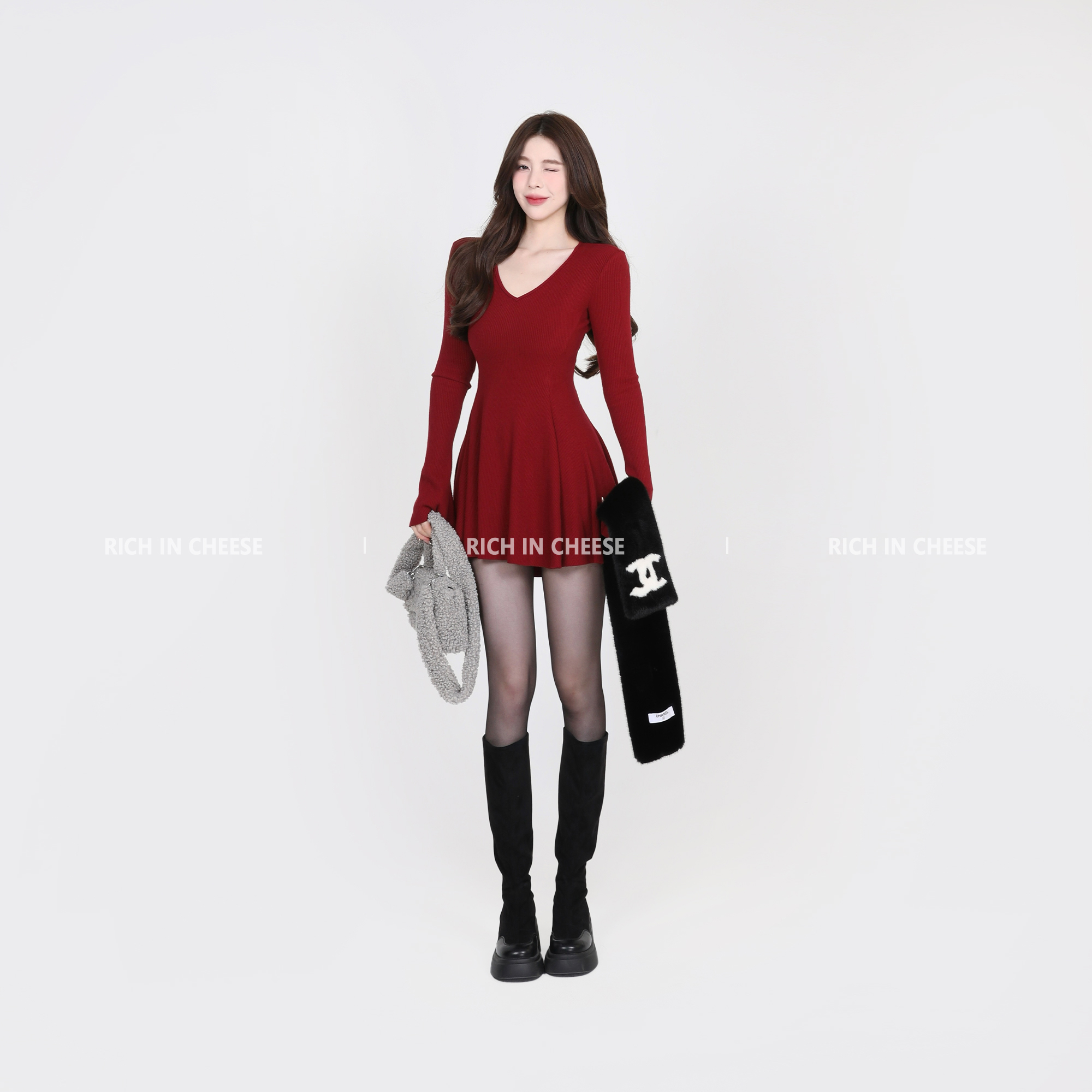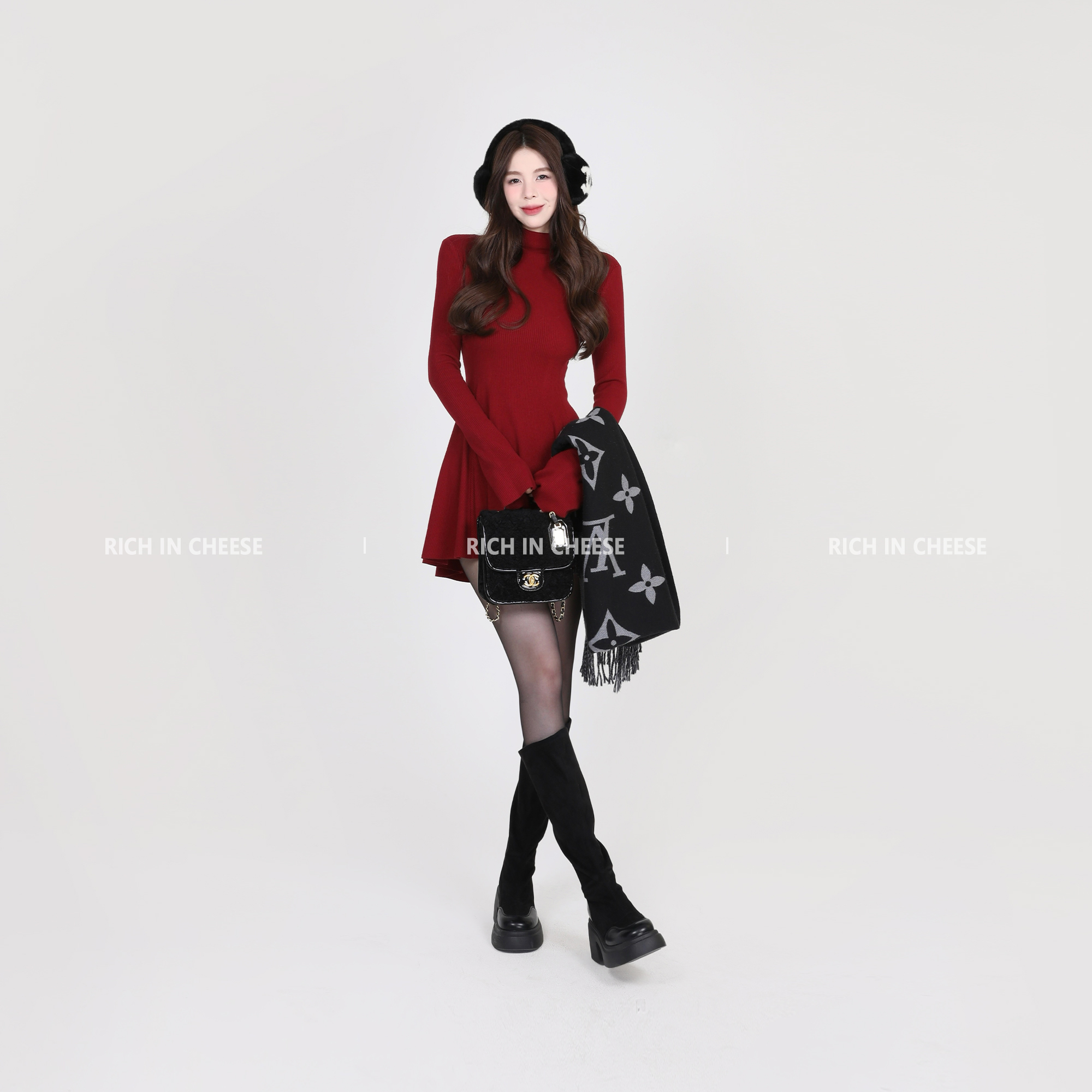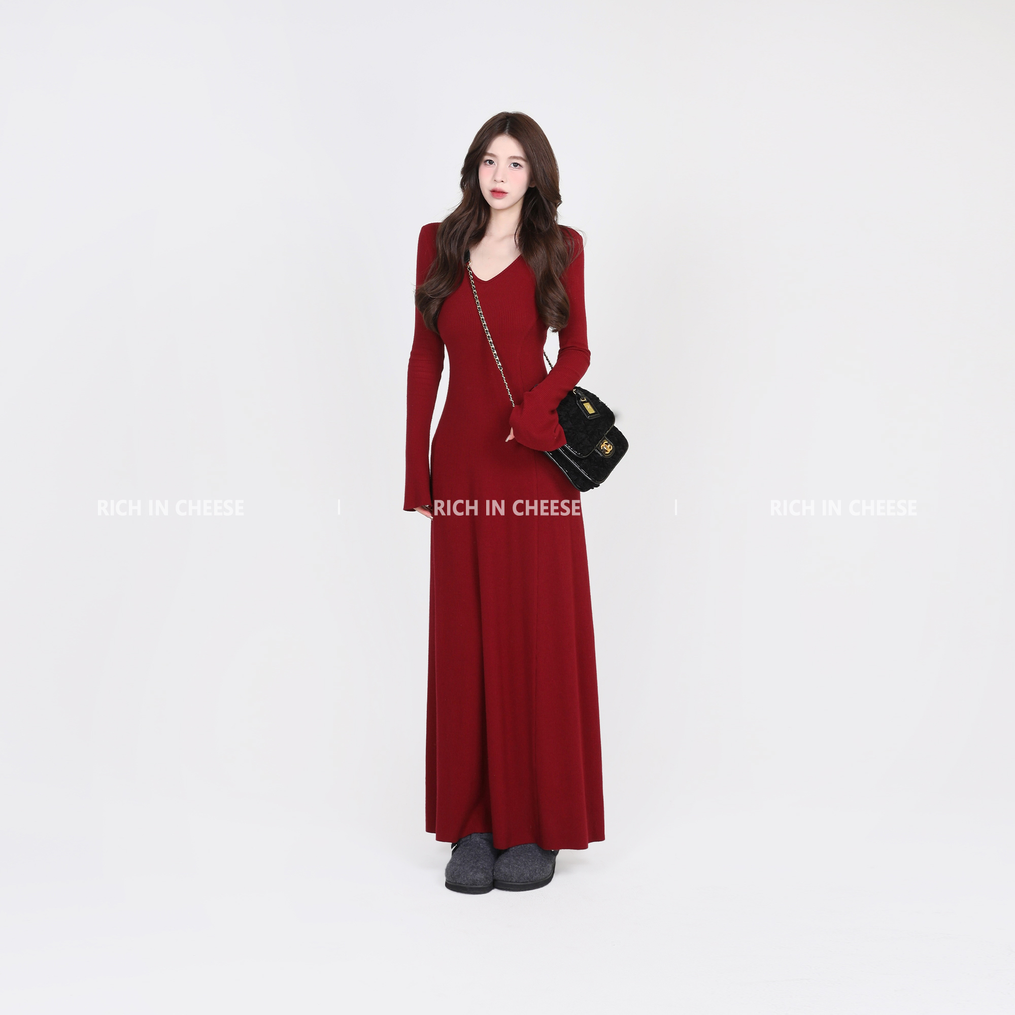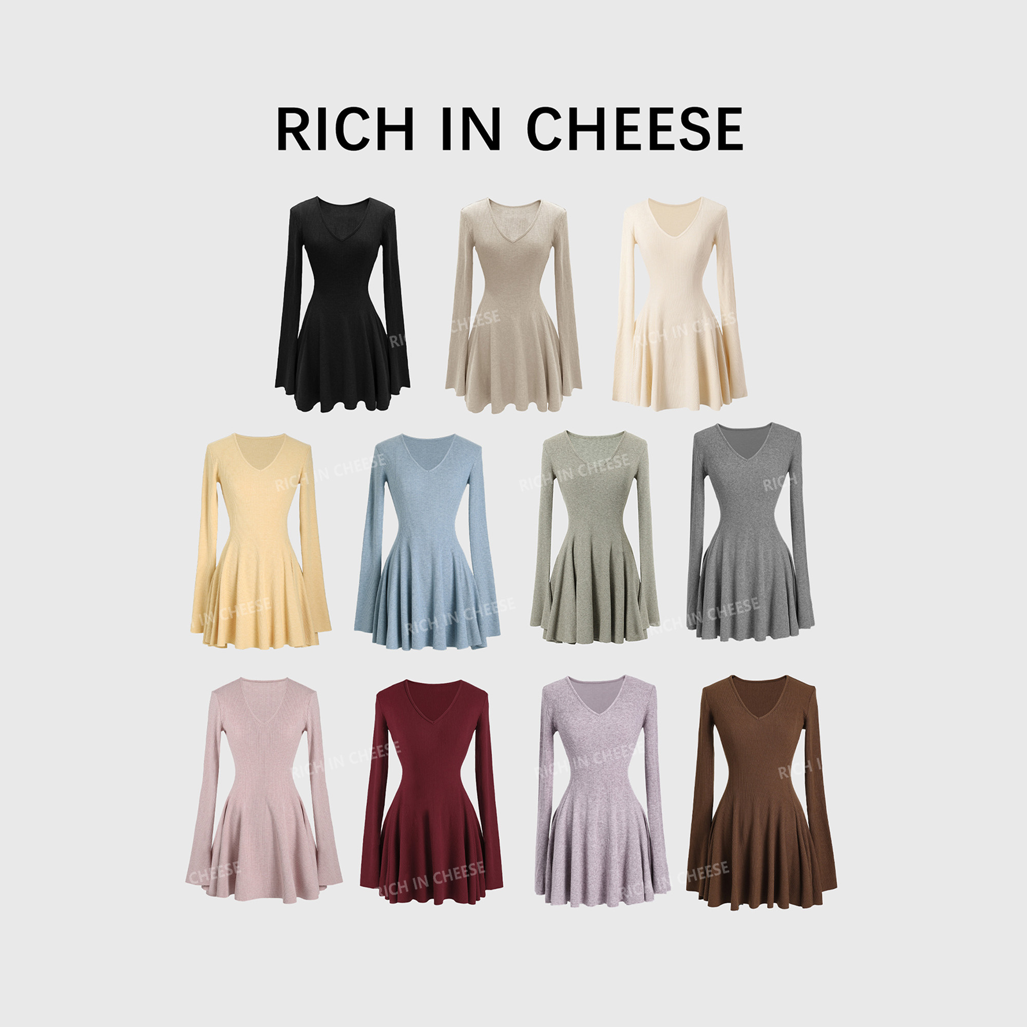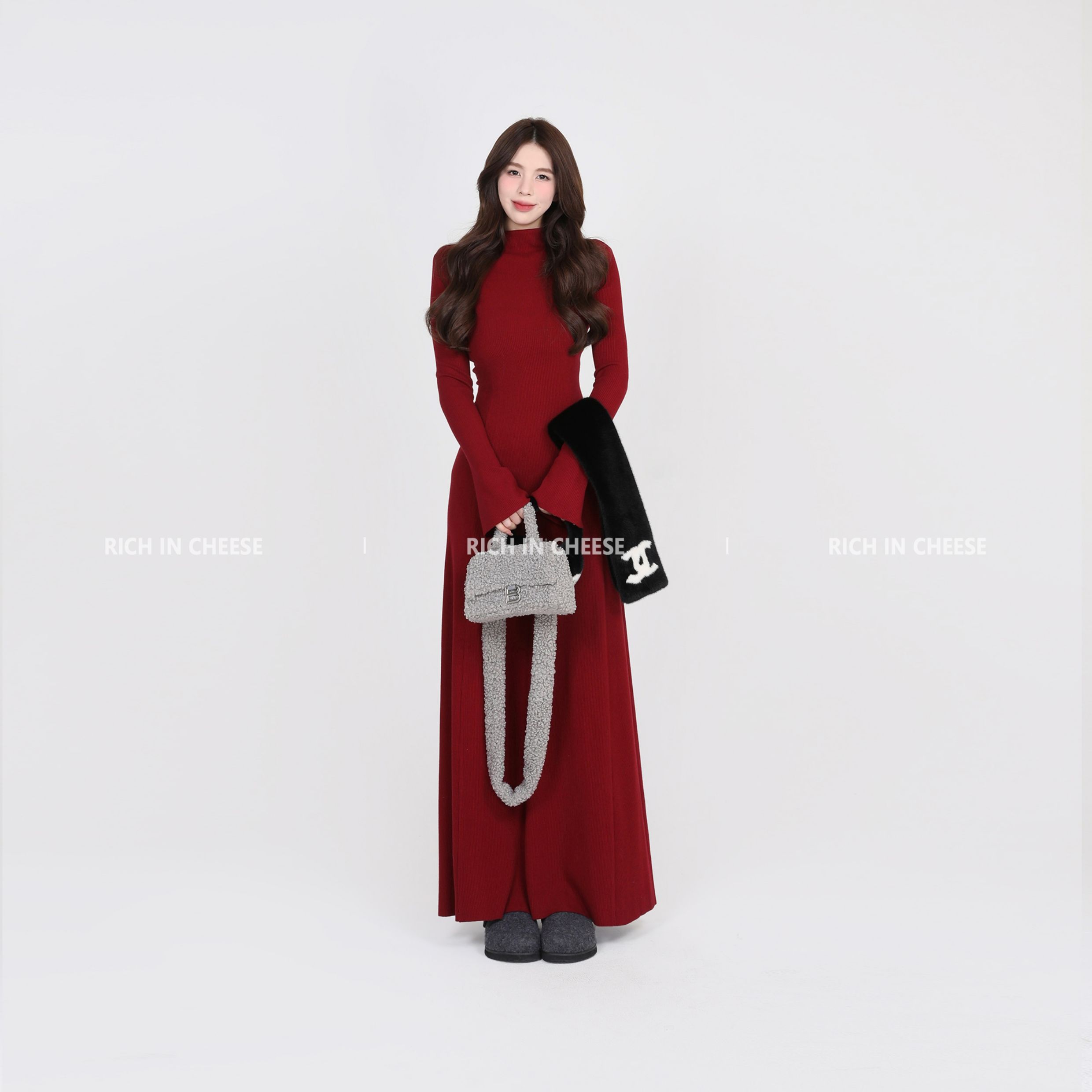 Shuhule Tea-Scented Croissant [Series Collection] Knitted Dress for Women, New Autumn Slim-Fit Dress