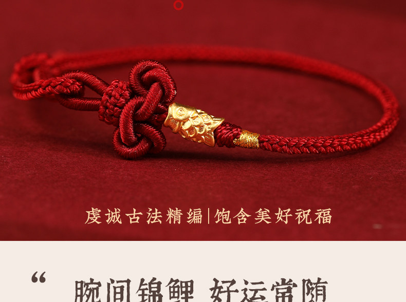 999 Pure Gold Koi Fish Good Luck Red String Bracelet for Women 2025 New Gold Woven Exquisite Bracelet for Men, Success in Exams