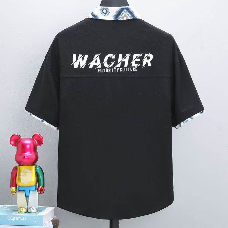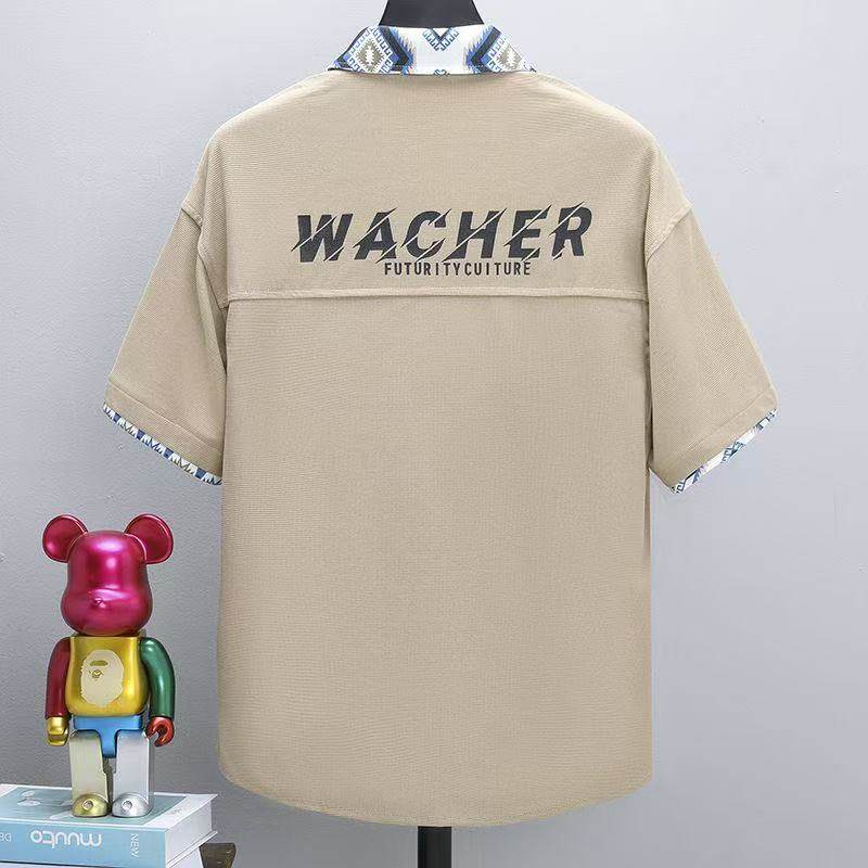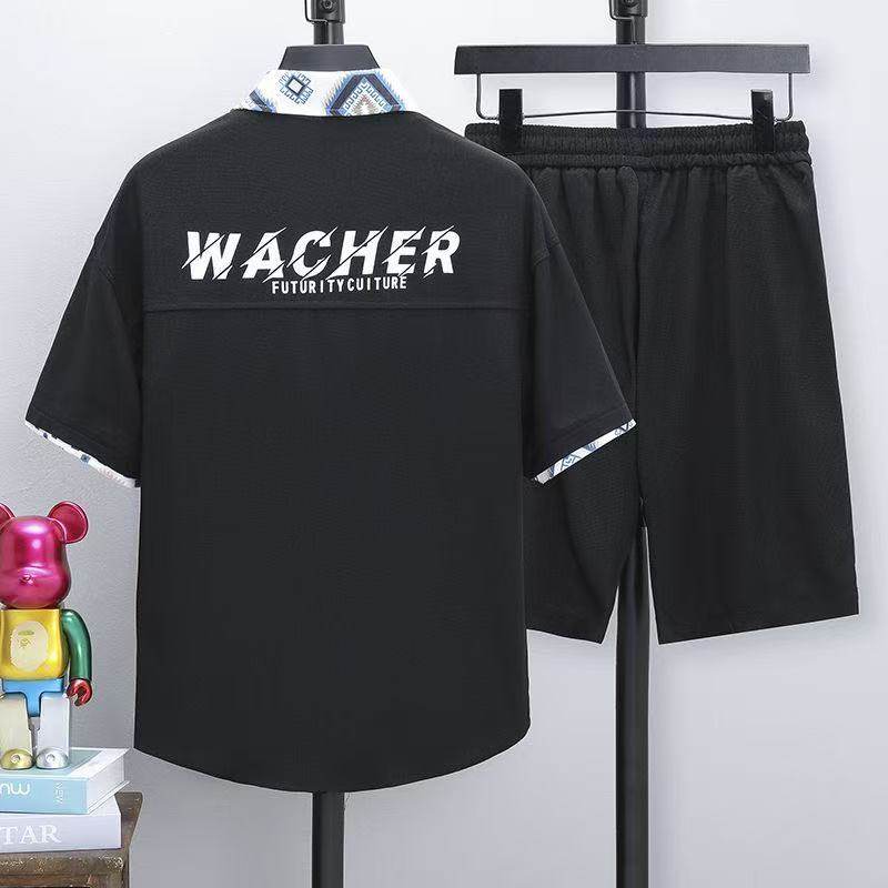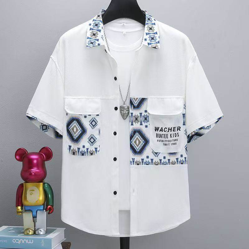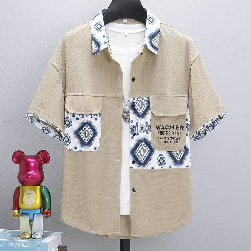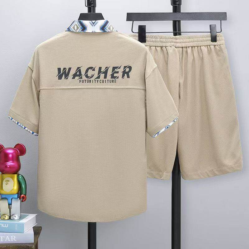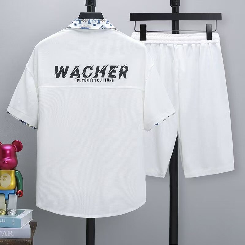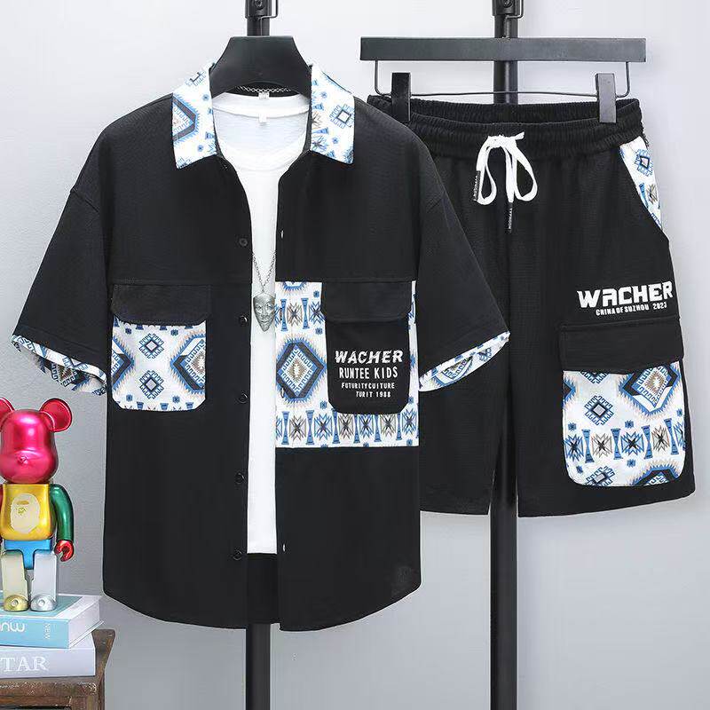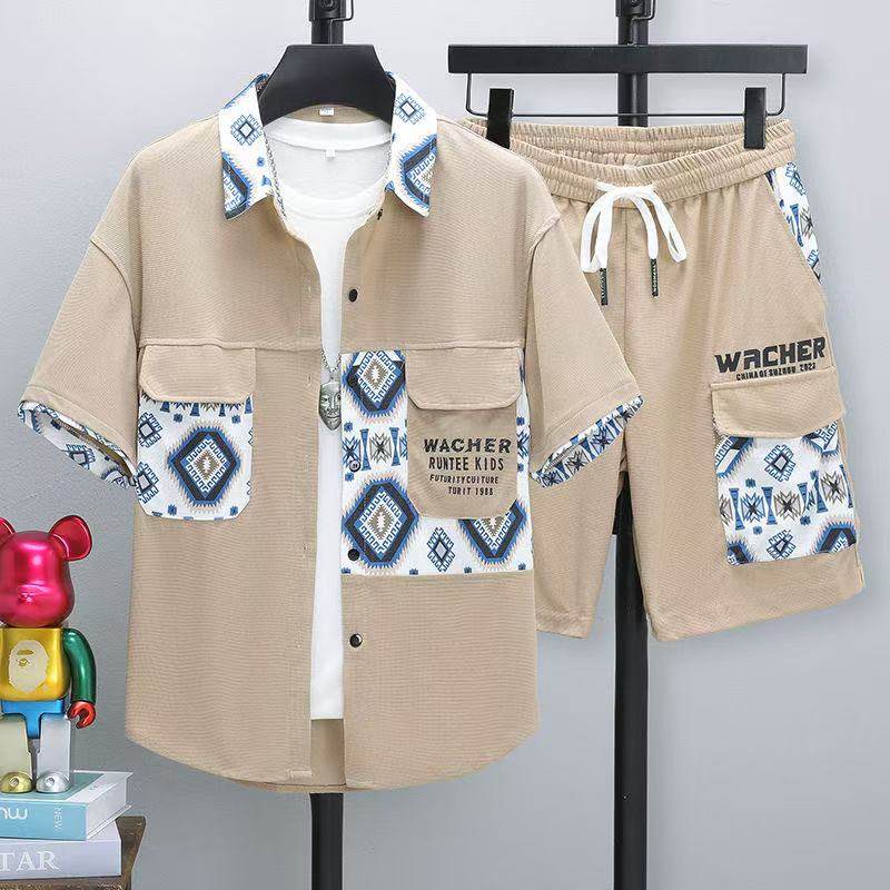 2025 New Summer Men's Printed Short-Sleeved Shirt and Shorts Set Trendy ins Student Loose and Handsome Men's Clothing