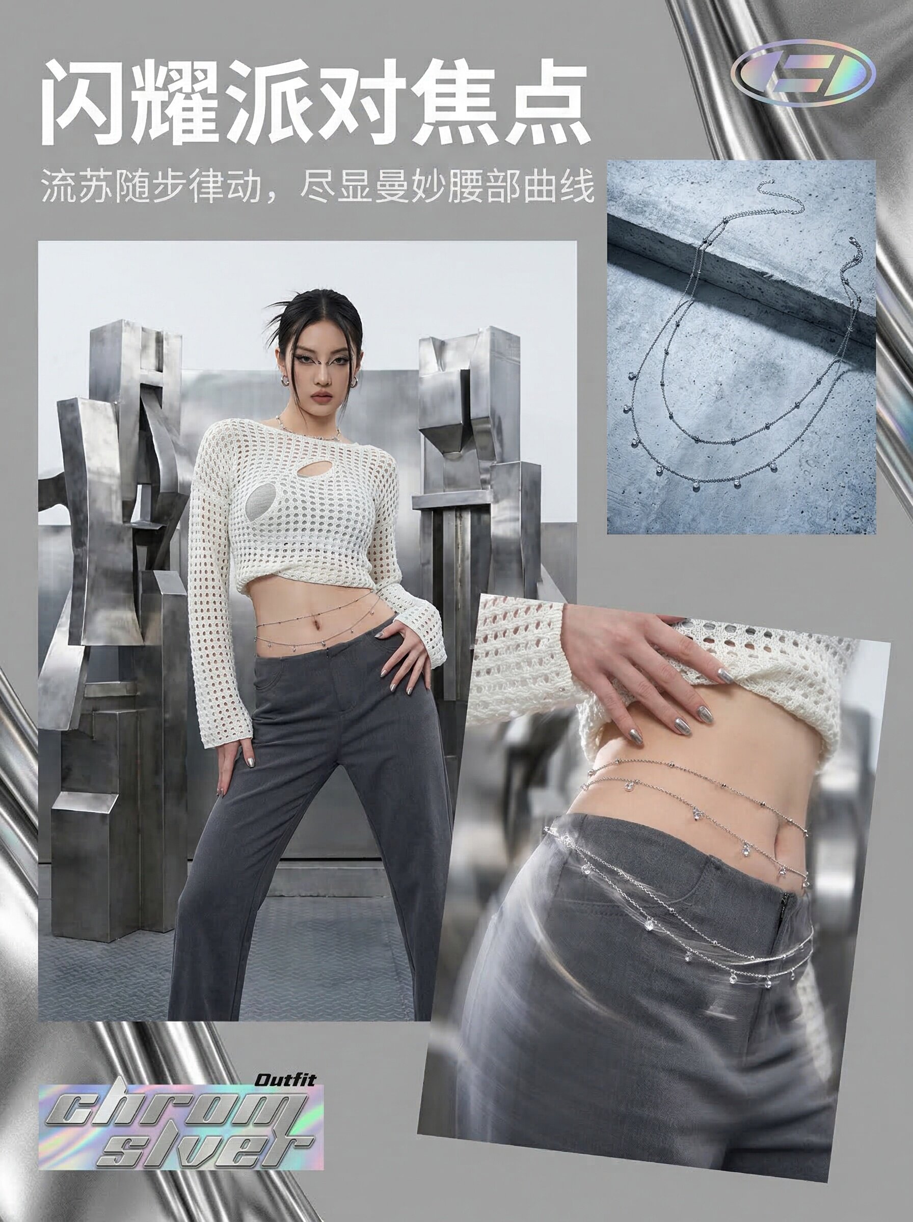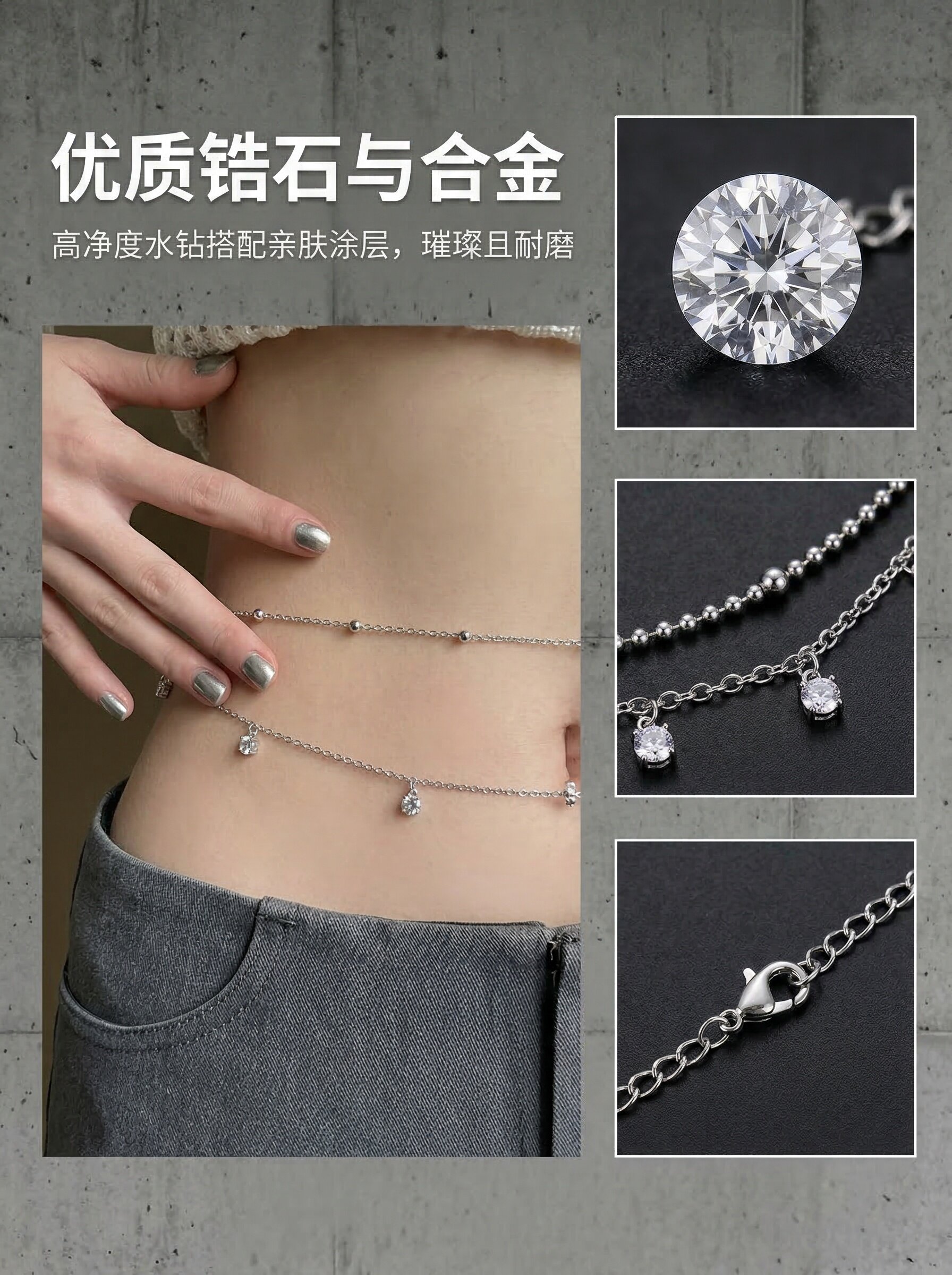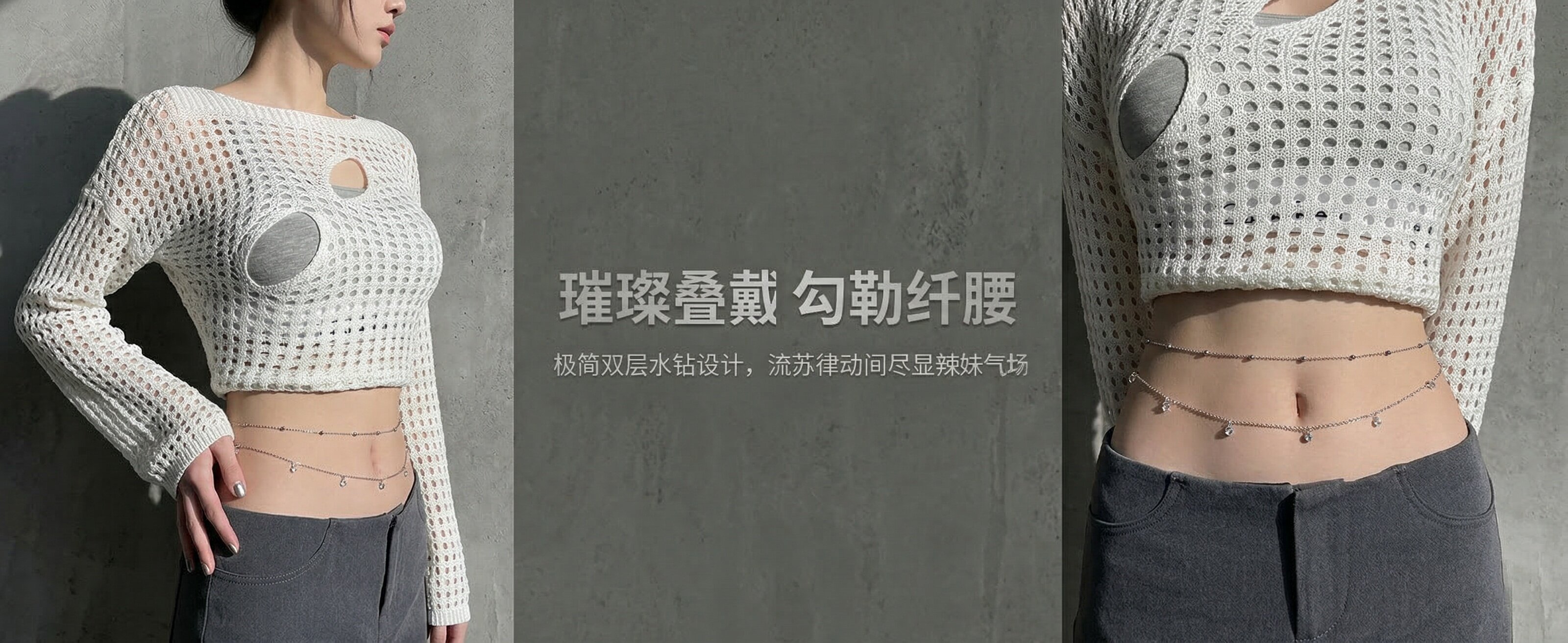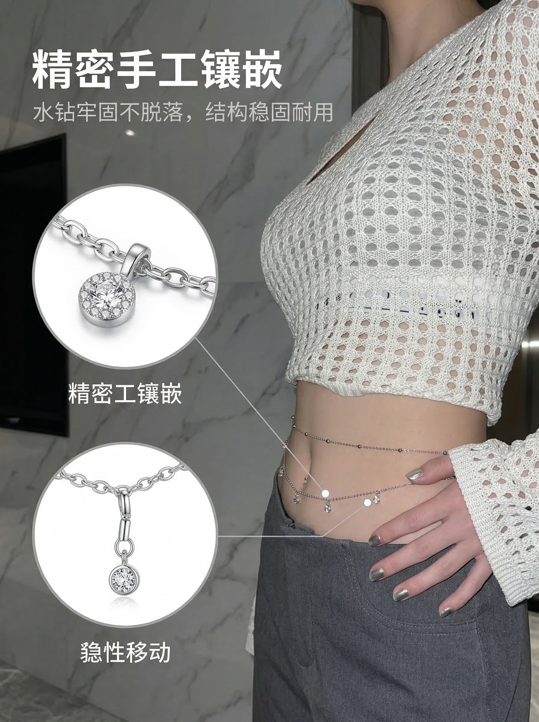 Hot Girl Crystal Body Chain for Women, Shiny and Sexy, ins Style, Beach Travel Vacation, Body Decoration Waist Chain, Music Festival