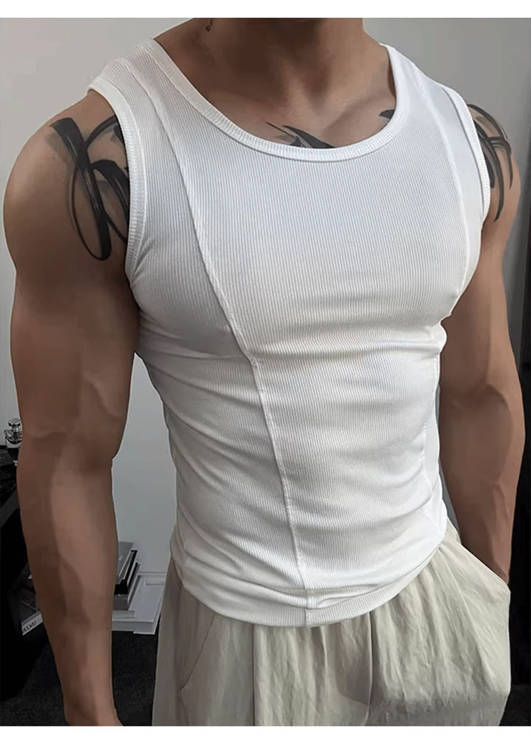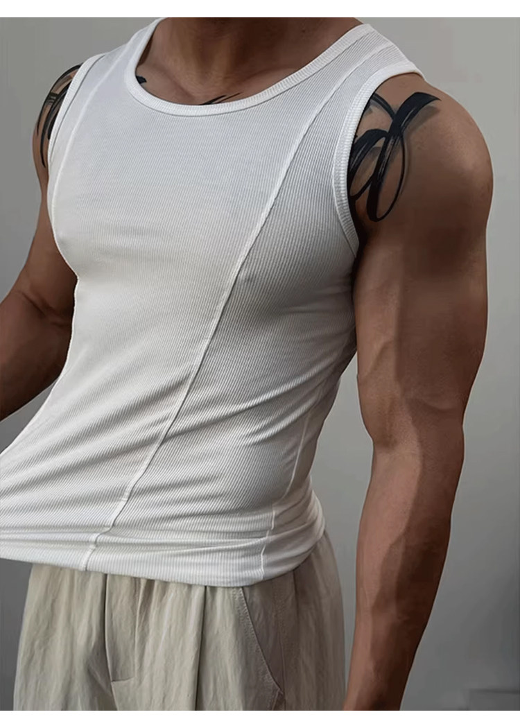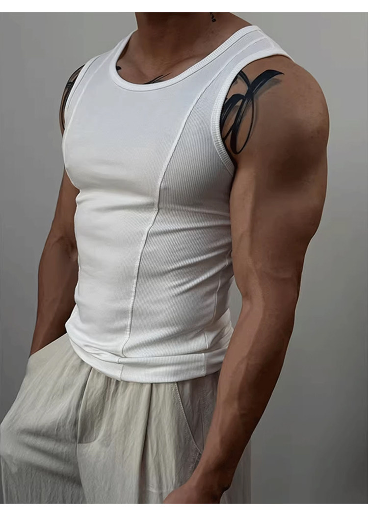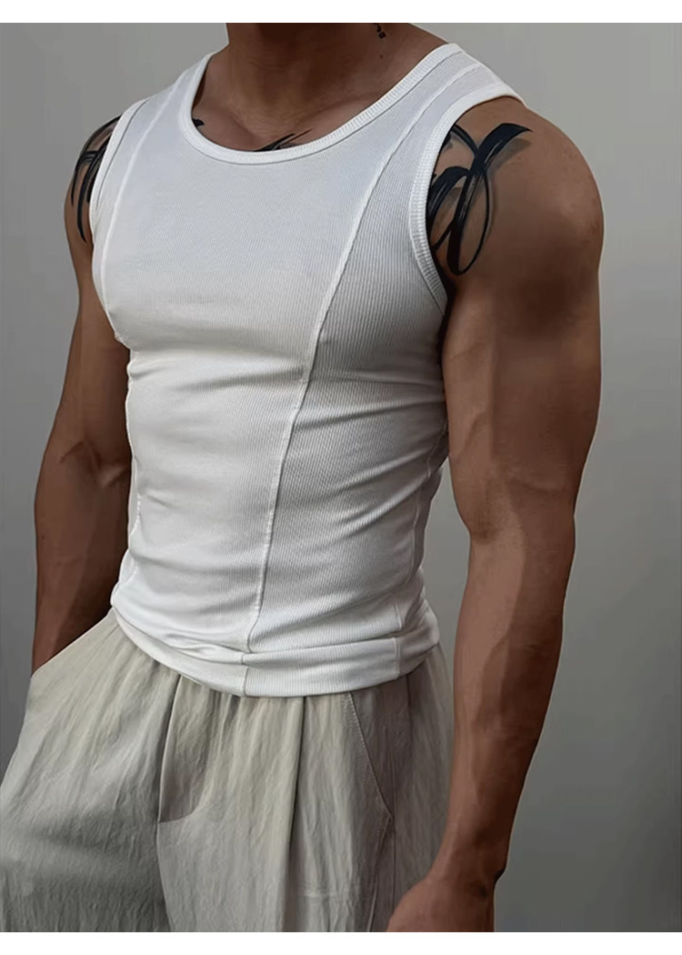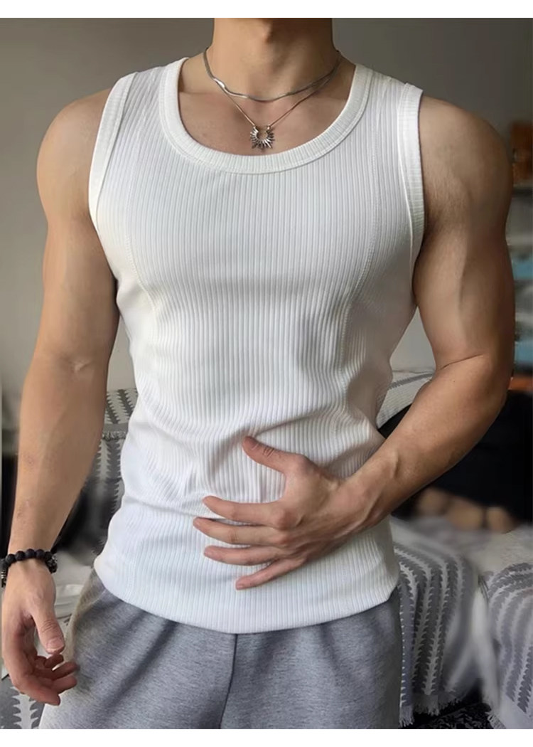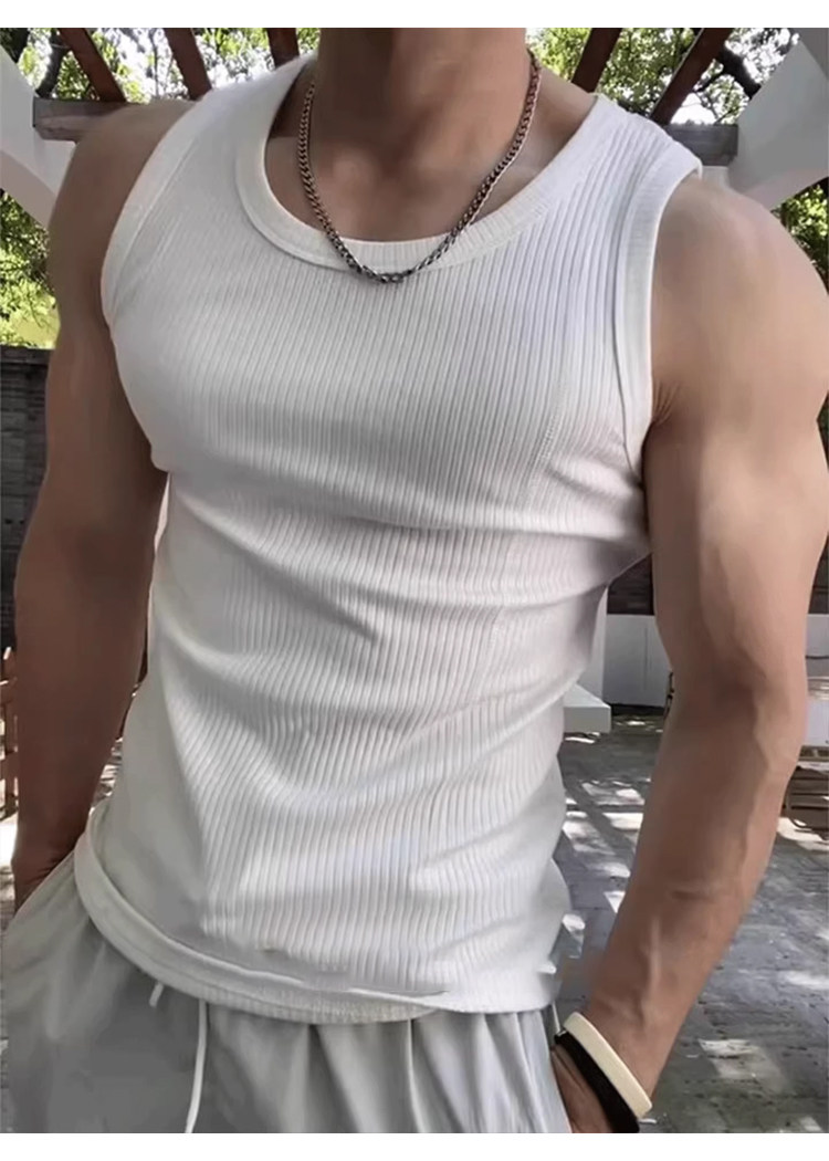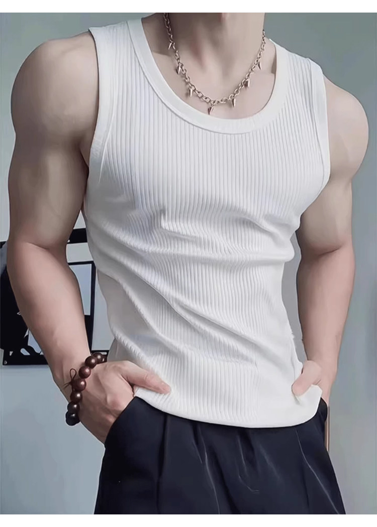 White Ribbed Tank Top for Men, Summer Slim Fit, Muscle-Enhancing Sleeveless T-Shirt, American Style Fitness Sports Undershirt