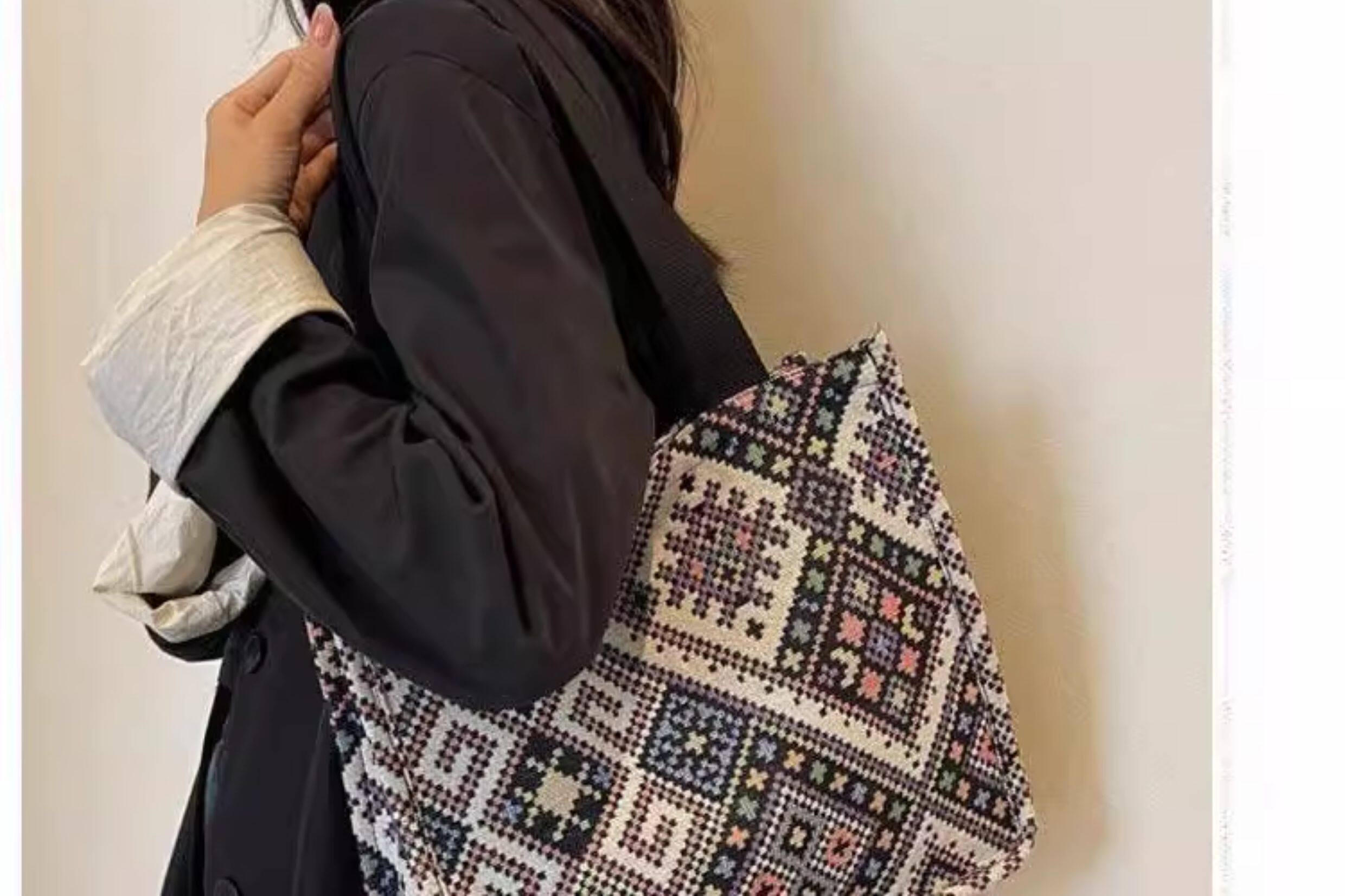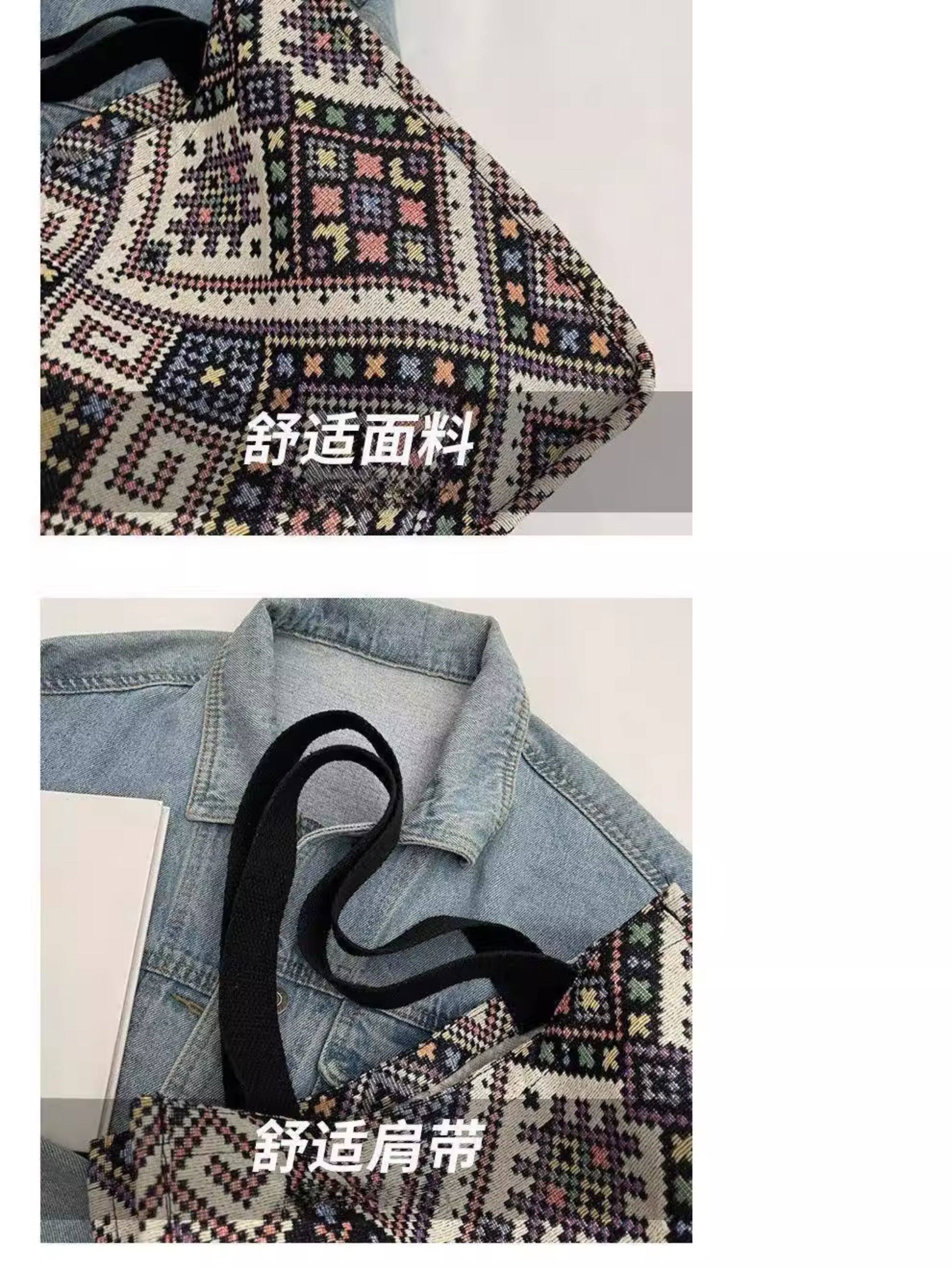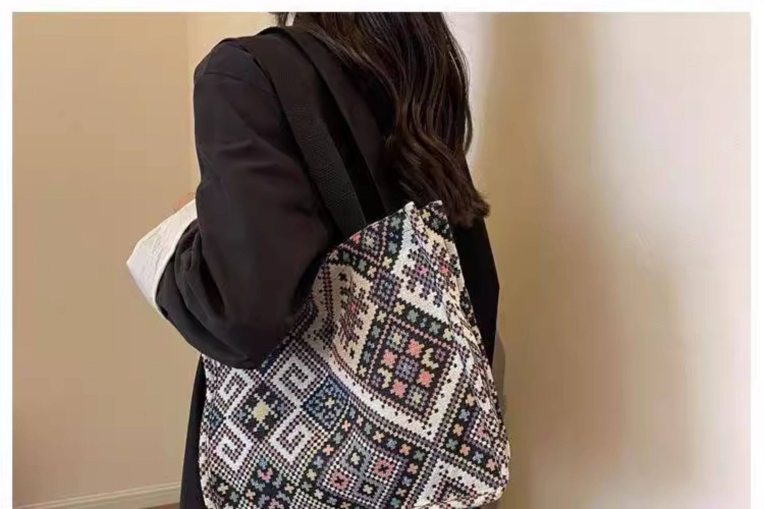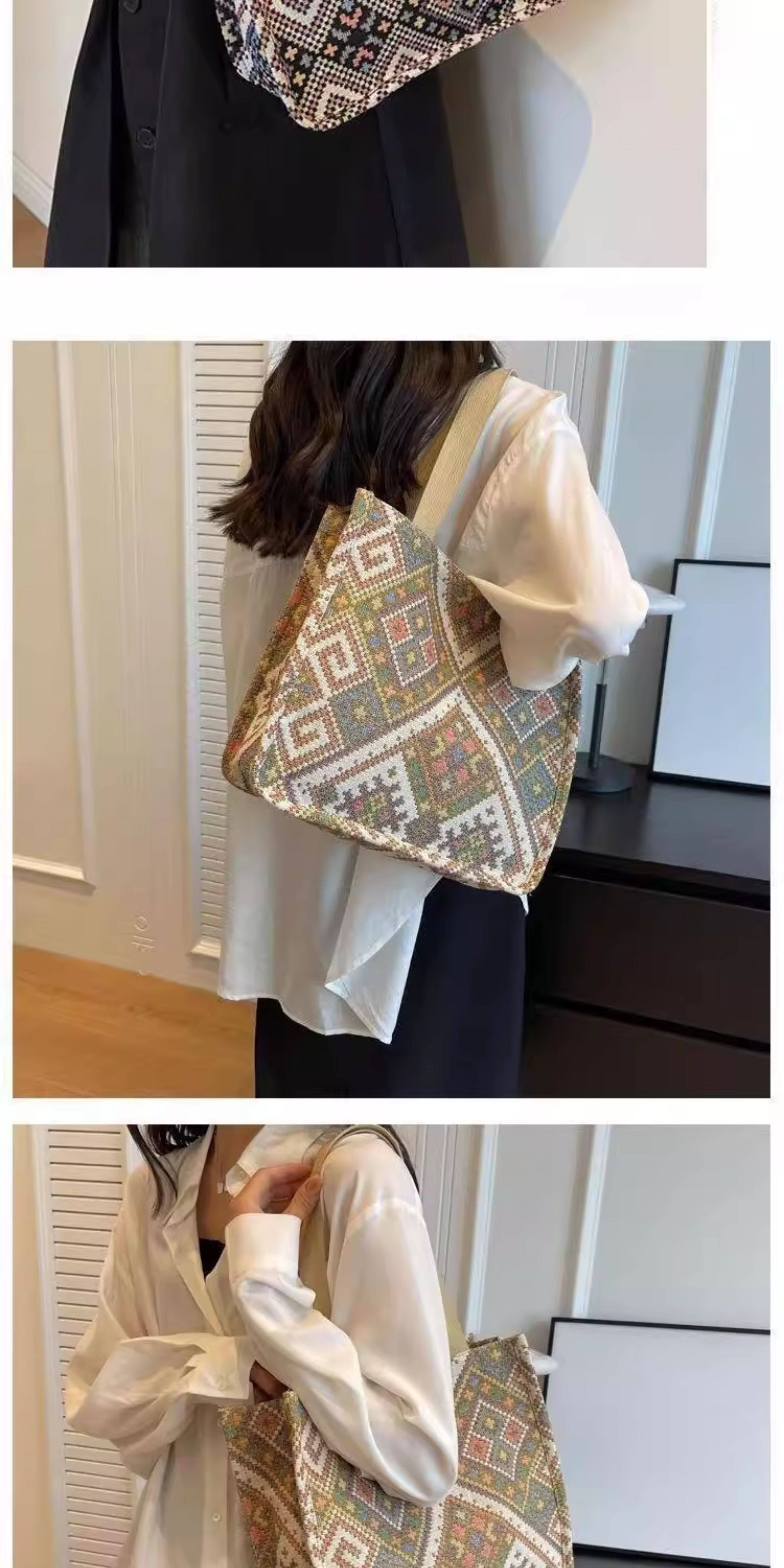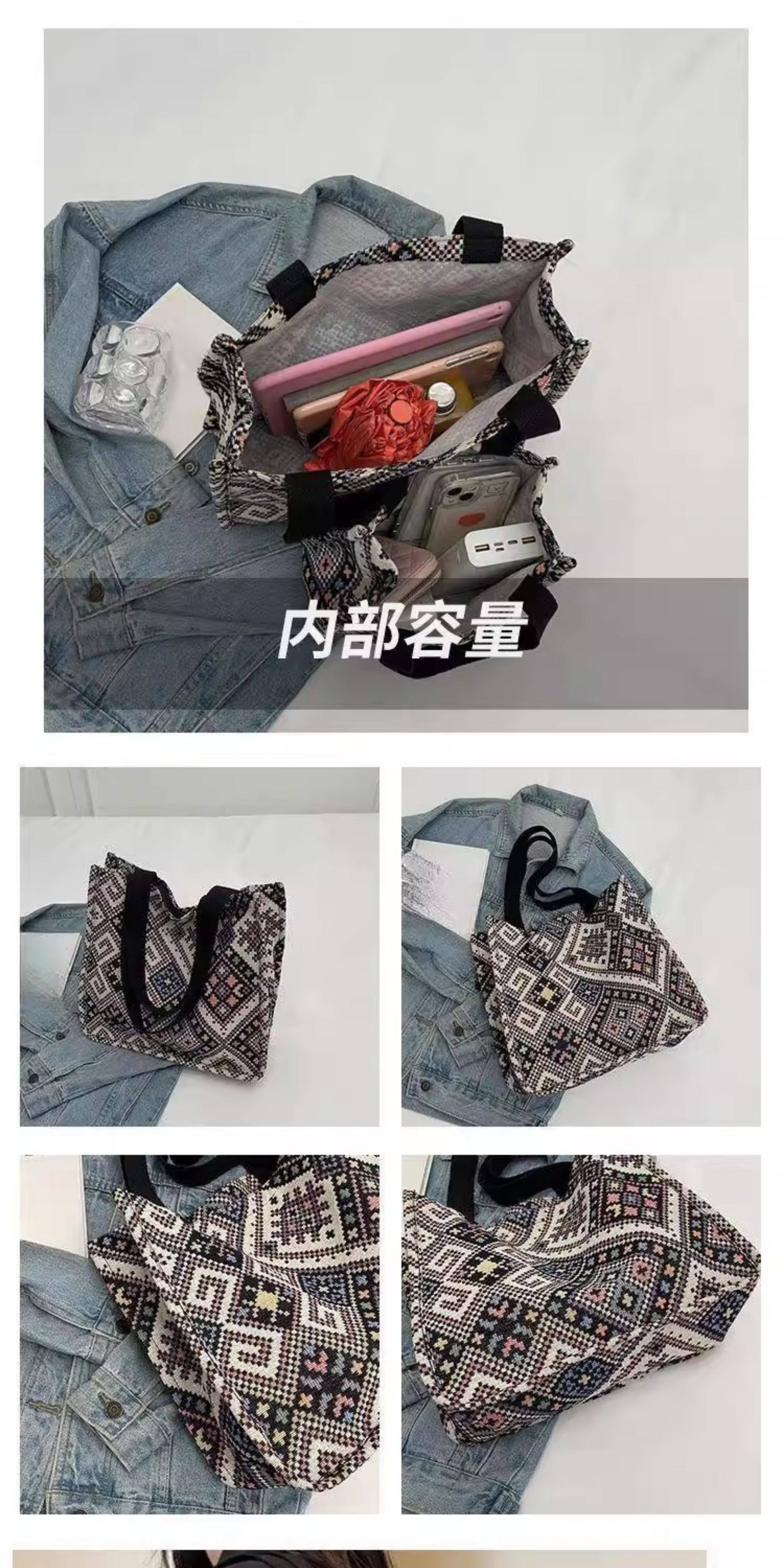 2025 Internet Celebrity Canvas Bag for Women, Large Capacity Ethnic Style Woven Tote Bag, ins Korean Version Shoulder Handbag