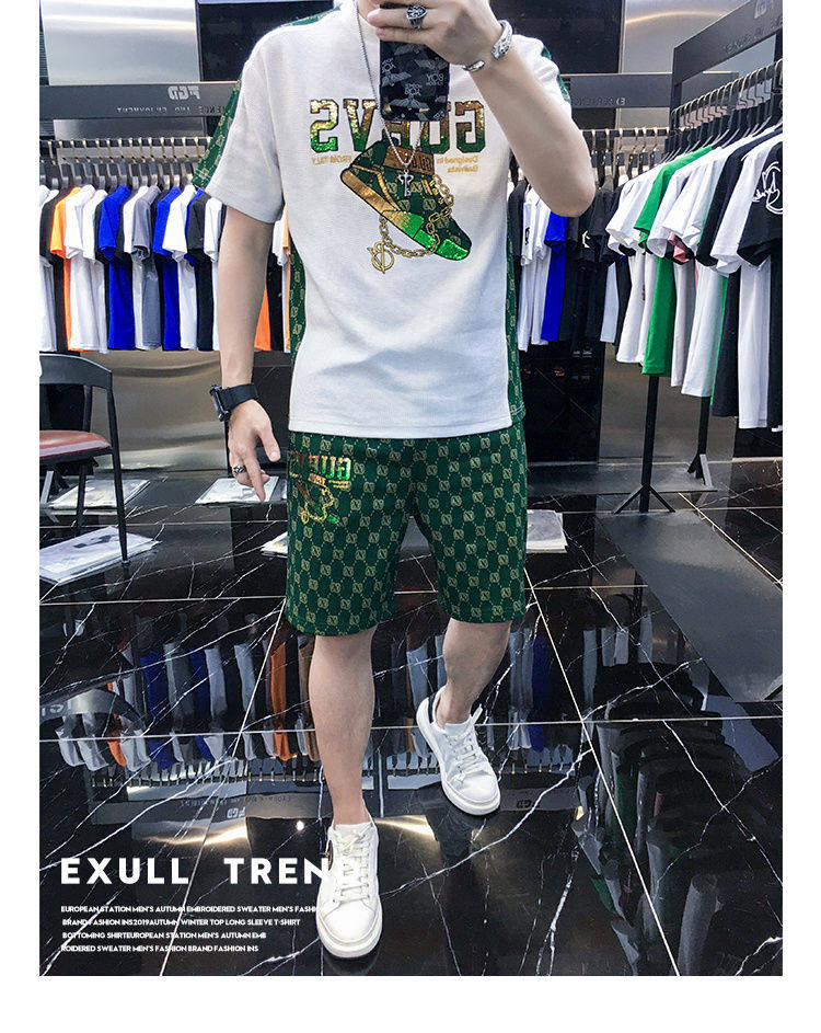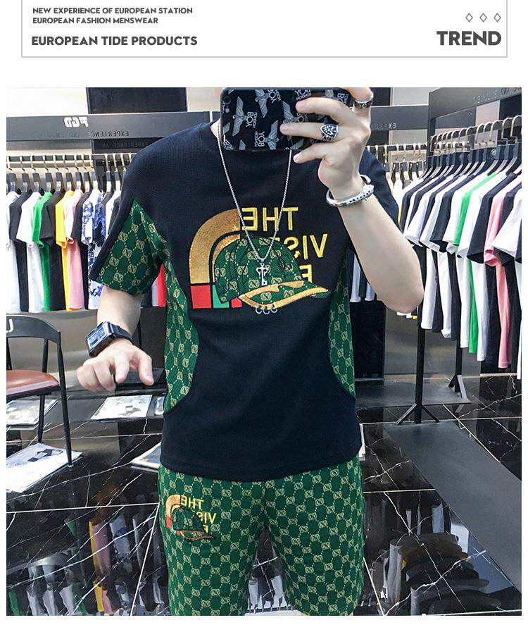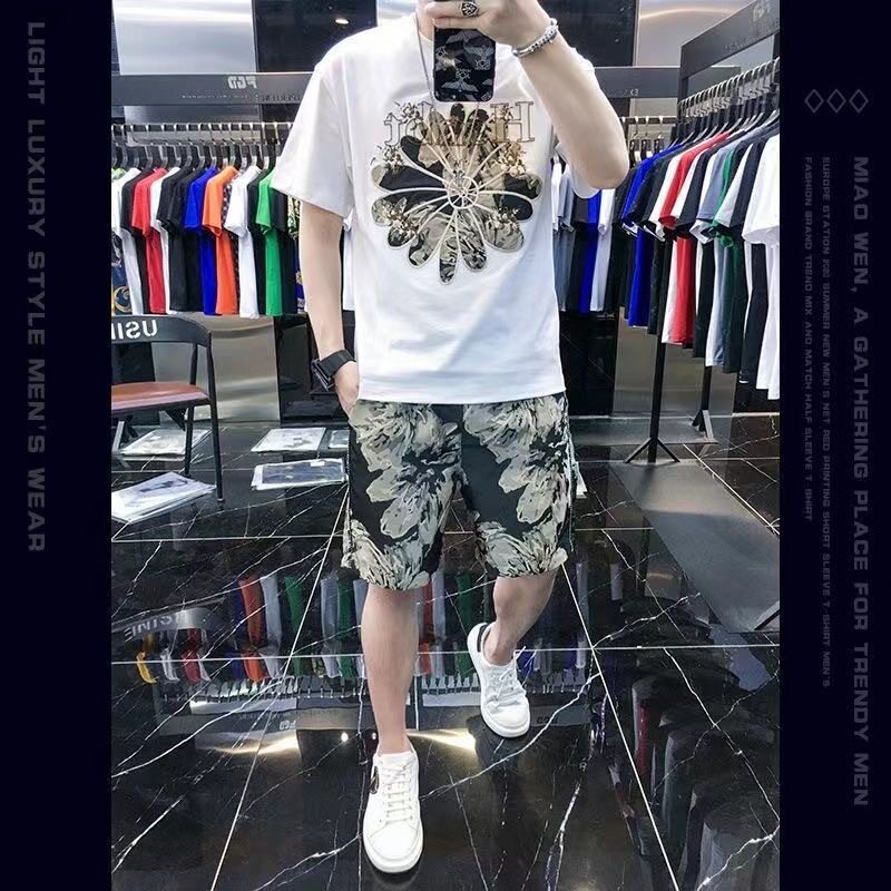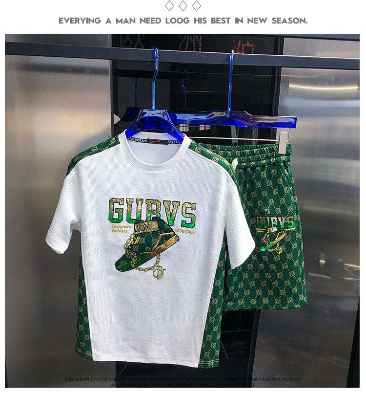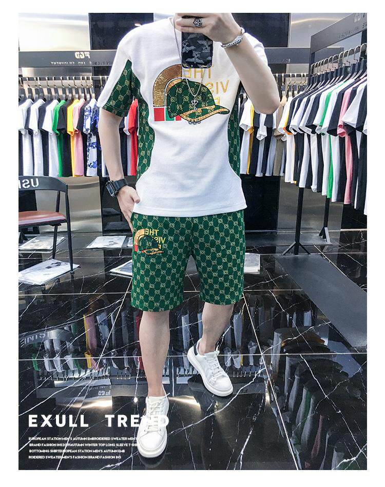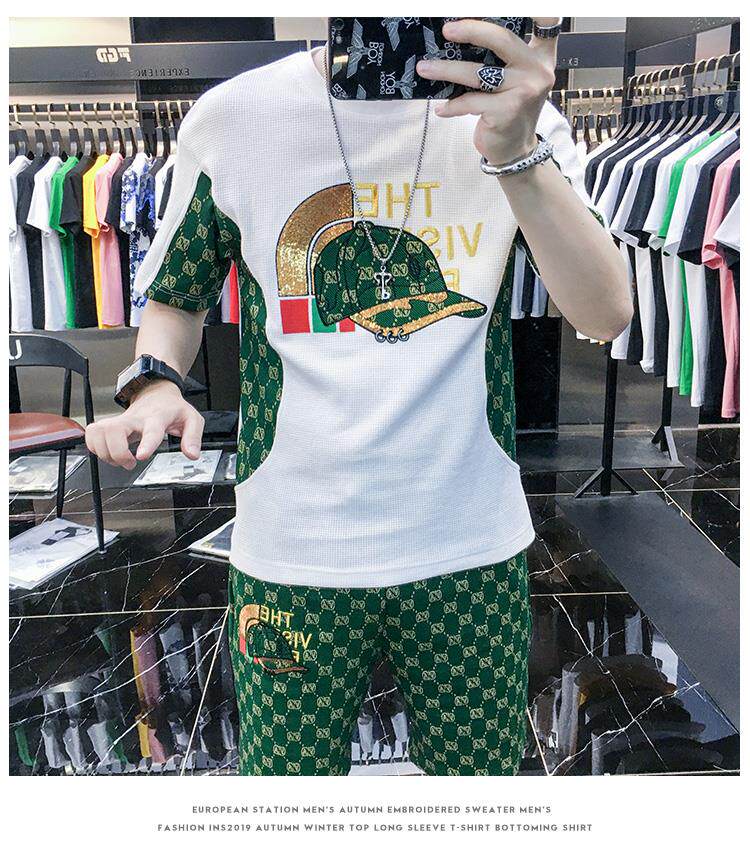 Woodpecker Casual Suit Men's Short-Sleeved Shorts 2026 Summer Trendy Ice Silk T-Shirt Thin Fashion Two-Piece Set