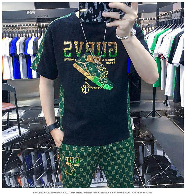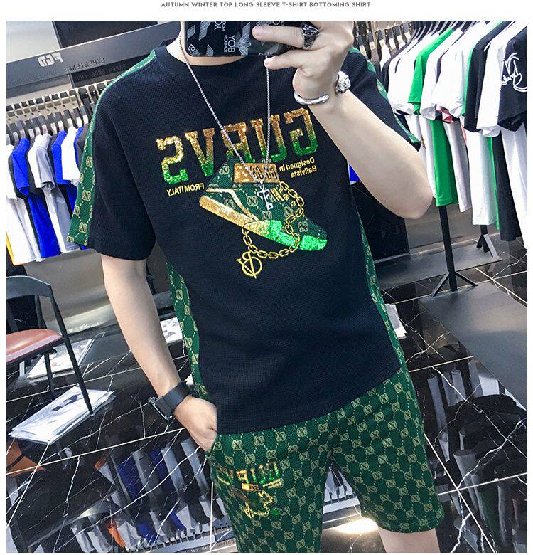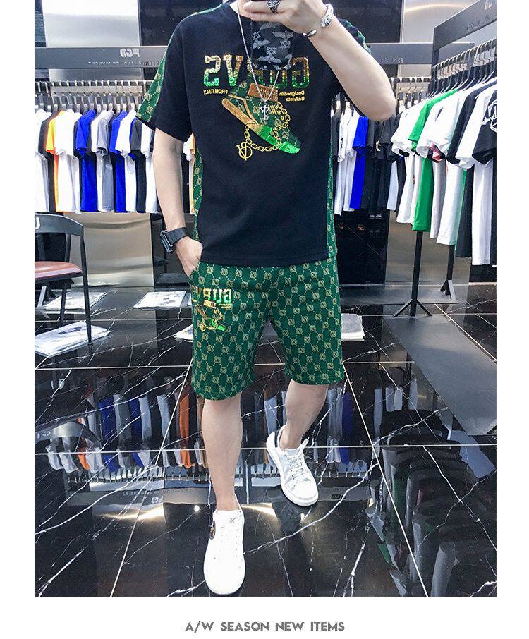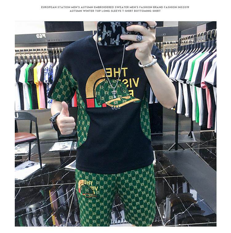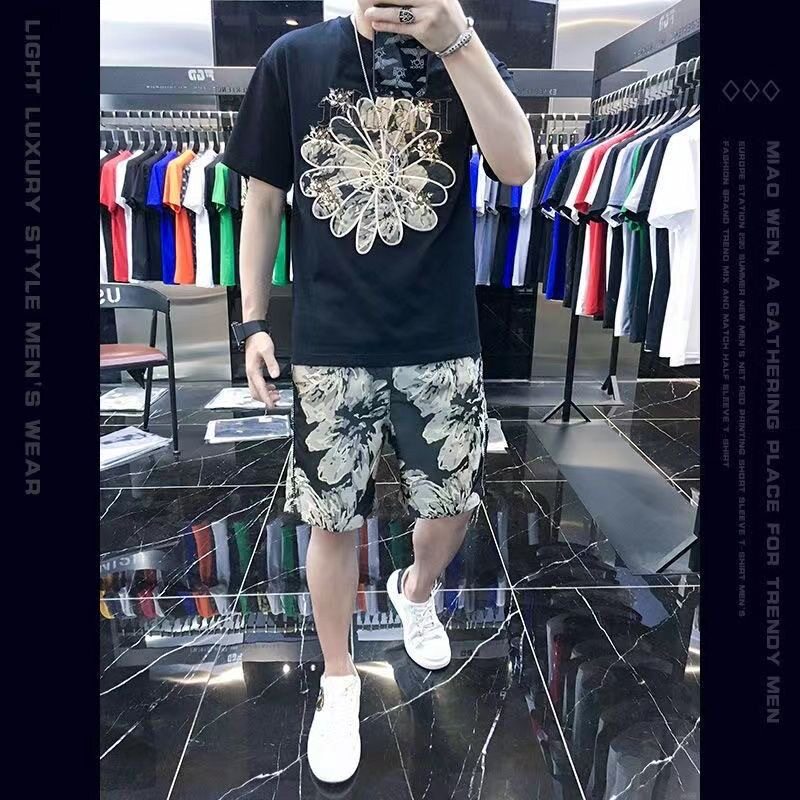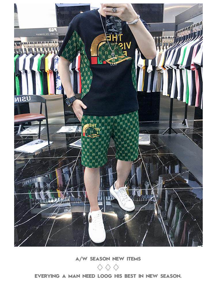 Woodpecker Casual Suit Men's Short-Sleeved Shorts 2026 Summer Trendy Ice Silk T-Shirt Thin Fashion Two-Piece Set