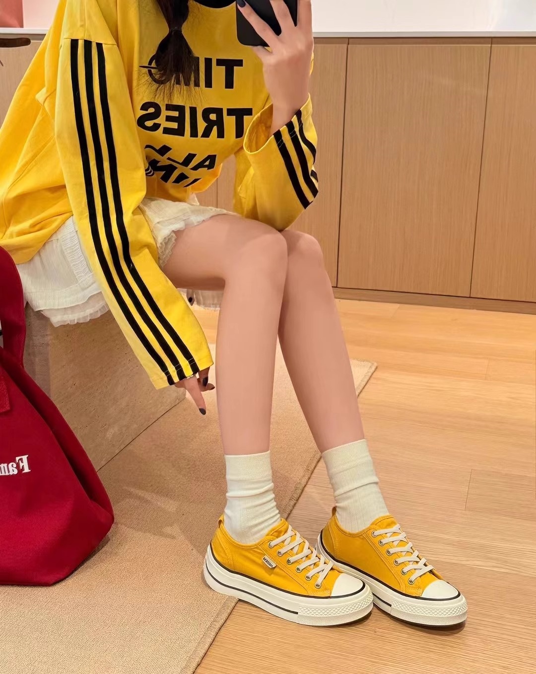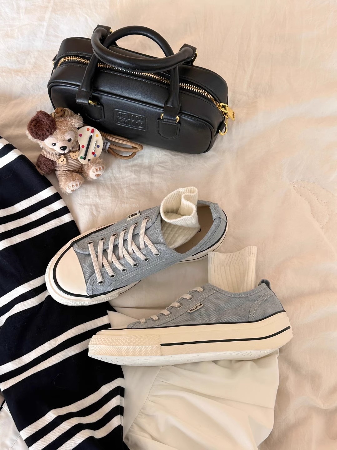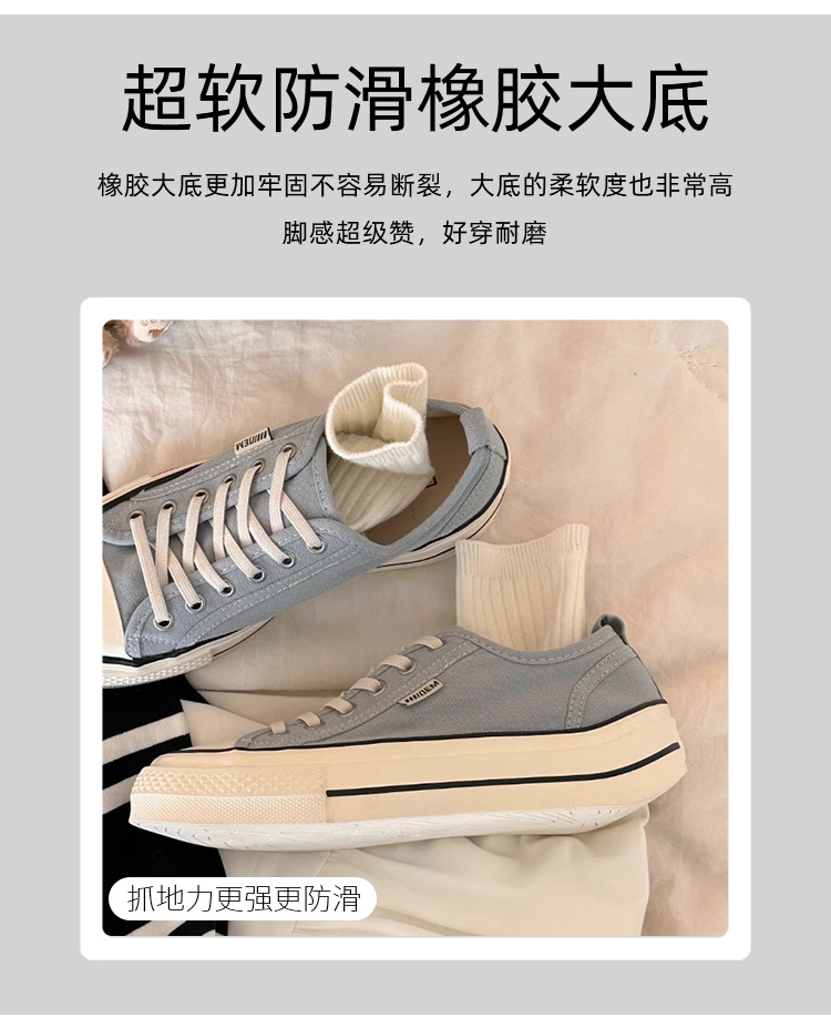 Sanli Slip-On Elastic Band Thick-Soled Canvas Shoes for Women 2025 Spring and Autumn New Style Comfortable Round-Toe Casual Sneakers Trendy