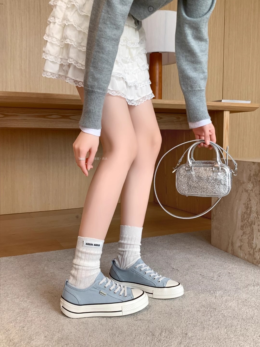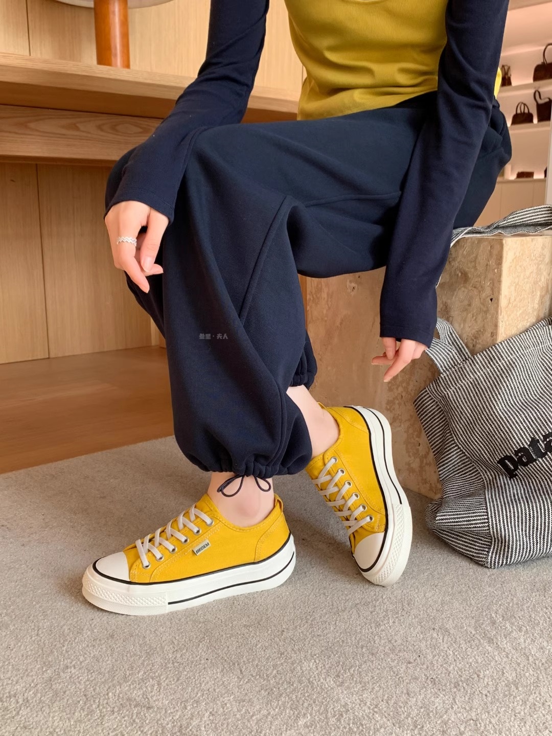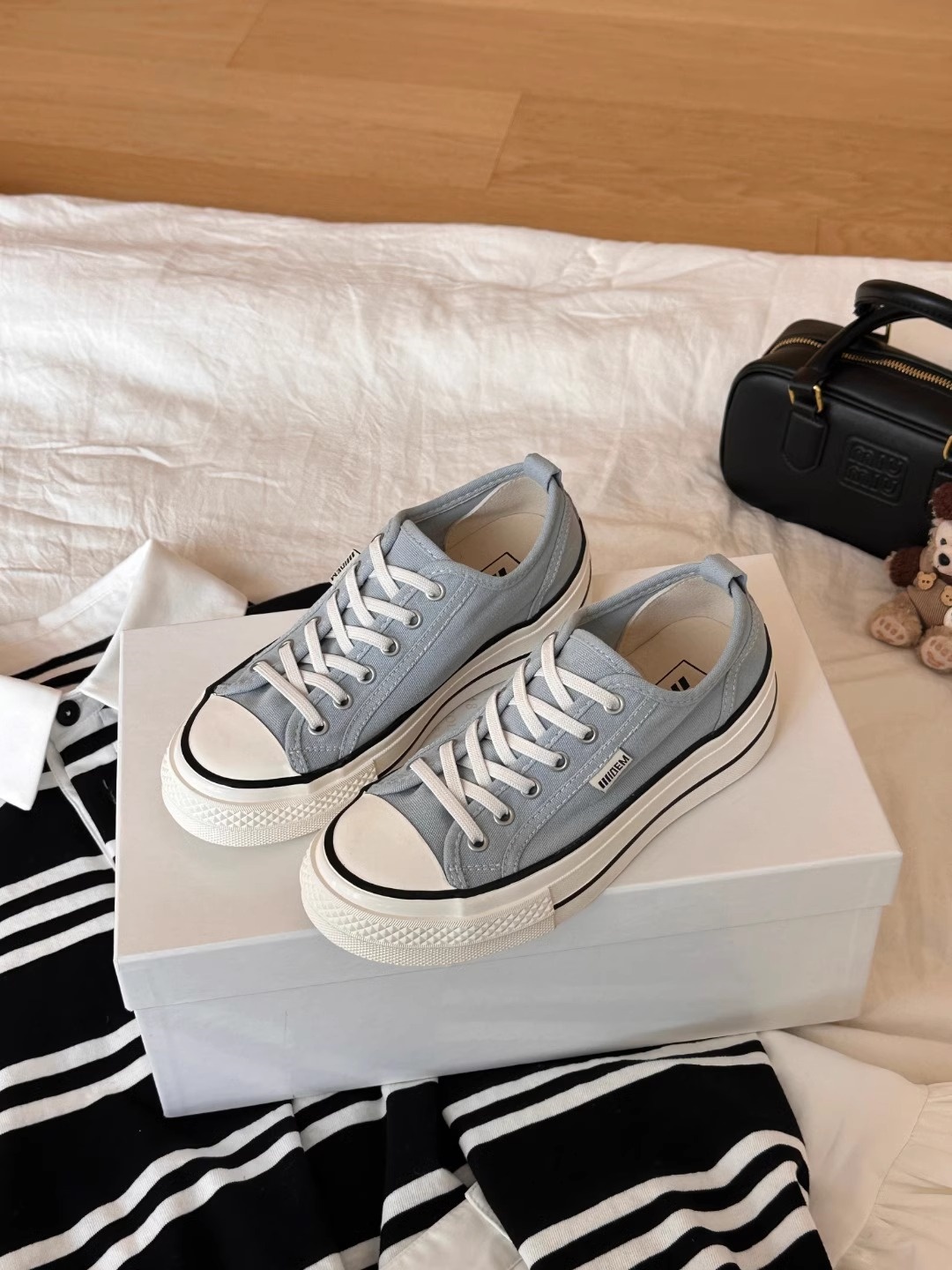 Sanli Slip-On Elastic Band Thick-Soled Canvas Shoes for Women 2025 Spring and Autumn New Style Comfortable Round-Toe Casual Sneakers Trendy