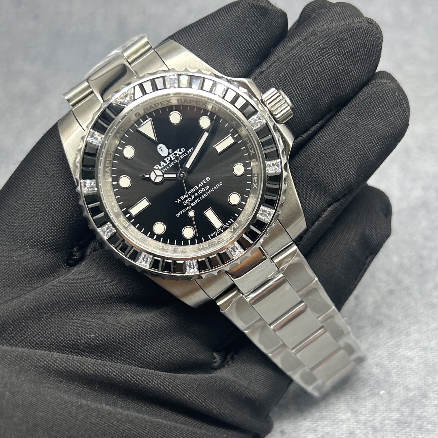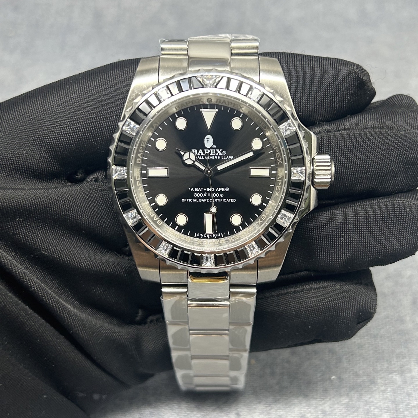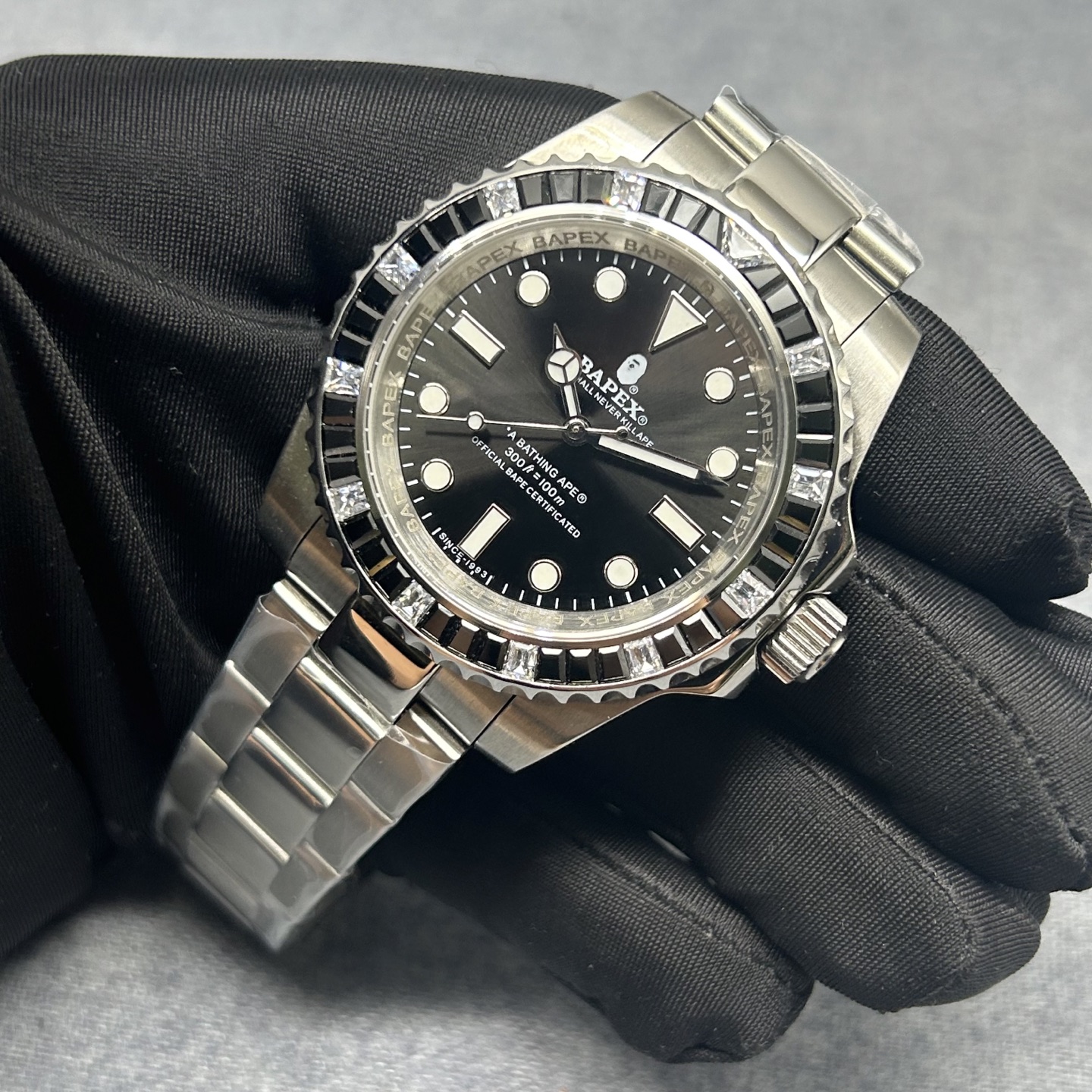奥利奥黑白间钻配色品牌 BAPEX (A BATHING APE)BAPE系列 TYPE 1尺寸 40mm不含表冠材质 精钢外壳 蓝宝石镜片机芯 全自动机械机芯运作️精钢壳身防水100米♂️中古猿力士 带全套包装手提袋送人不跌面 自用更无敌使用之前请学一下机械表的使用方法及原理详情咨询合作tiquecheaters_