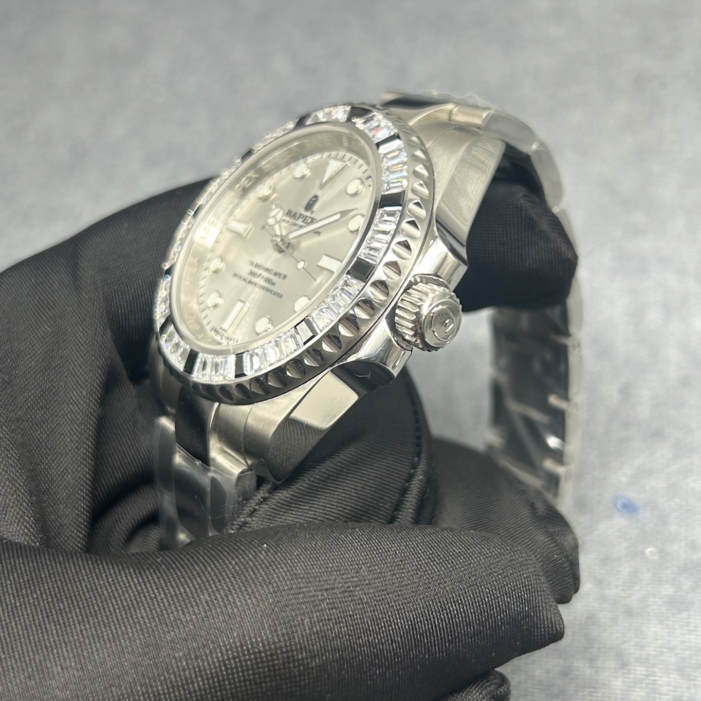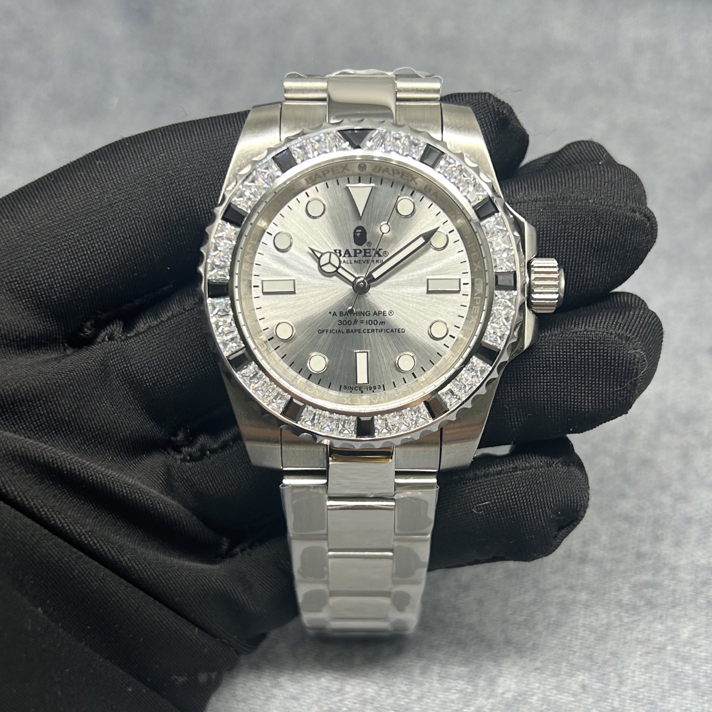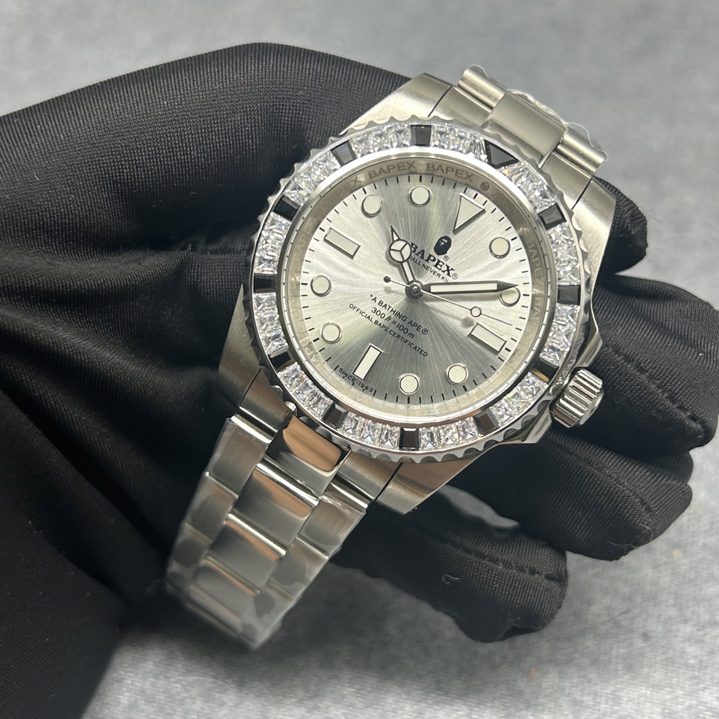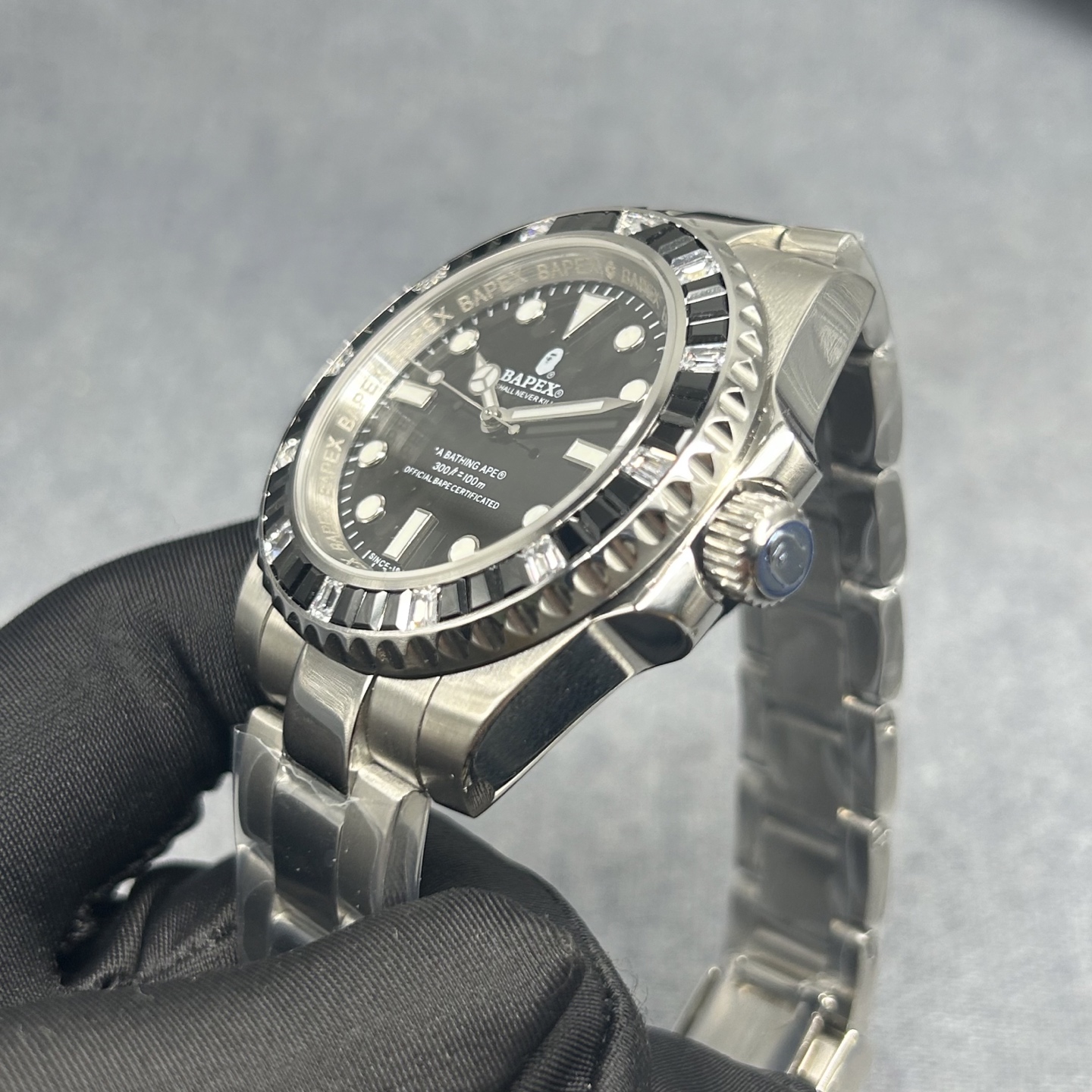 奥利奥黑白间钻配色品牌 BAPEX (A BATHING APE)BAPE系列 TYPE 1尺寸 40mm不含表冠材质 精钢外壳 蓝宝石镜片机芯 全自动机械机芯运作️精钢壳身防水100米♂️中古猿力士 带全套包装手提袋送人不跌面 自用更无敌使用之前请学一下机械表的使用方法及原理详情咨询合作tiquecheaters_