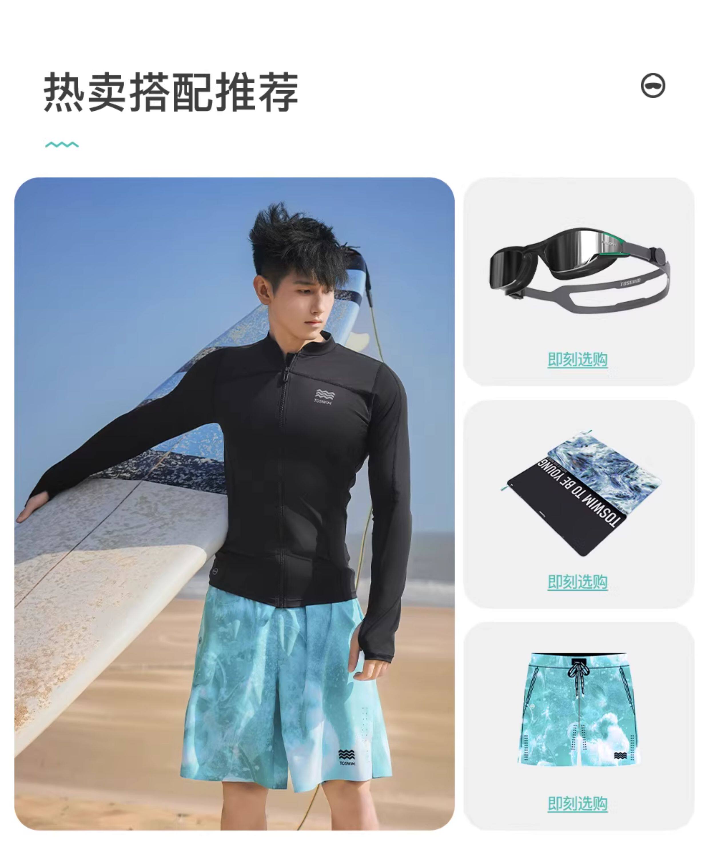 Toswim Men's Long-Sleeved Swimsuit Beach Trunks Set 2025 New Seaside Surfing and Diving Sun Protection Swimsuit