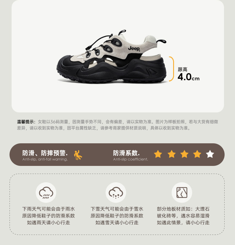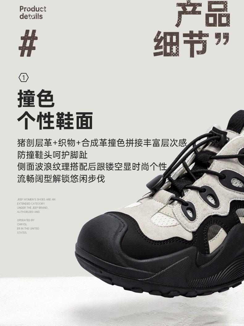 Jeep Hollow Toe Sandals for Women, 2025 Summer New Style, Suitable for Outdoor Wear, High-End Feel, Comfortable for Work, Not Tiring for Feet, Sporty Sandals